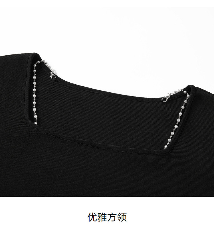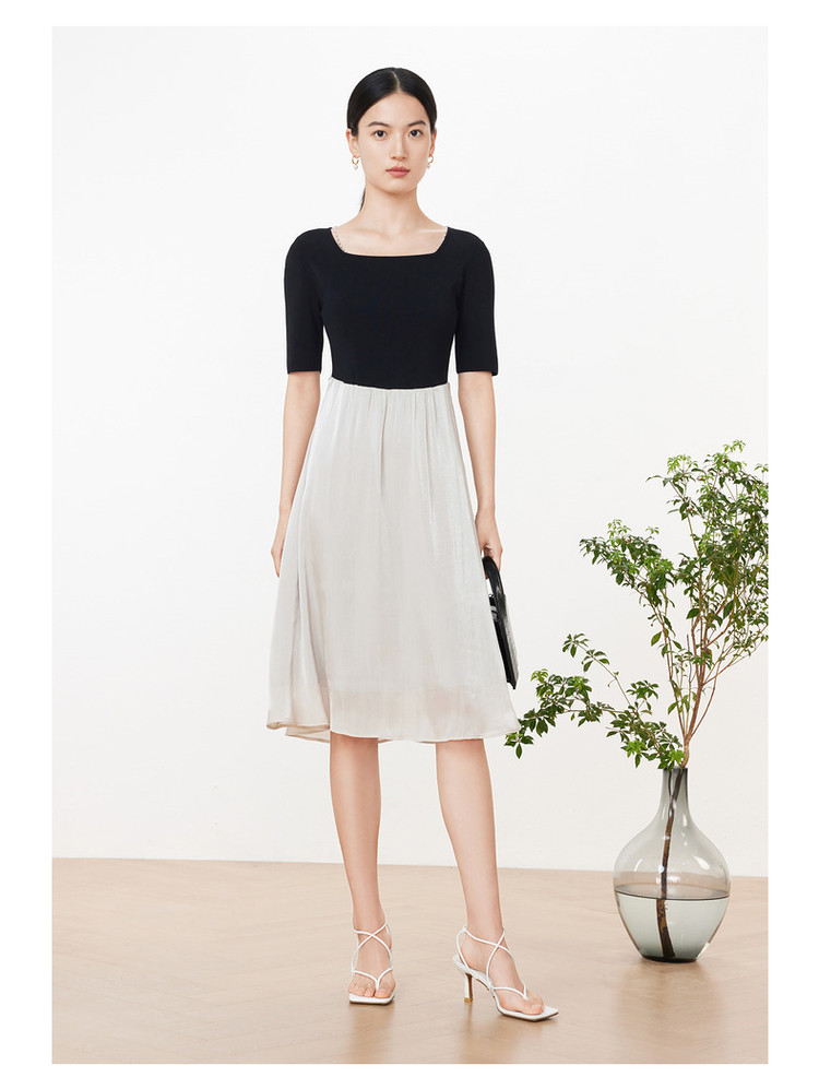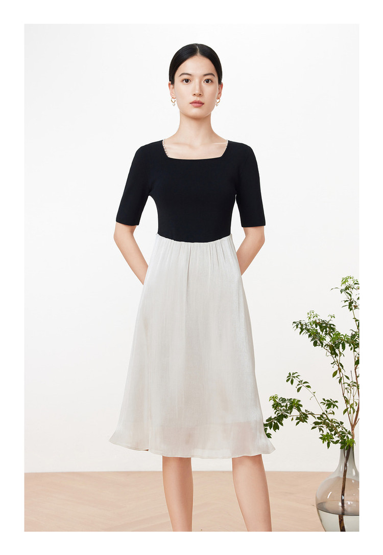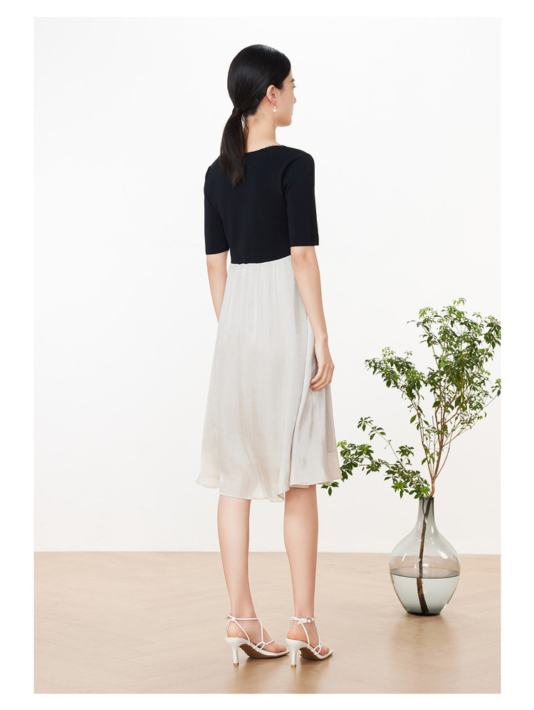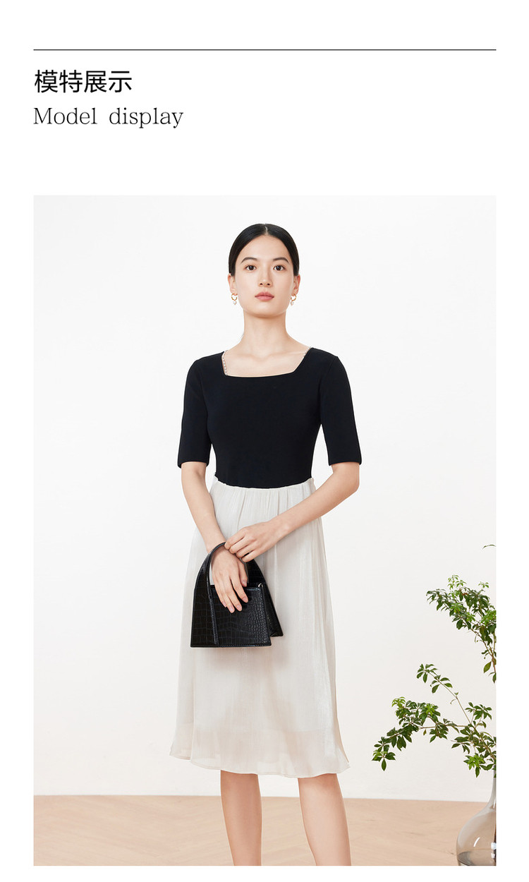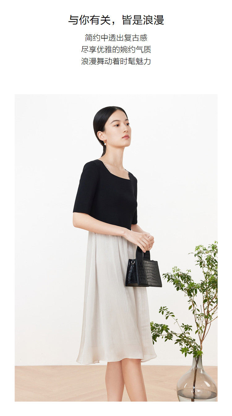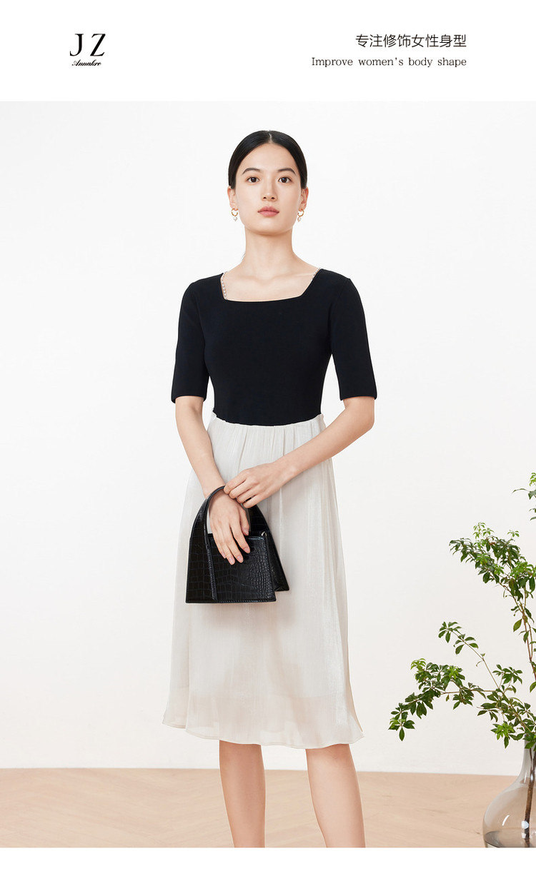 玖姿旗下安娜蔻系列洋气复古风假两件式针织连衣裙夏季 673228