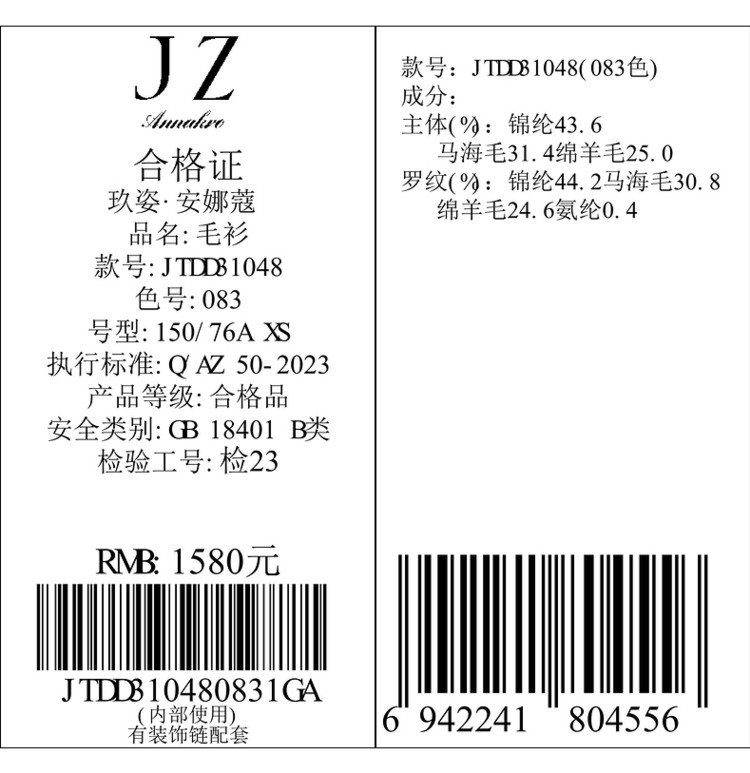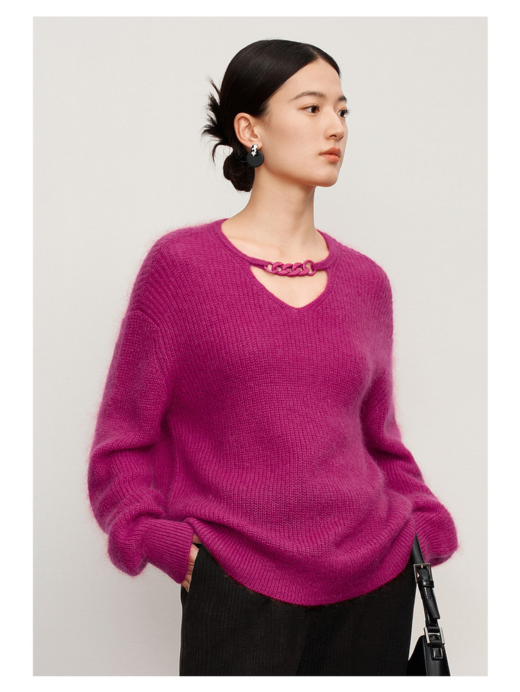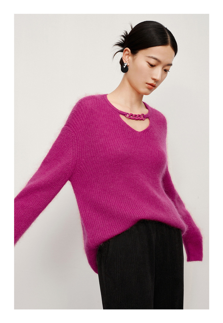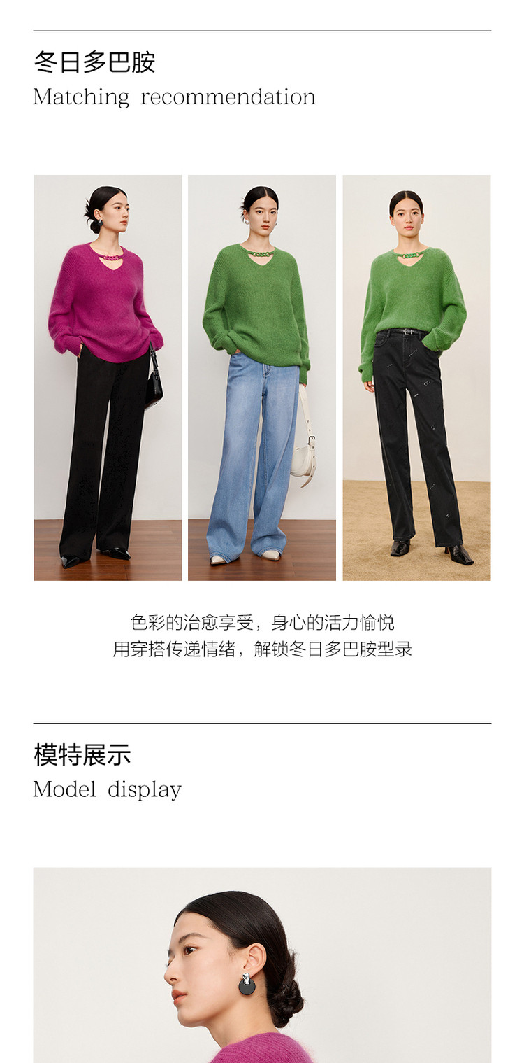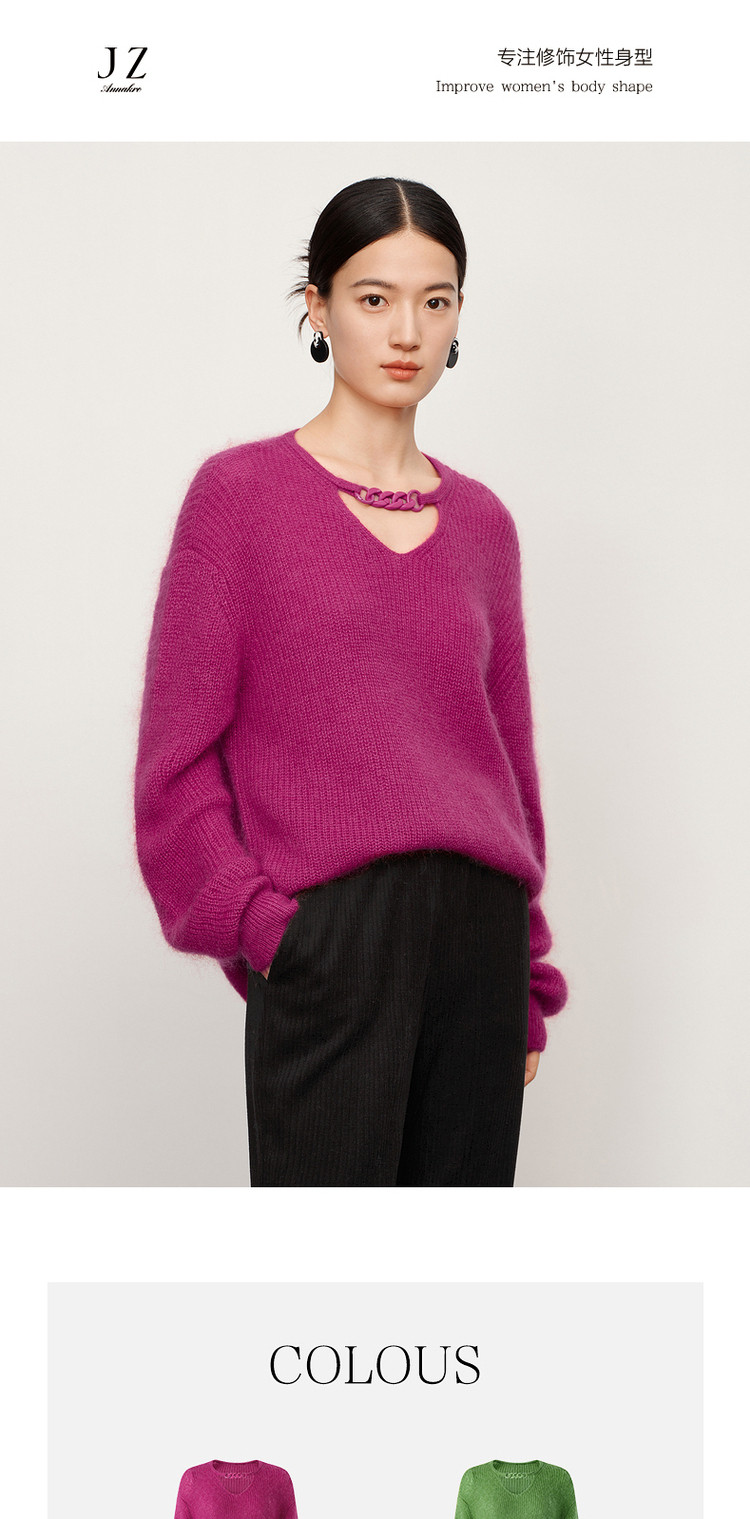 商品名称:玖姿旗下安娜蔻系列多巴胺落肩袖宽松长袖套头针织衫女冬季 583116