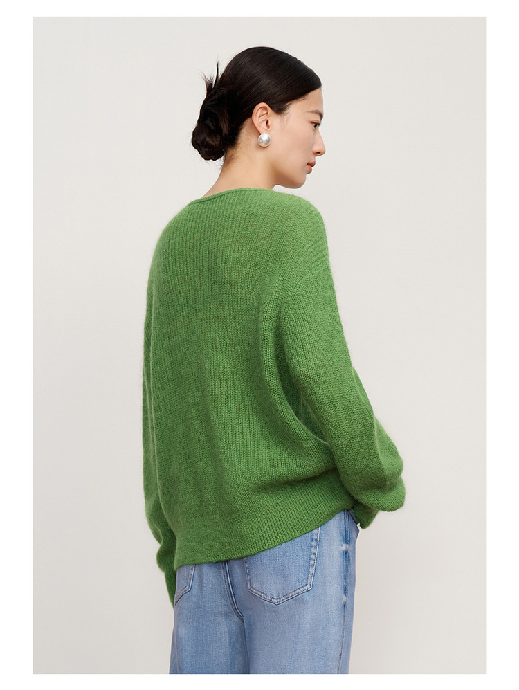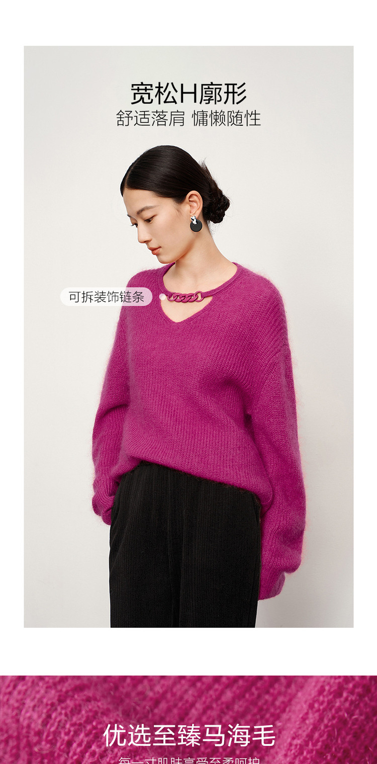 玖姿旗下安娜蔻系列多巴胺落肩袖宽松长袖套头针织衫女冬季 583116