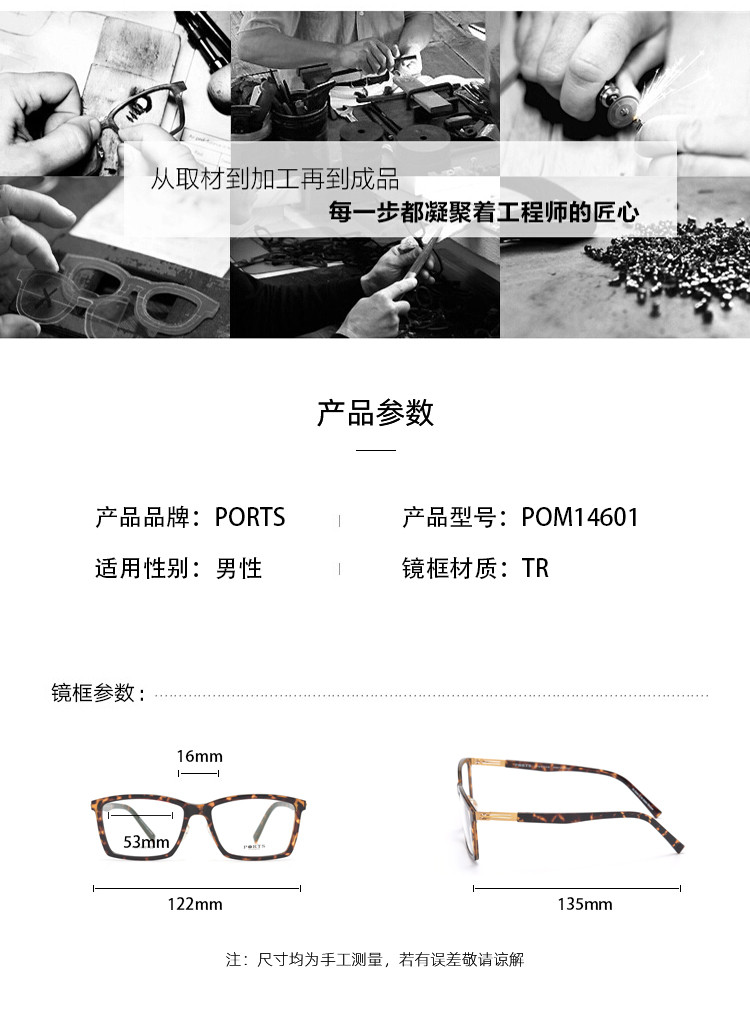 商品名称:男士轻盈椭圆框眼镜架POM14601 915082
