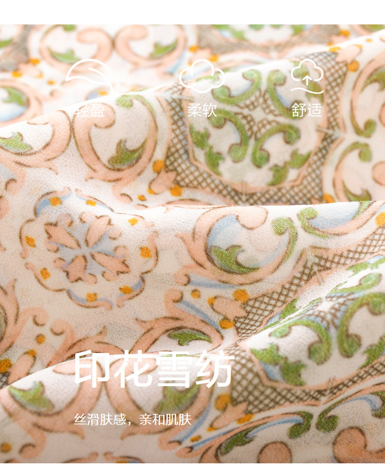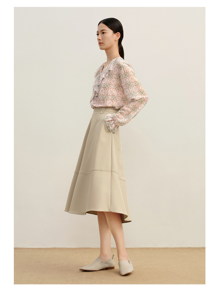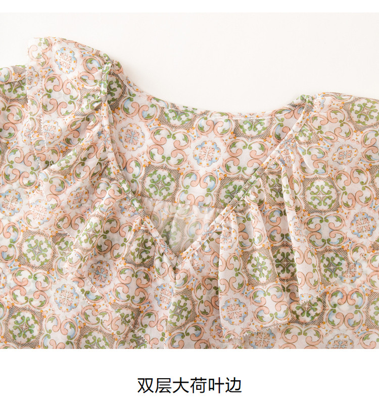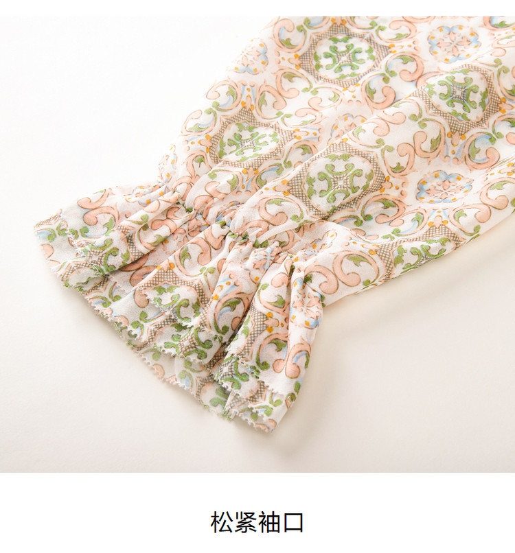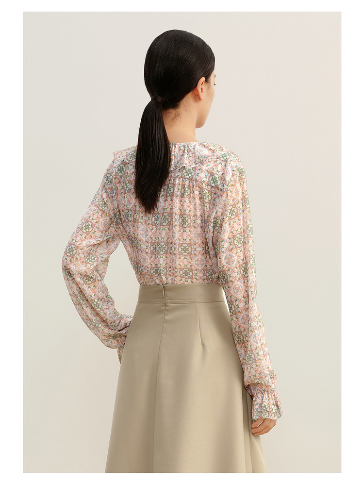 商品名称:玖姿旗下安娜蔻系列洋气复古荷叶边雪纺印花长袖上衣女秋季 711500