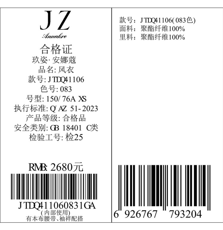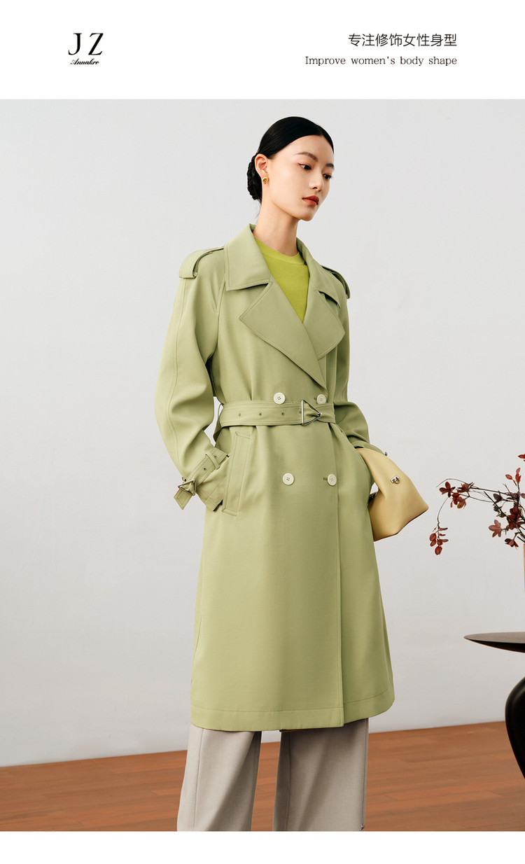 商品名称:【薄荷曼波】玖姿旗下安娜蔻系列女大气翻领洋气休闲X型长风衣 980620