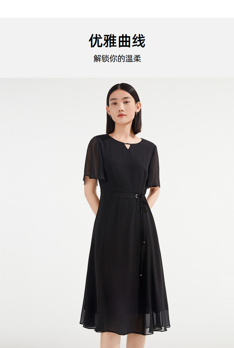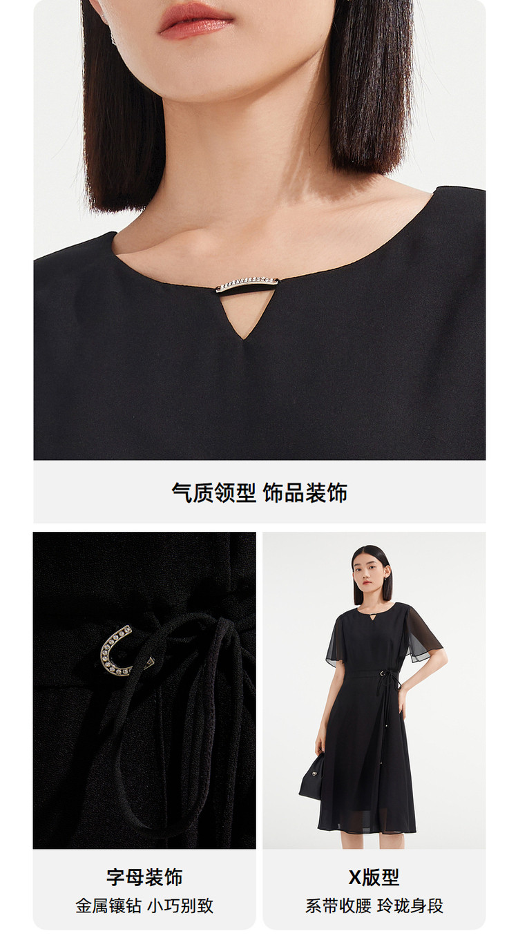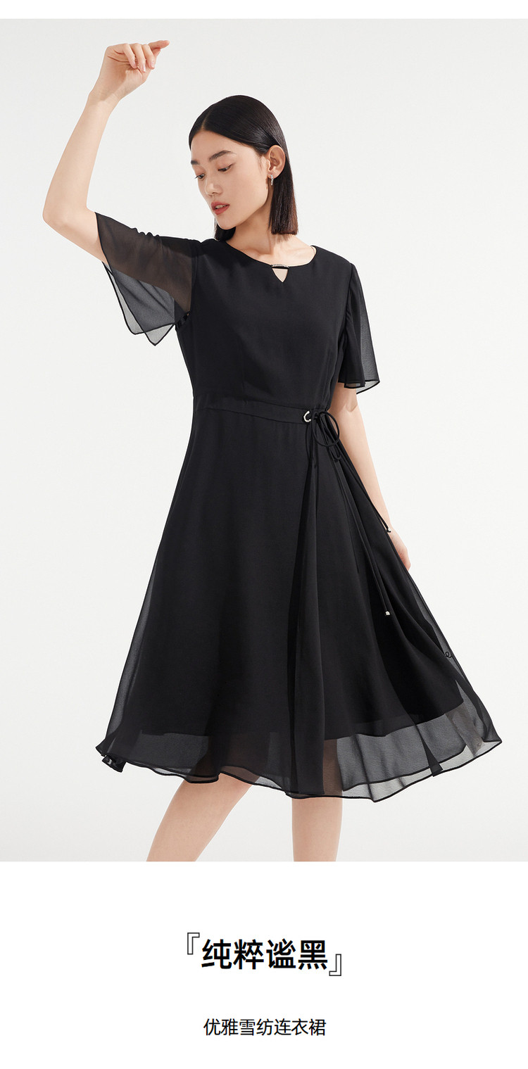 商品名称:JZ玖姿优雅雪纺夏季金属镶钻轻盈收腰连衣裙女 533132