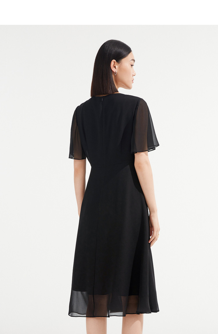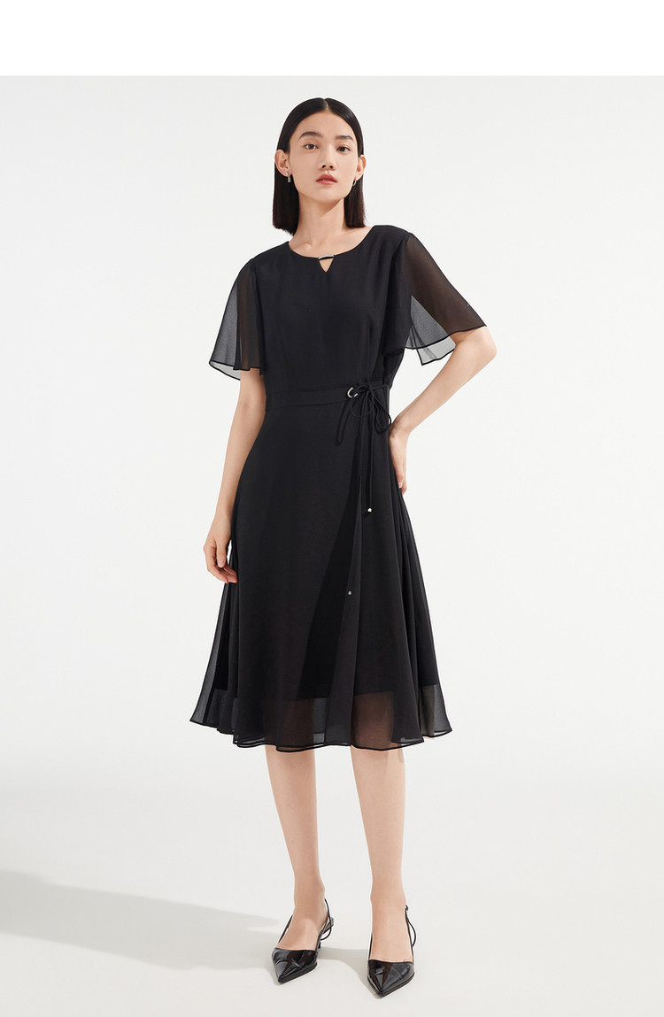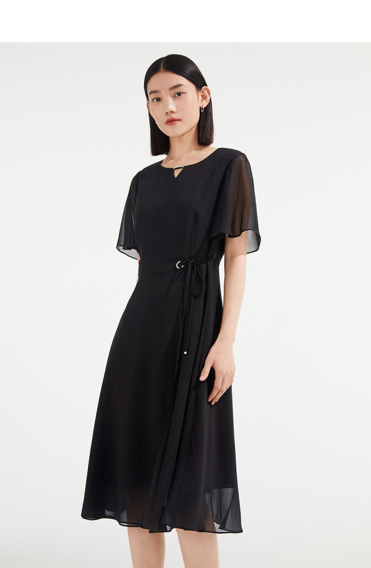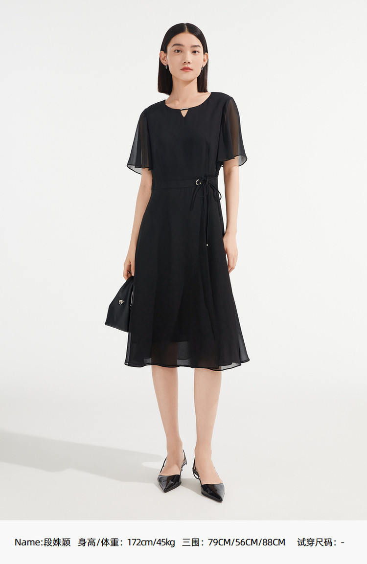 商品名称:JZ玖姿优雅雪纺夏季金属镶钻轻盈收腰连衣裙女 533132