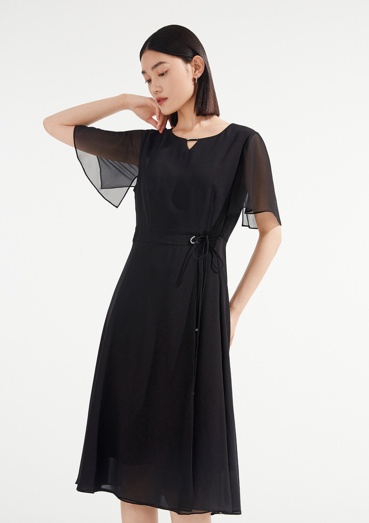 JZ玖姿优雅雪纺夏季金属镶钻轻盈收腰连衣裙女 533132