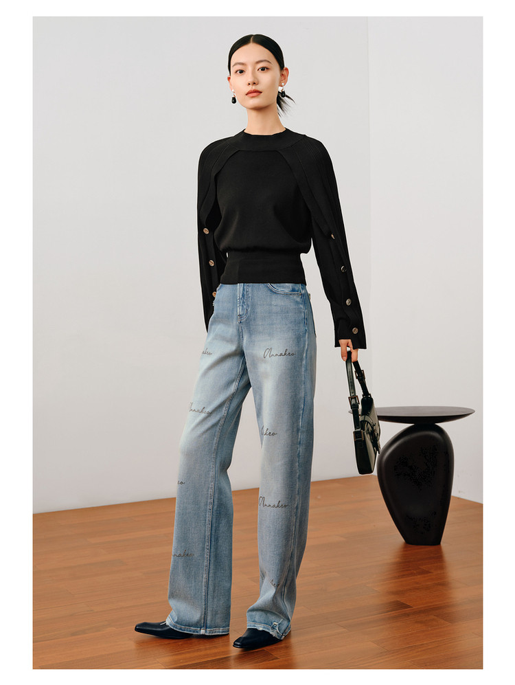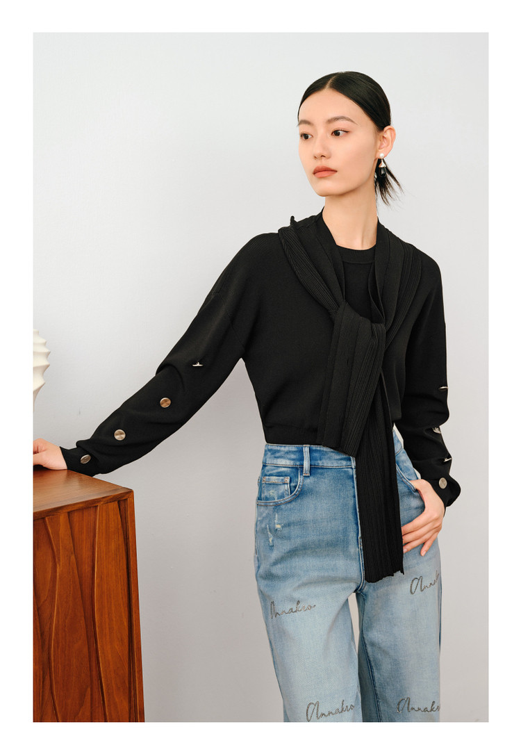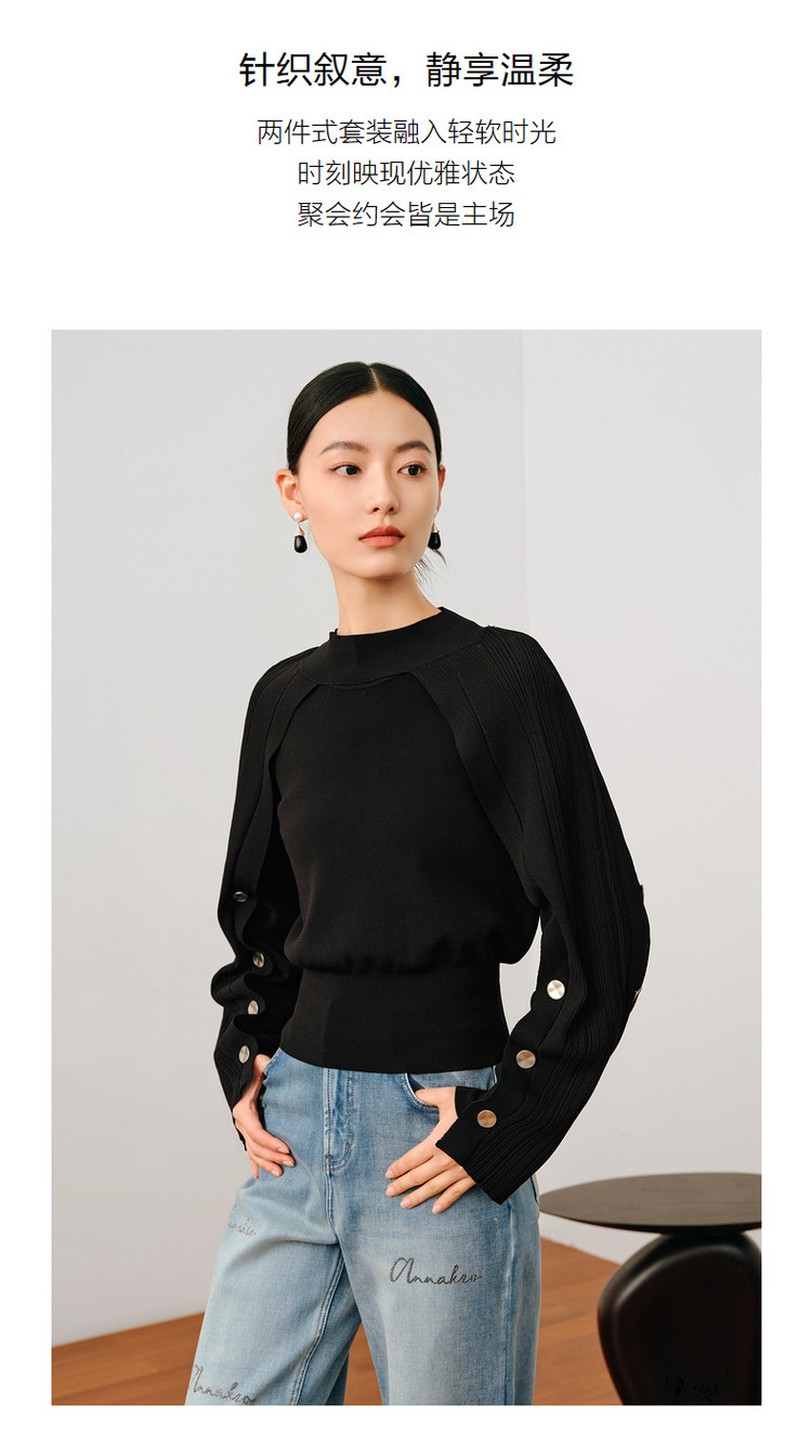 玖姿旗下安娜蔻系列时髦长袖优雅两件套套头针织衫女秋 005452