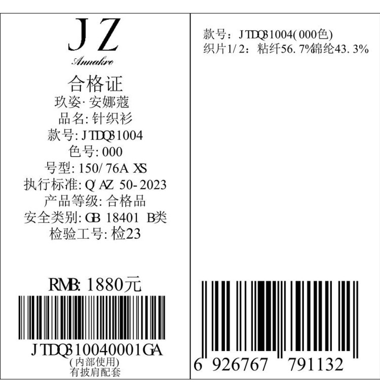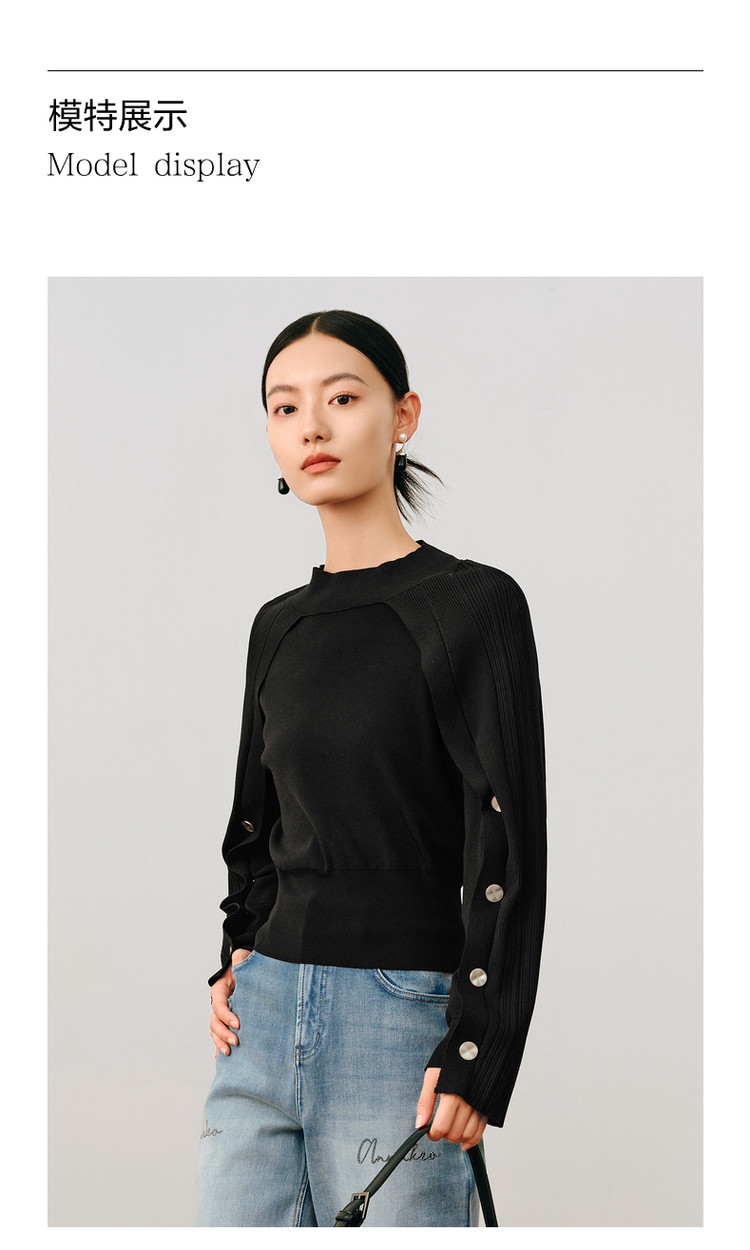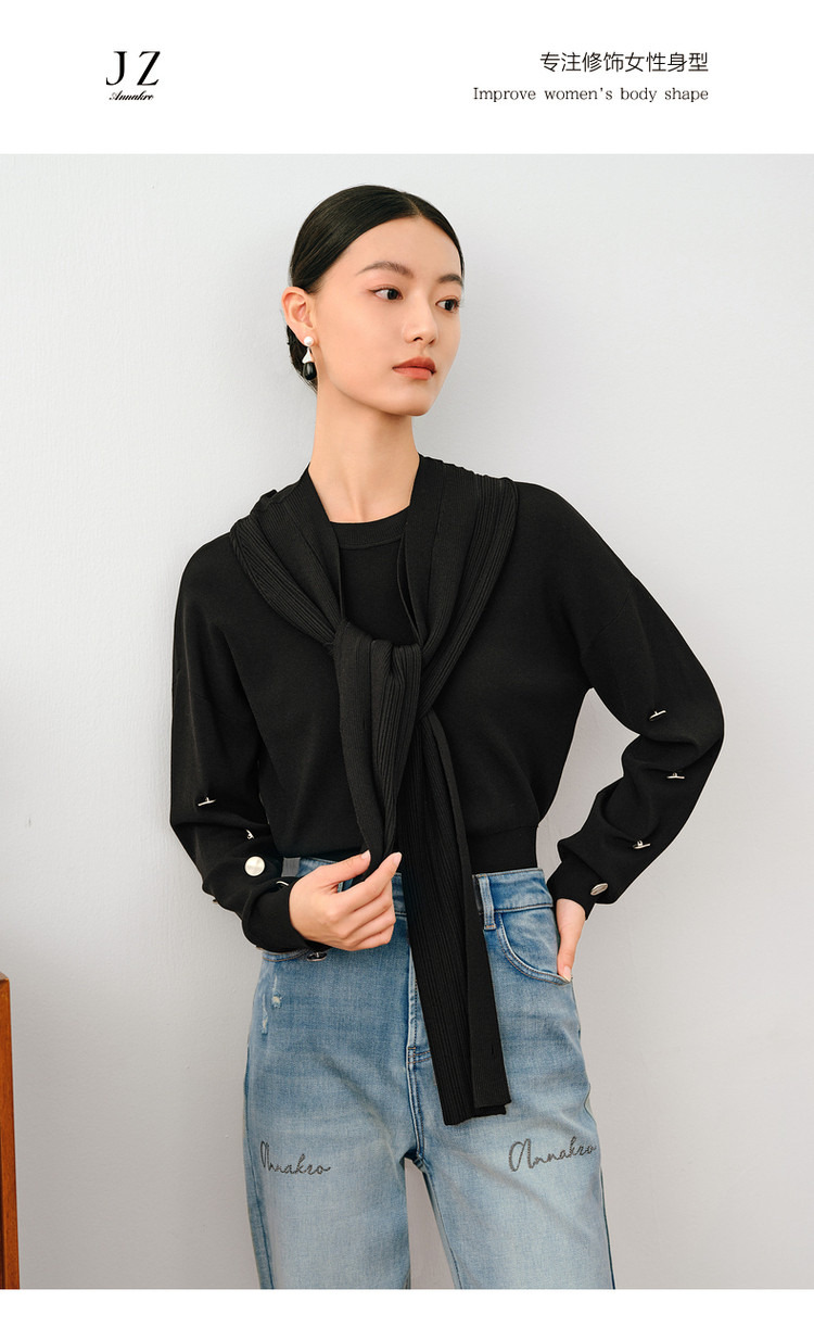商品名称:玖姿旗下安娜蔻系列时髦长袖优雅两件套套头针织衫女秋 005452