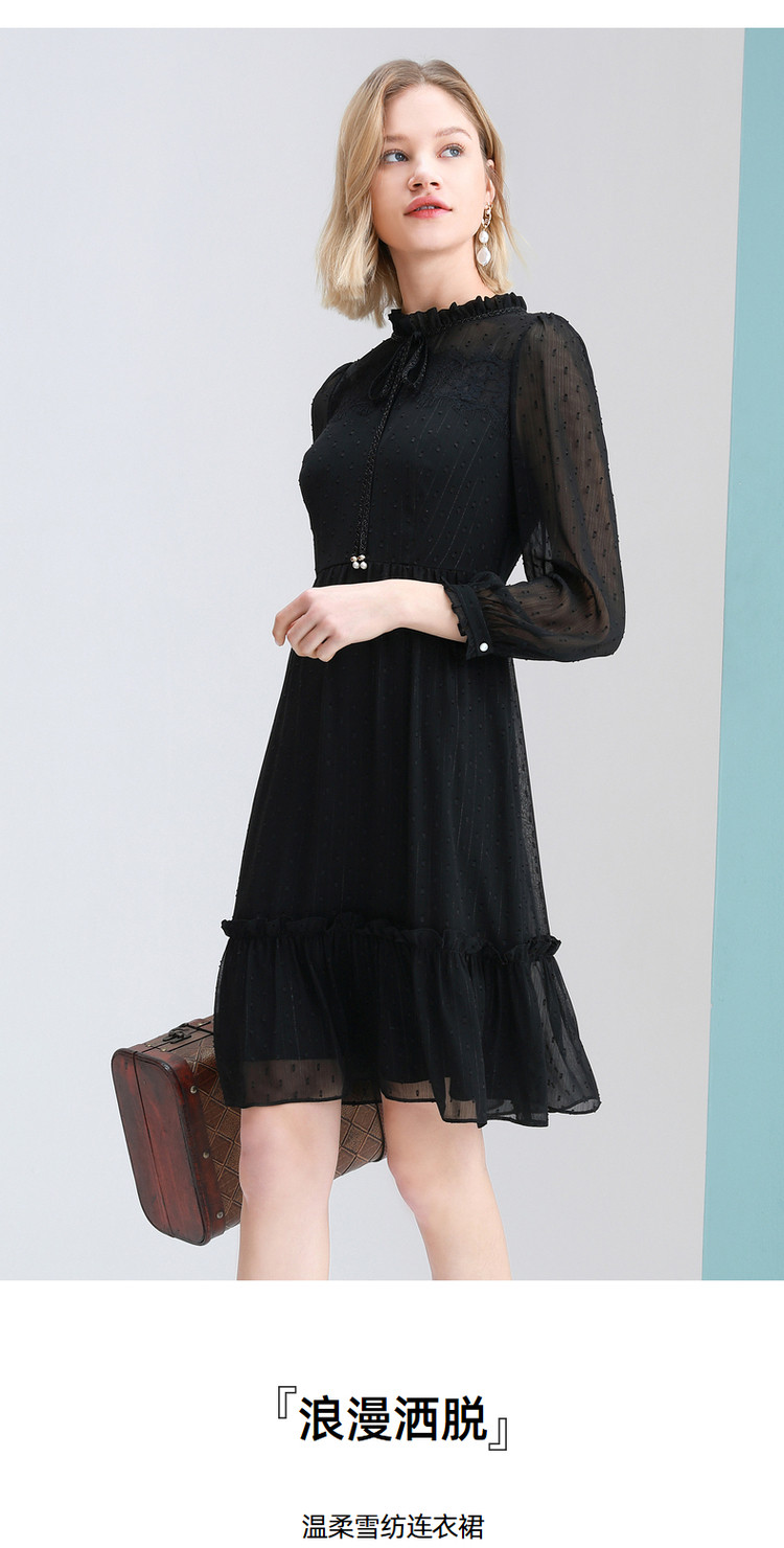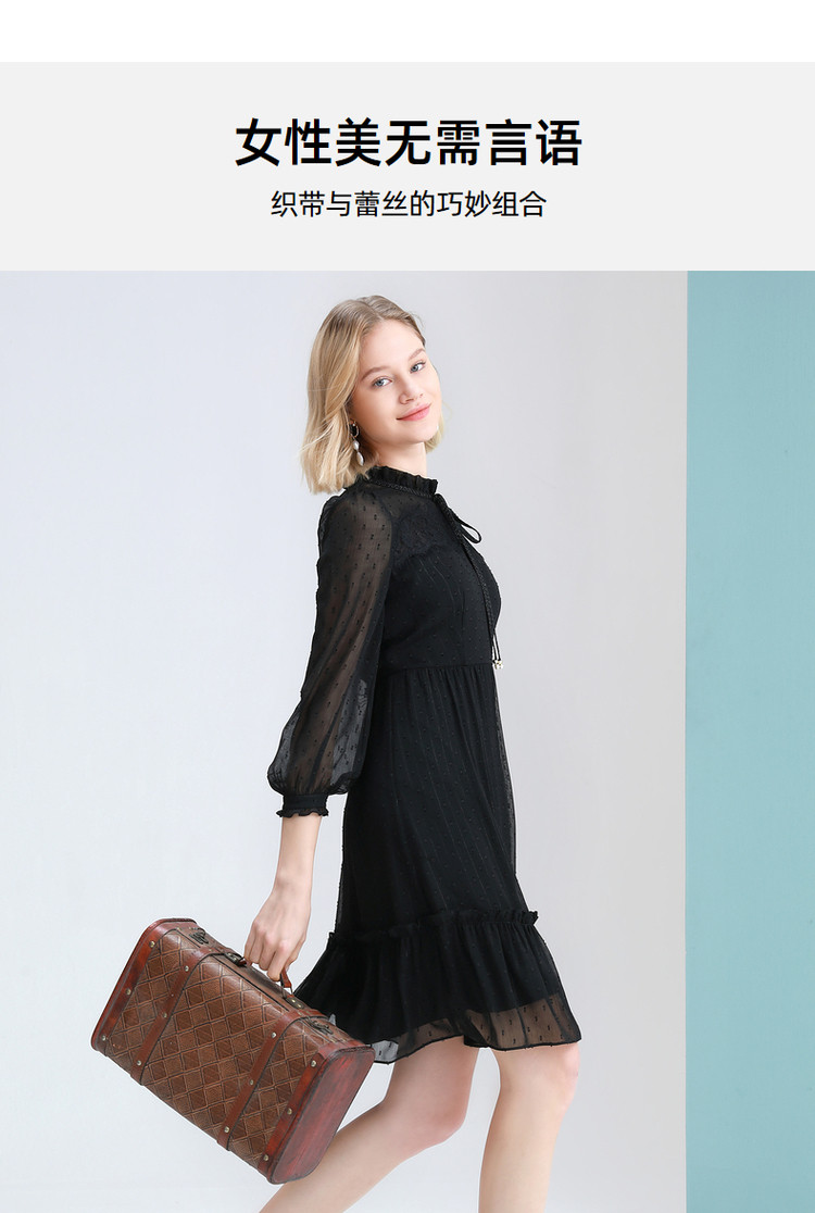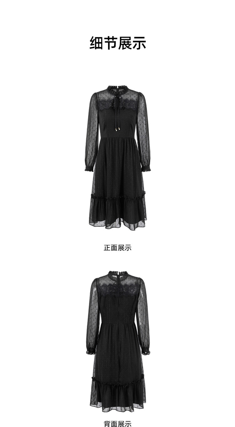 商品名称:玖姿年春季纯色织带优雅中长款连衣裙 502668