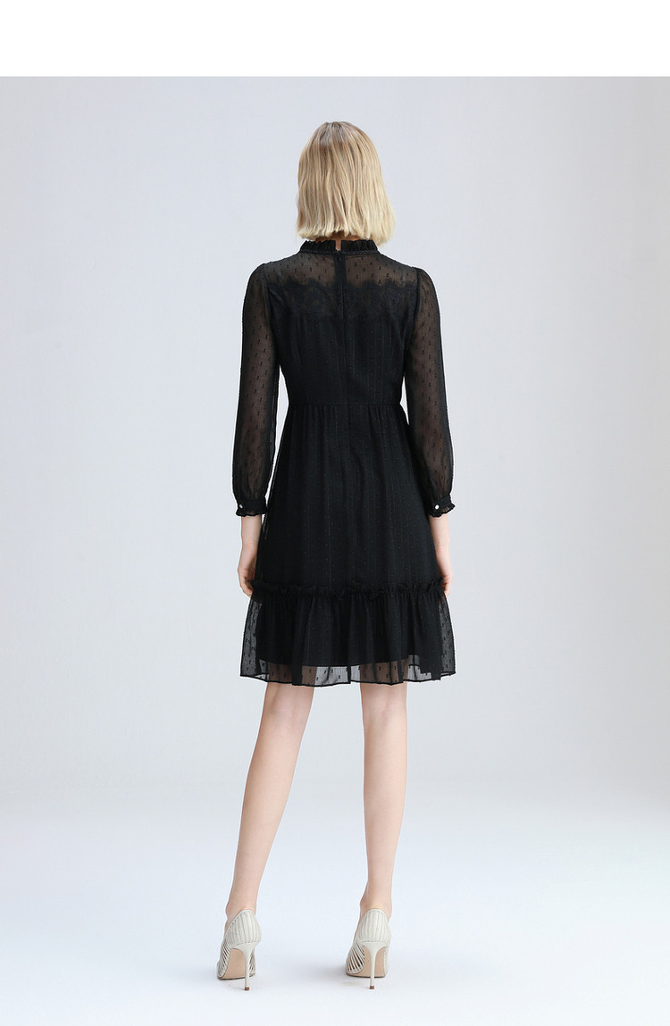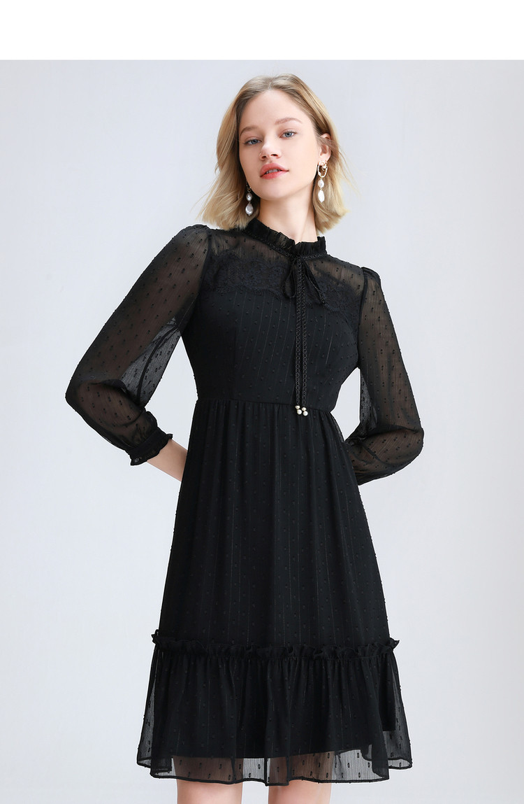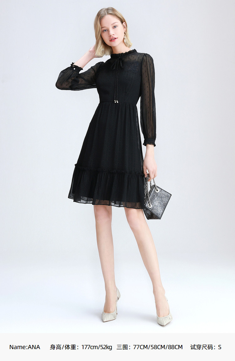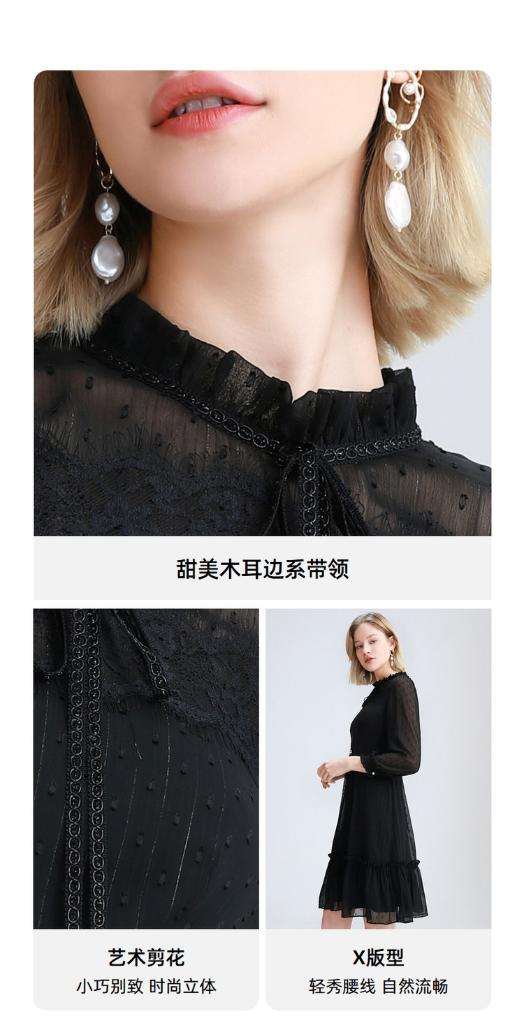 商品名称:玖姿年春季纯色织带优雅中长款连衣裙 502668
