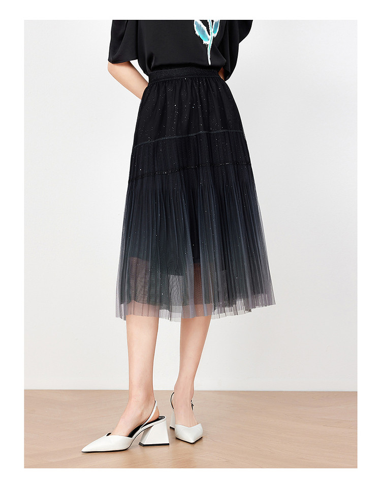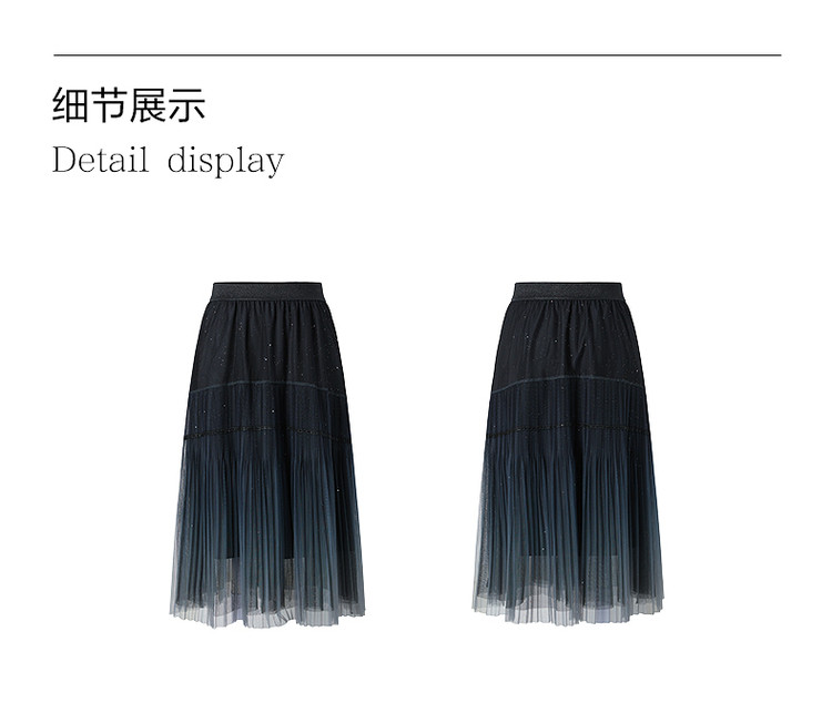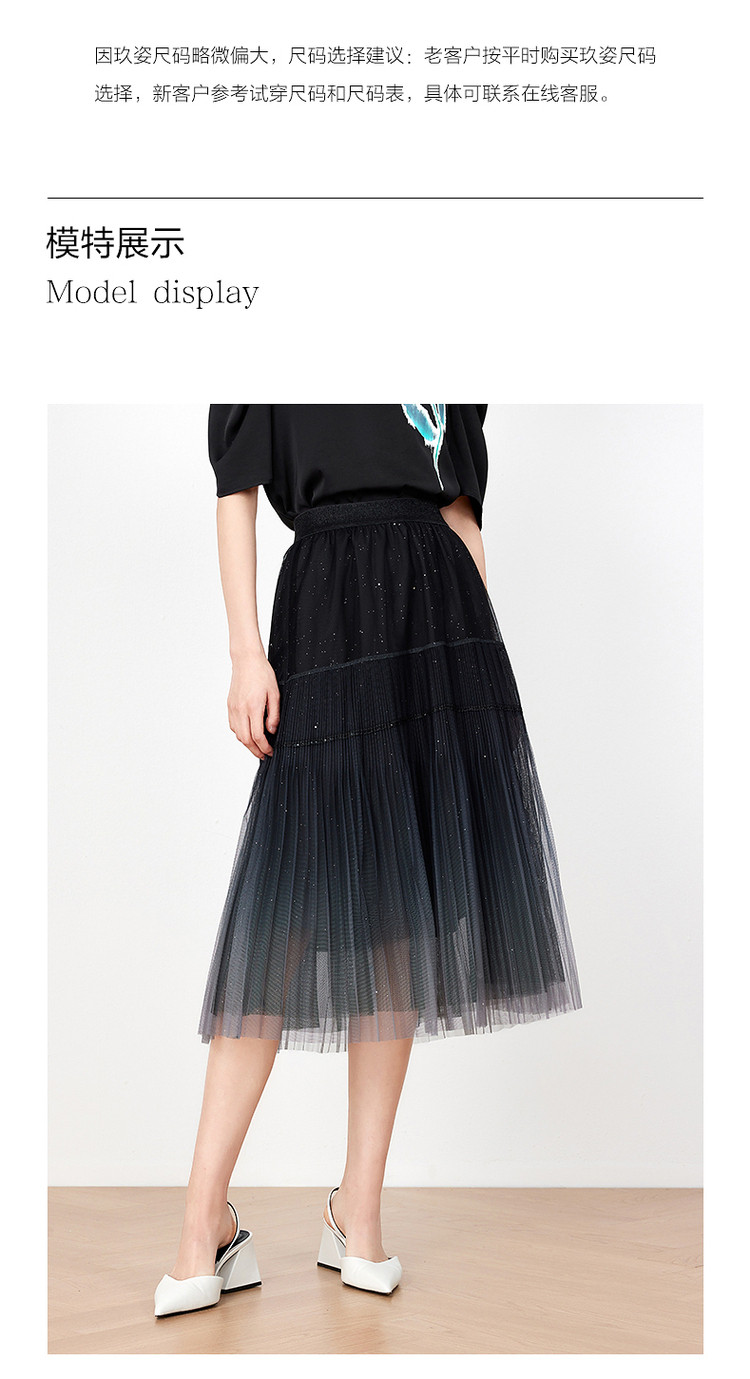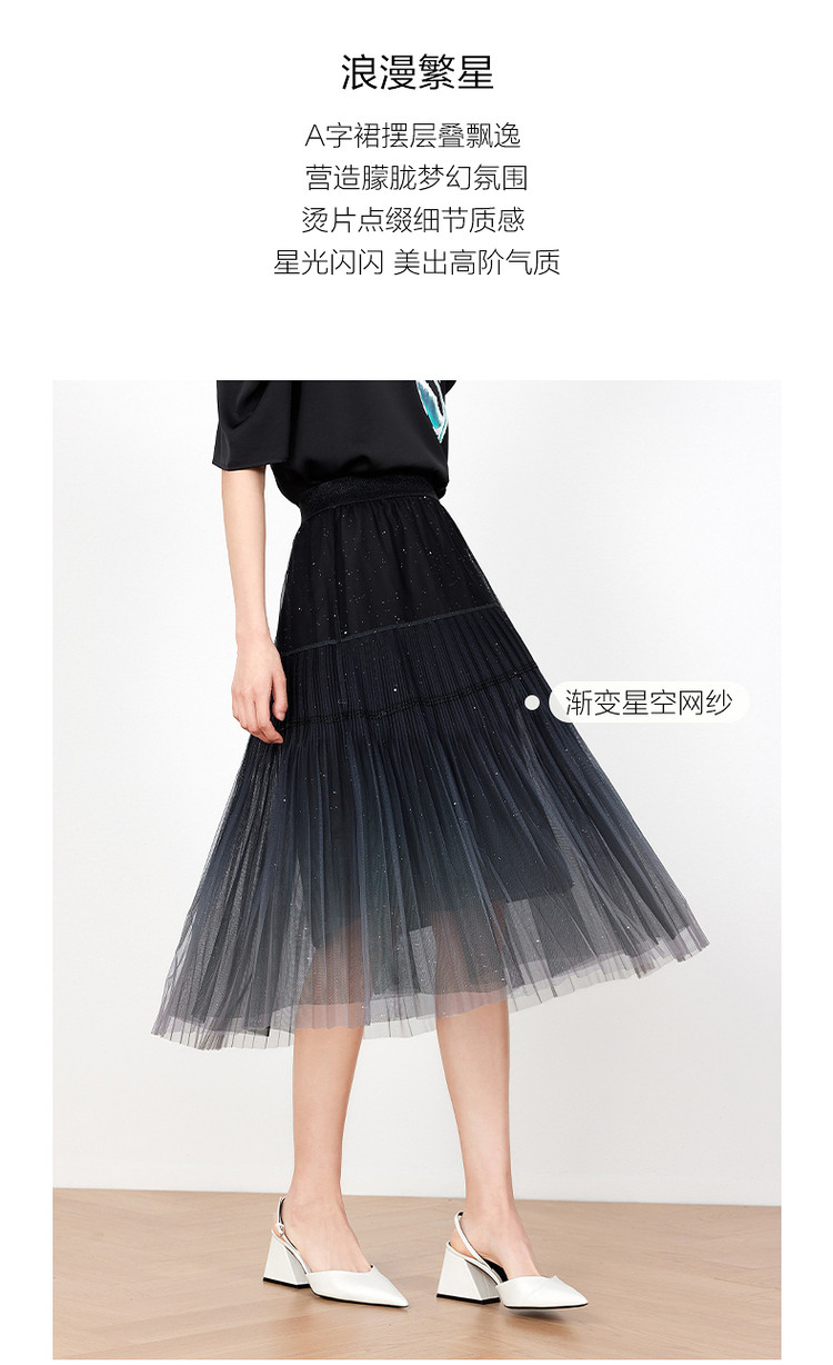 商品名称:玖姿旗下安娜蔻系列渐变网纱星空半身裙女装夏季小众设计感百褶裙 011340
