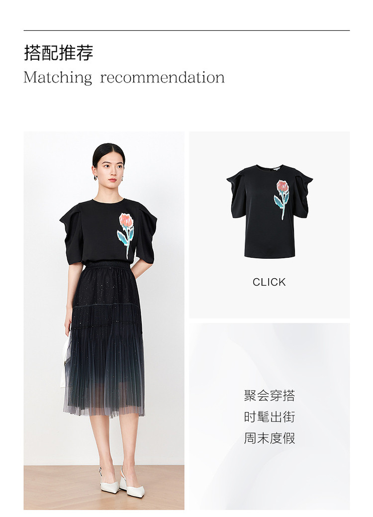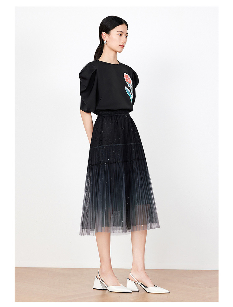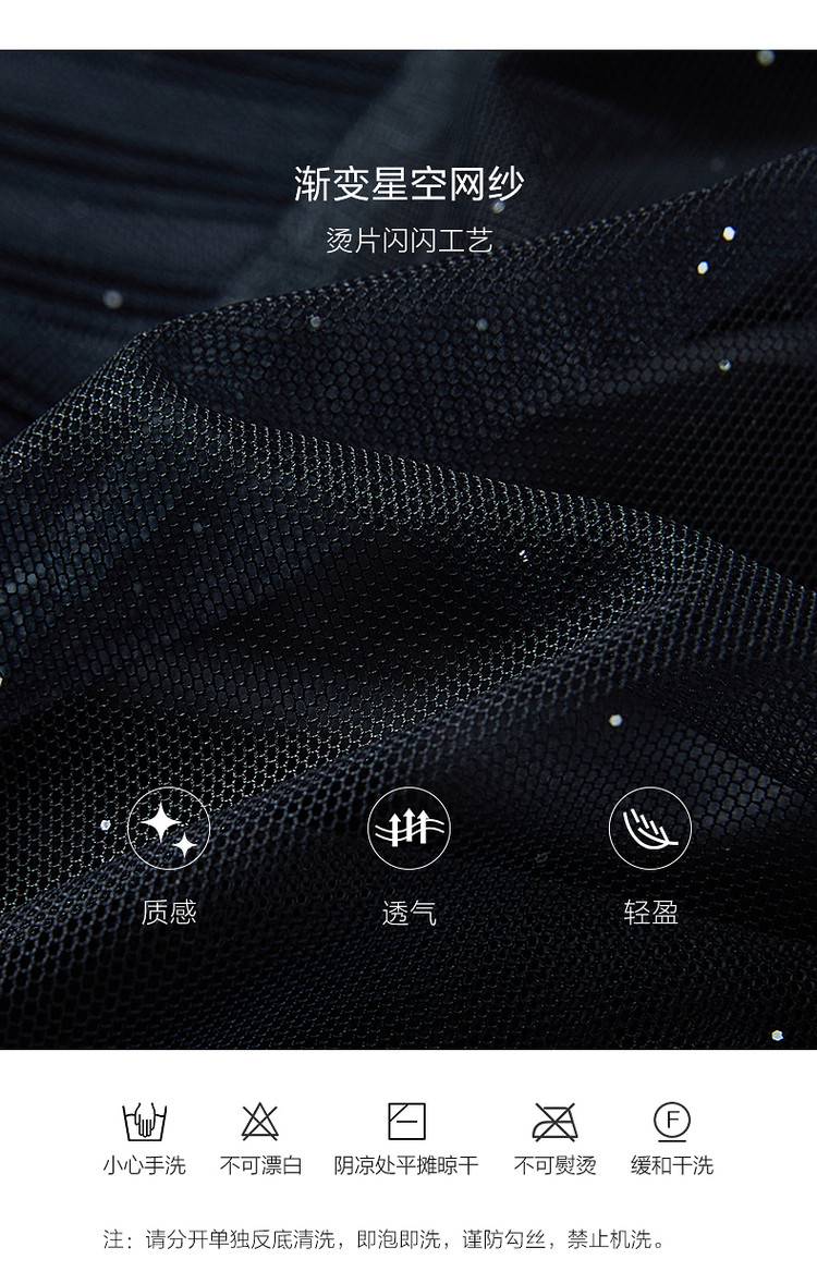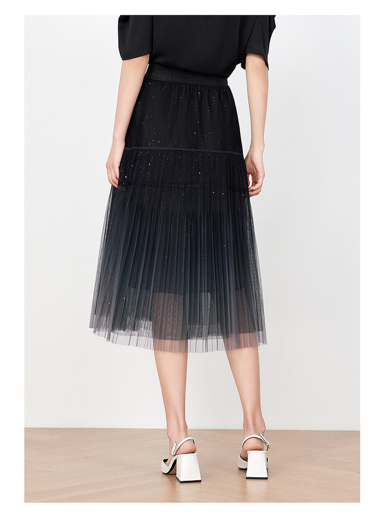 商品名称:玖姿旗下安娜蔻系列渐变网纱星空半身裙女装夏季小众设计感百褶裙 011340