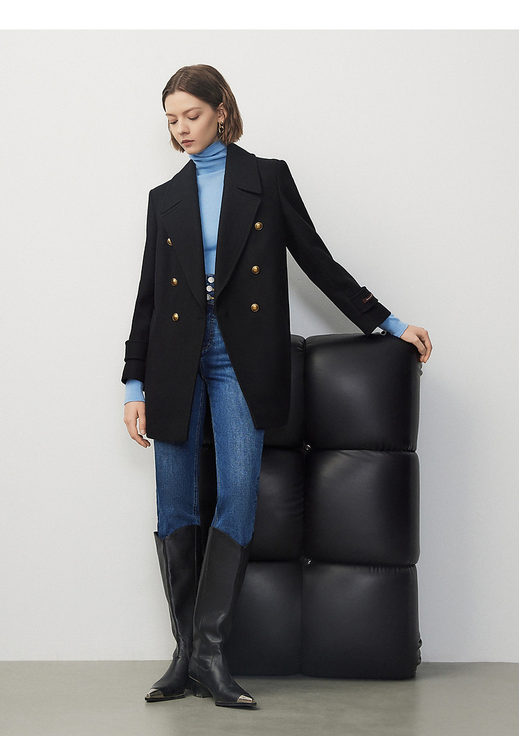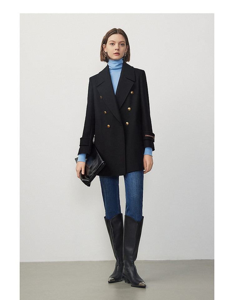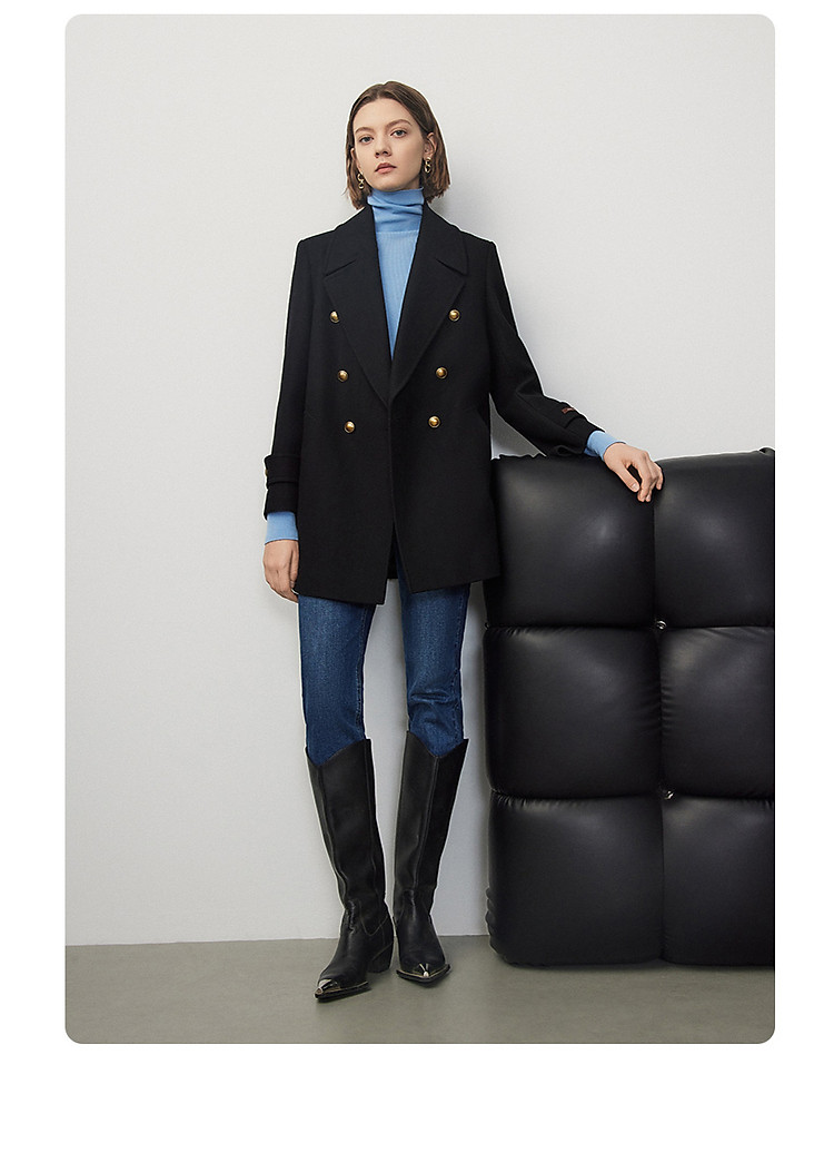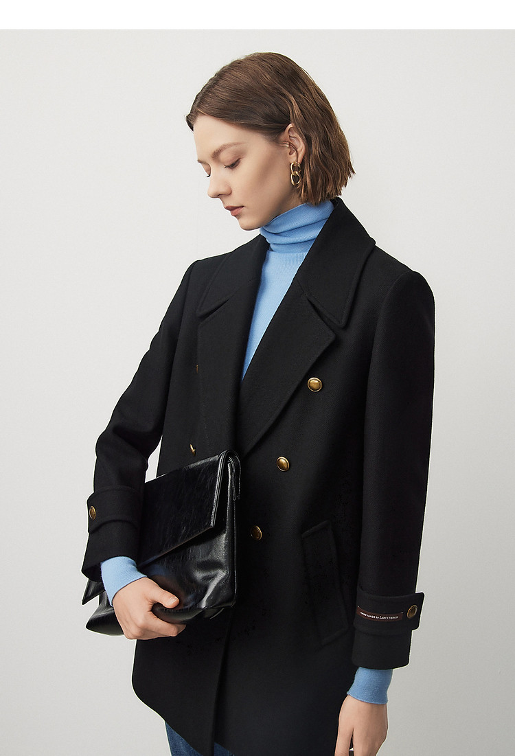 羊毛法式复古高级感西装领毛呢外套冬季通勤气质上衣 070937