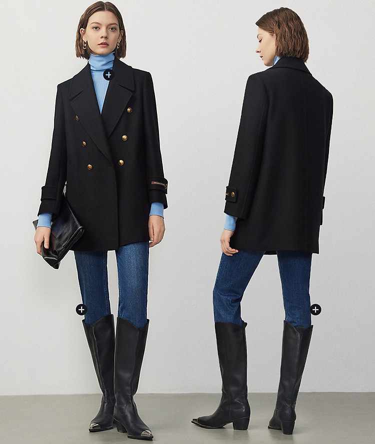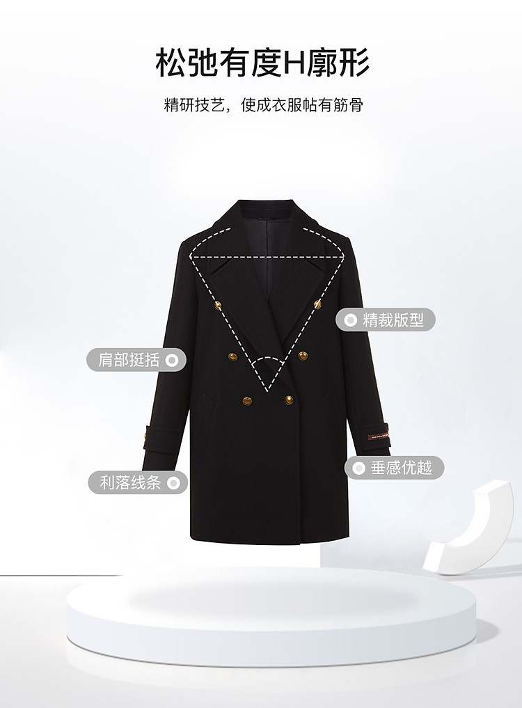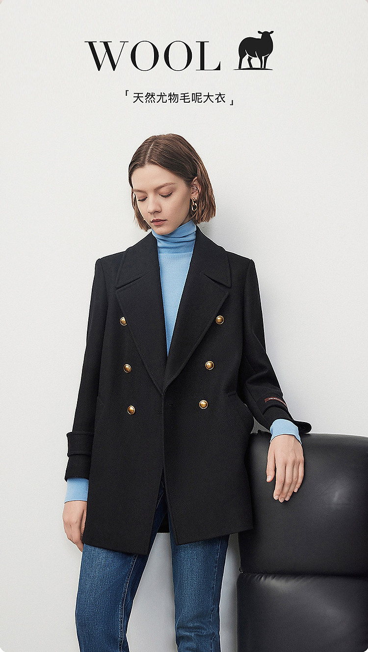 商品名称:羊毛法式复古高级感西装领毛呢外套冬季通勤气质上衣 070937