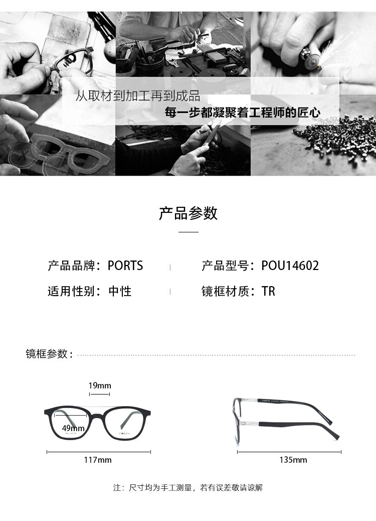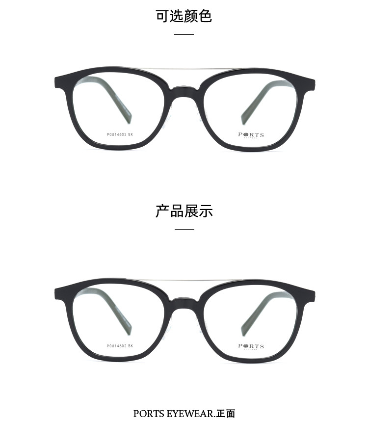 商品名称:Ports眼镜中性款光学架时尚百搭中性款全框眼镜架商务 596490