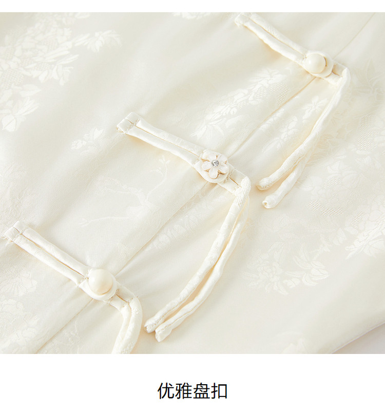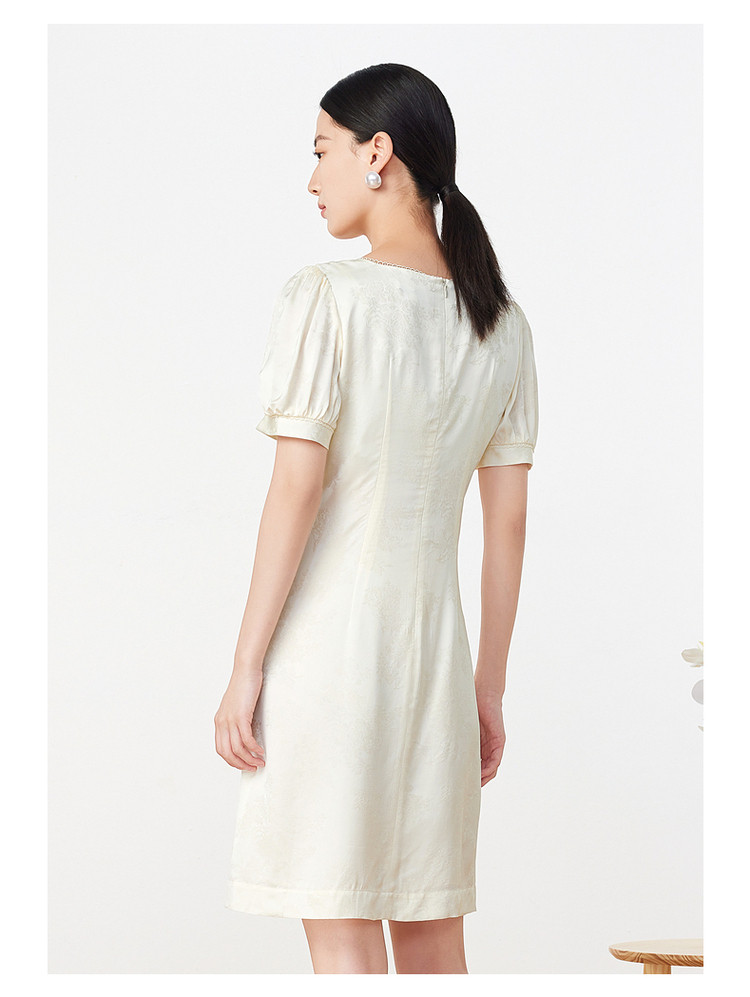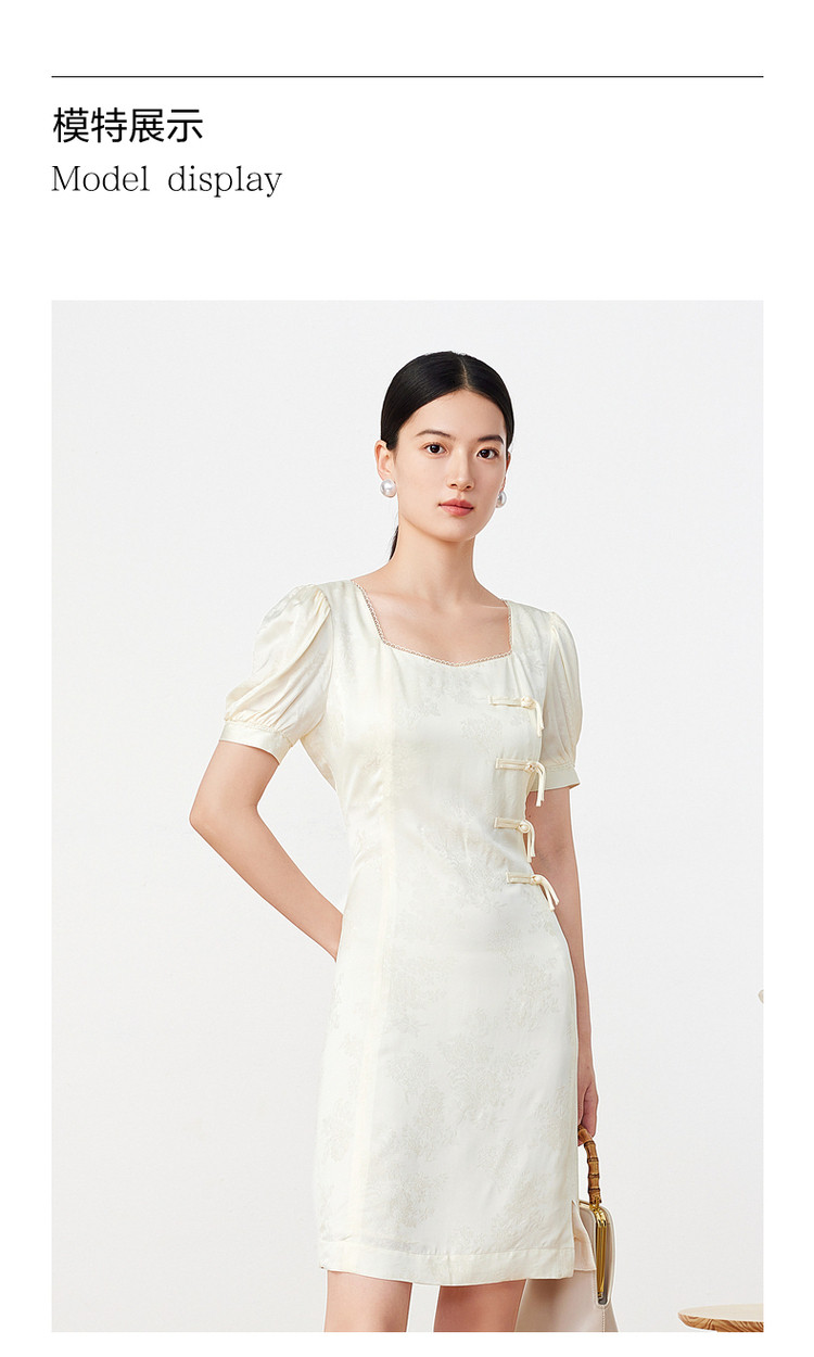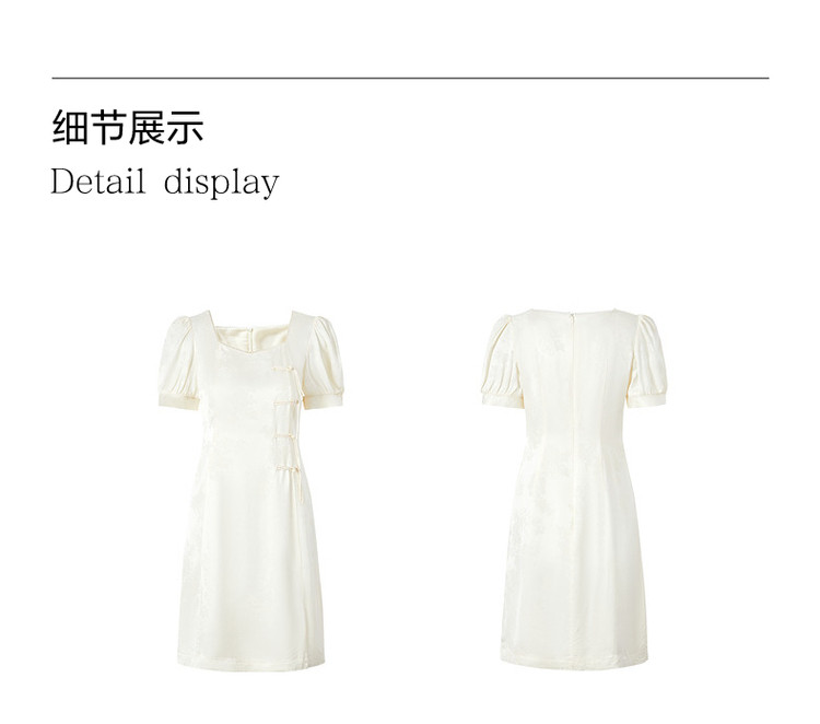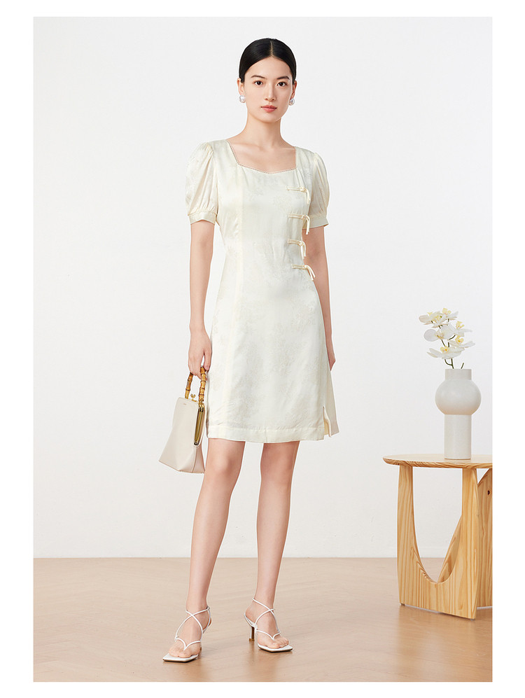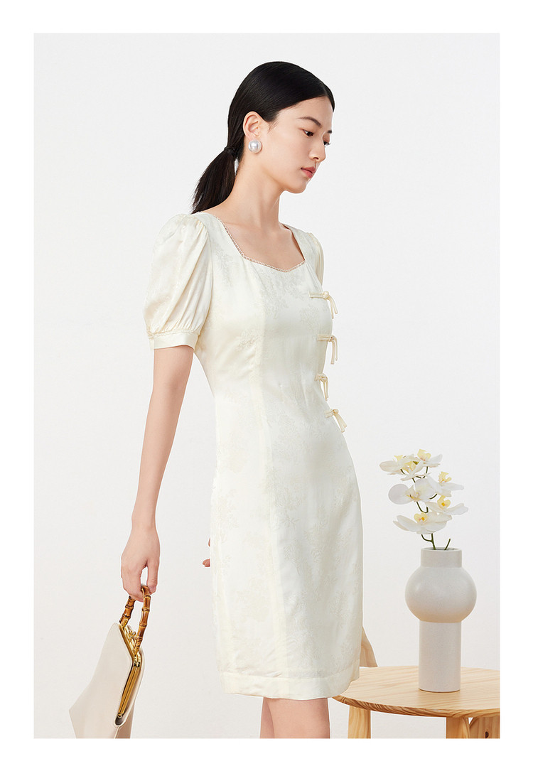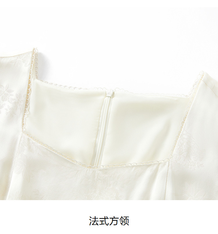 商品名称:玖姿旗下安娜蔻系列洋气法式优雅风方领盘扣收腰丝缎提花连衣裙 552844