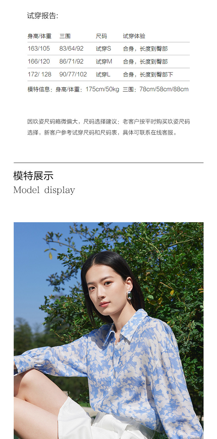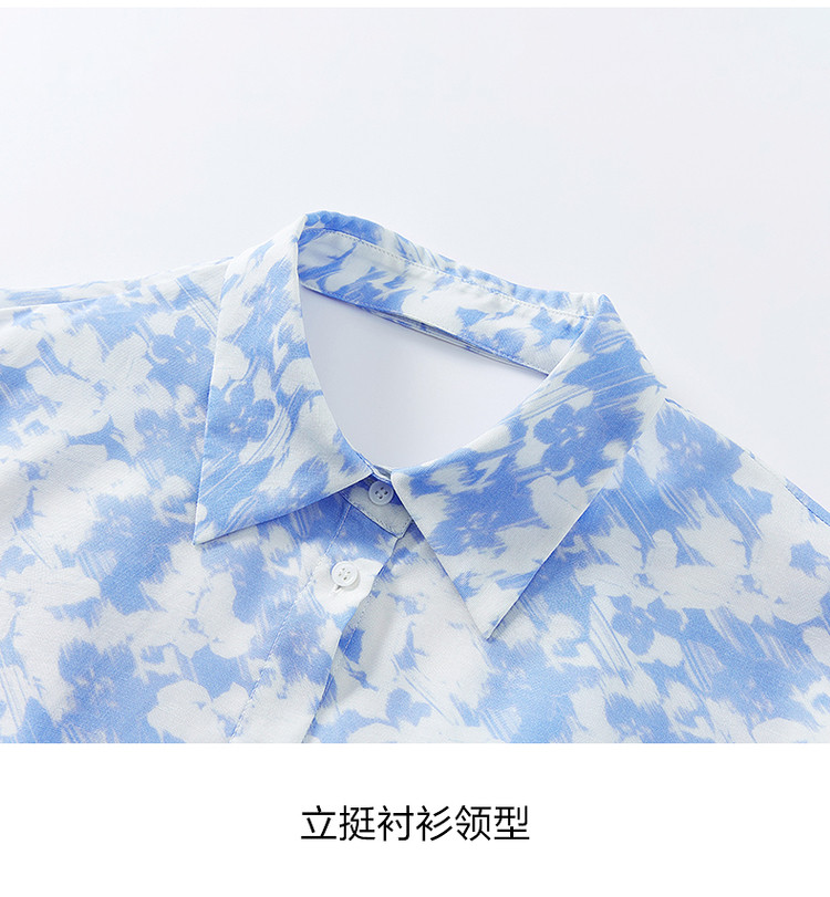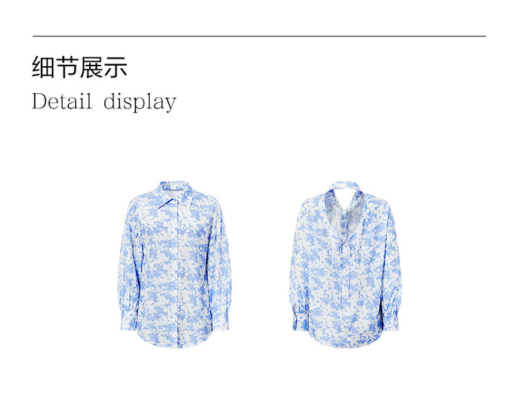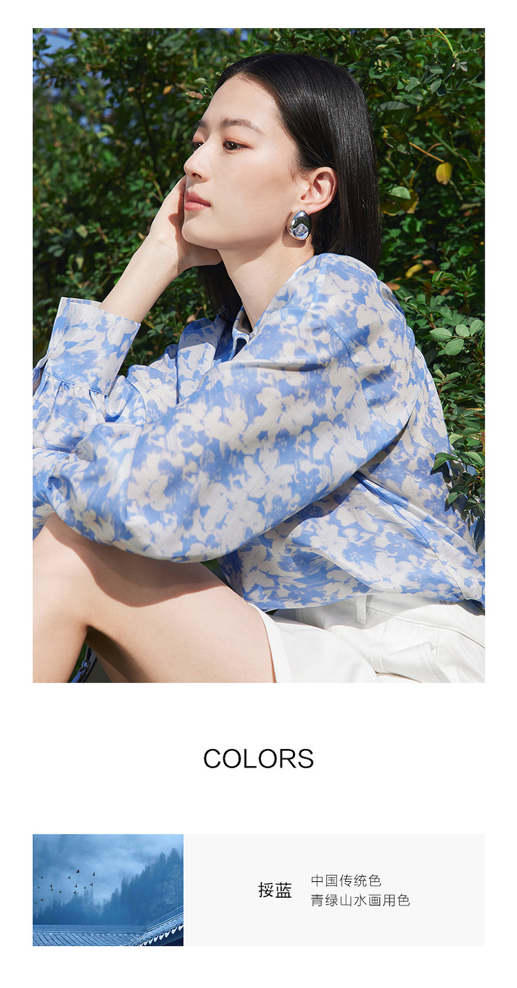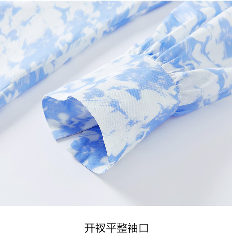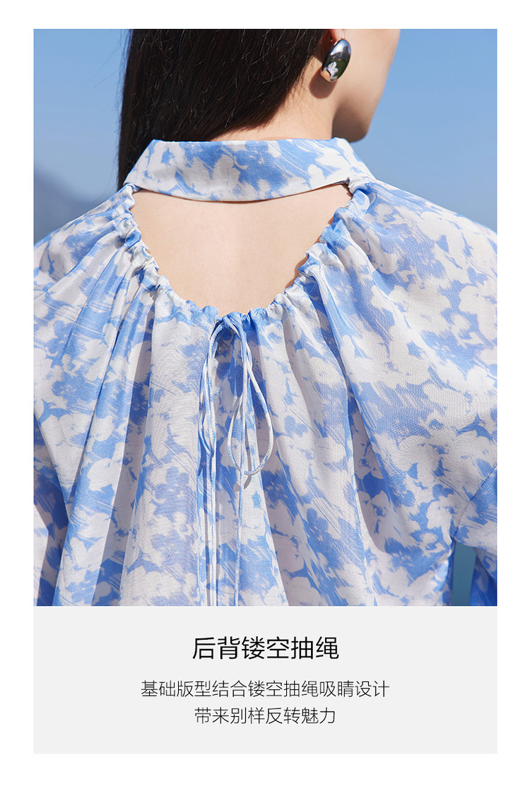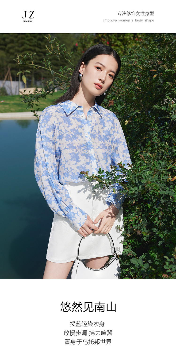 商品名称:玖姿旗下安娜蔻系列镂空长袖衬衫女装夏季晕染印花休闲上衣 451212