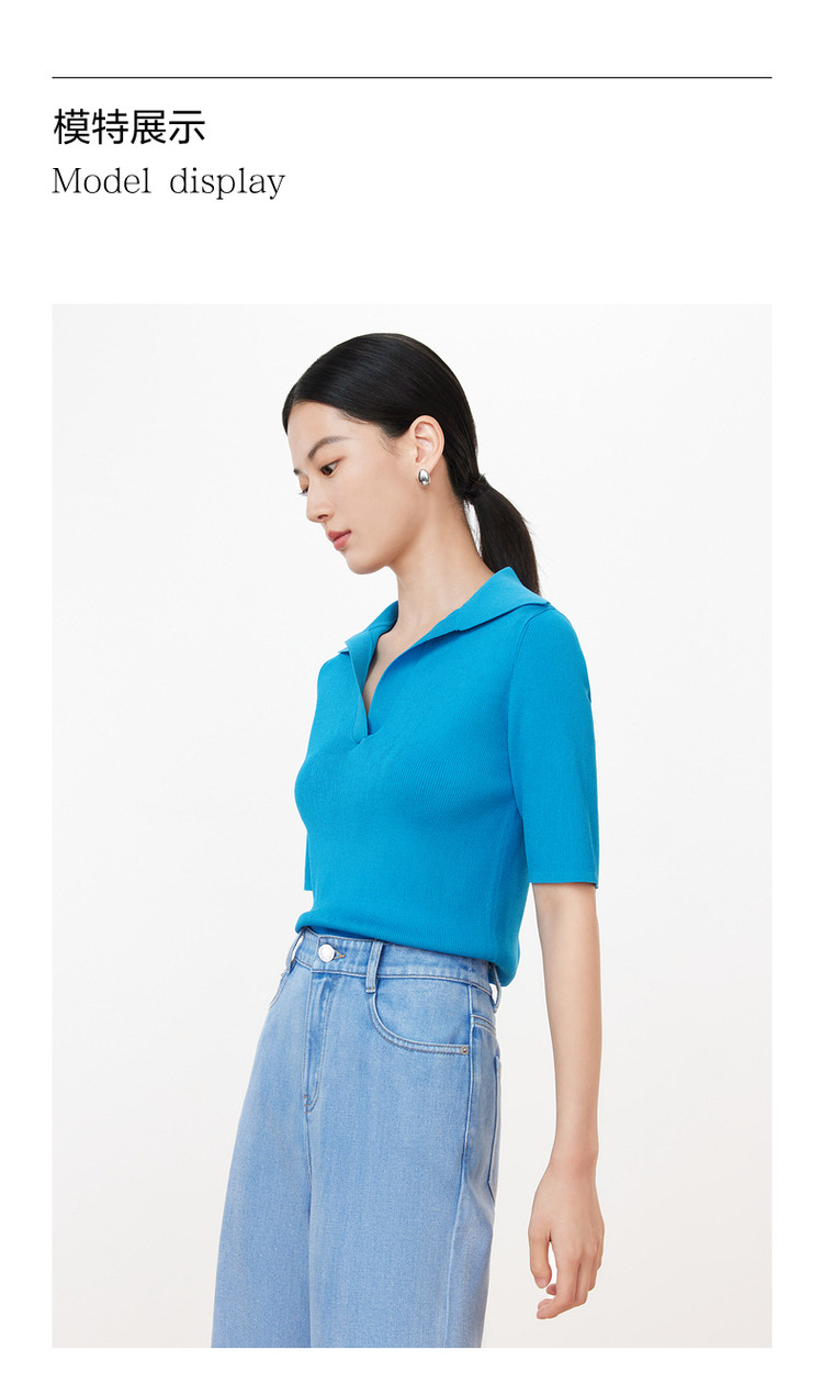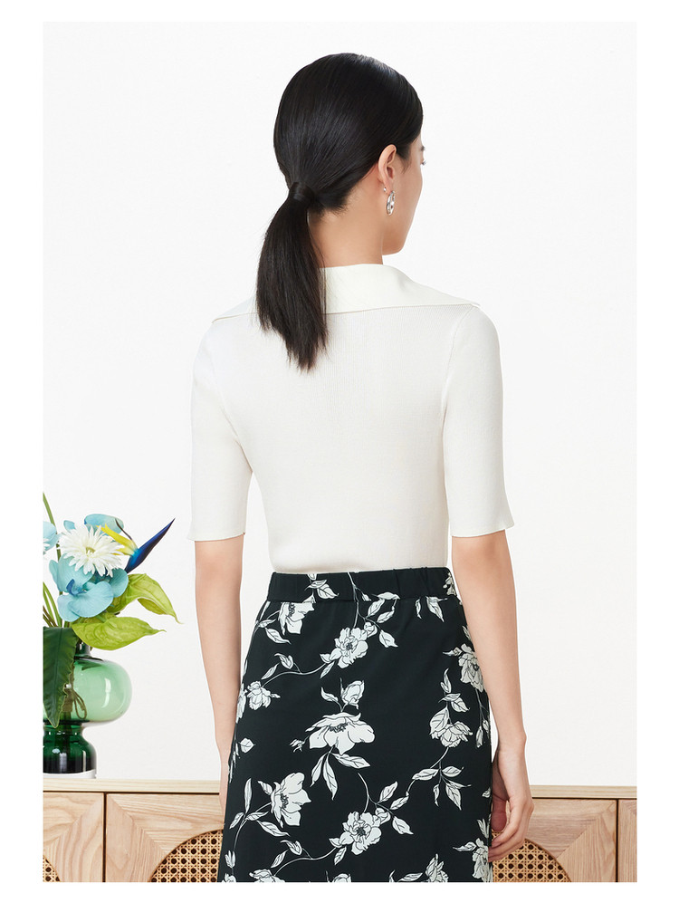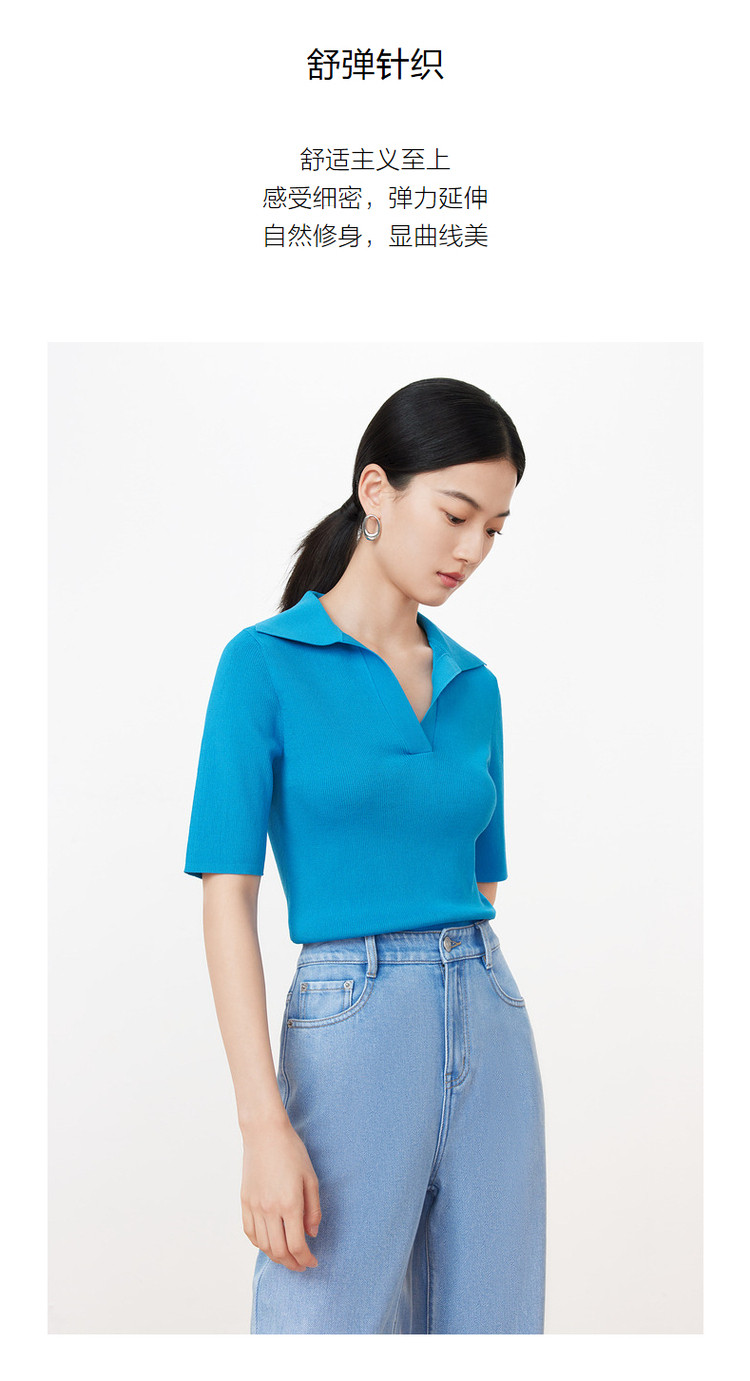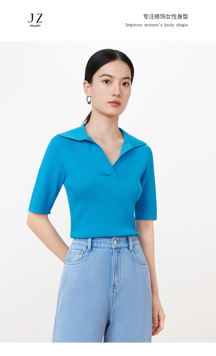 玖姿旗下安娜蔻系列通勤三醋酸针织衫女装夏季气质翻领针织上衣 797900