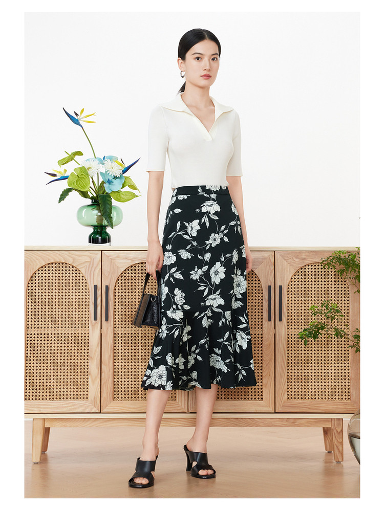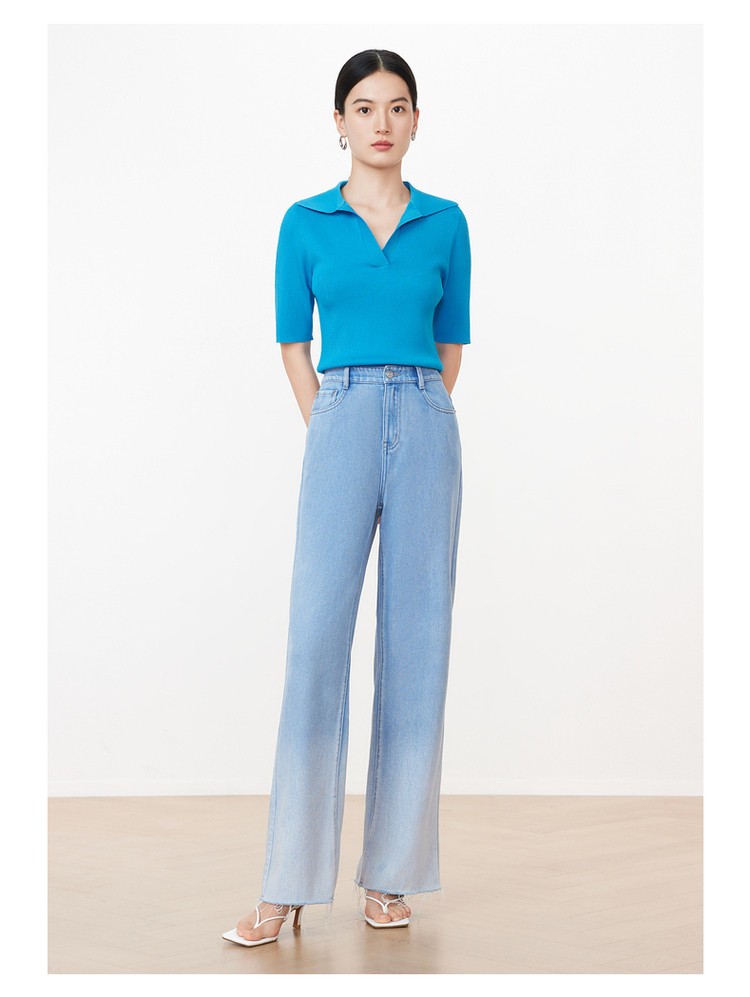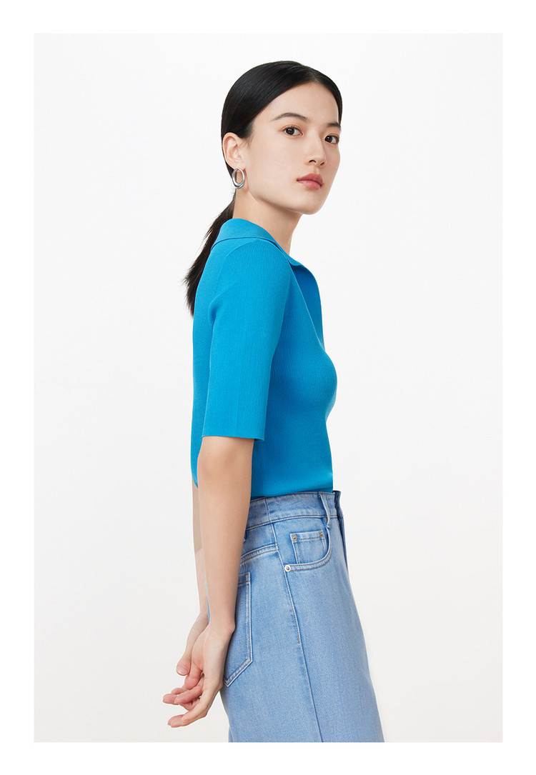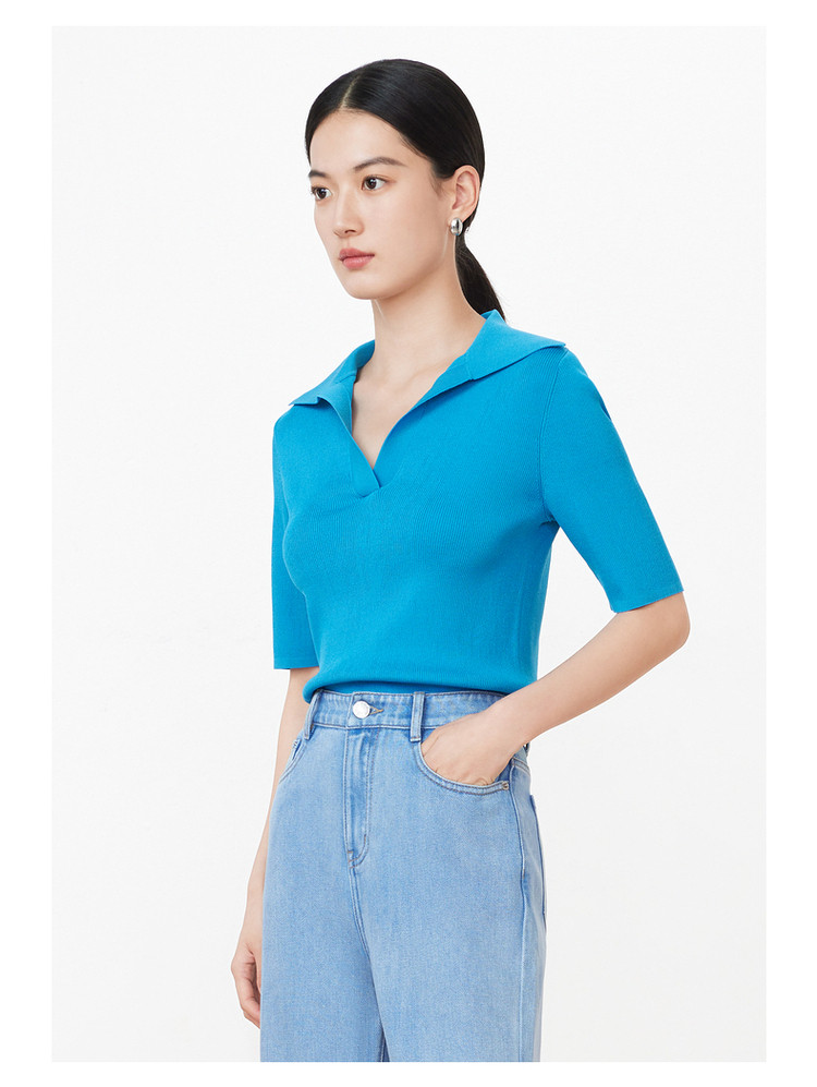 玖姿旗下安娜蔻系列通勤三醋酸针织衫女装夏季气质翻领针织上衣 797900