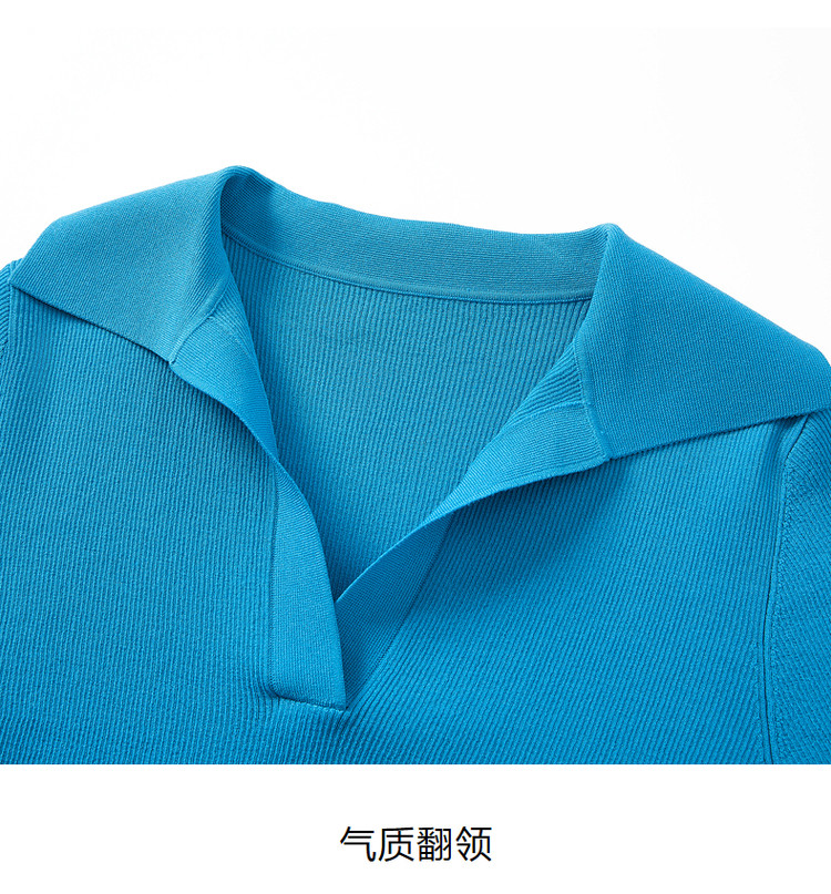 商品名称:玖姿旗下安娜蔻系列通勤三醋酸针织衫女装夏季气质翻领针织上衣 797900