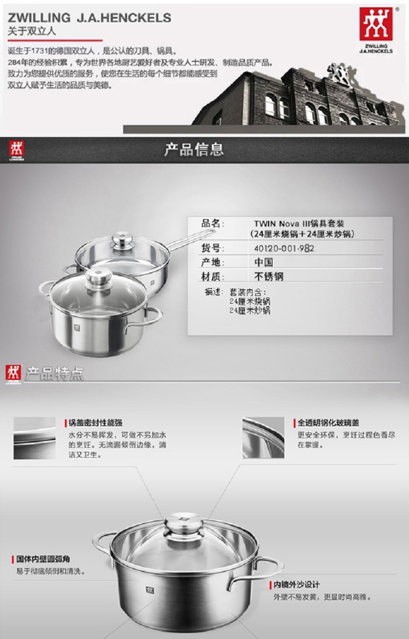 商品名称:双立人TWIN Nova Ⅲ 家庭实用锅具二件套 40120-001-982