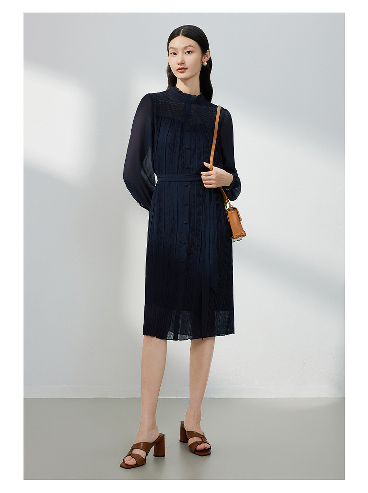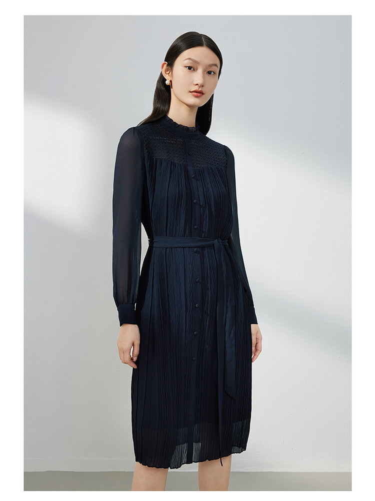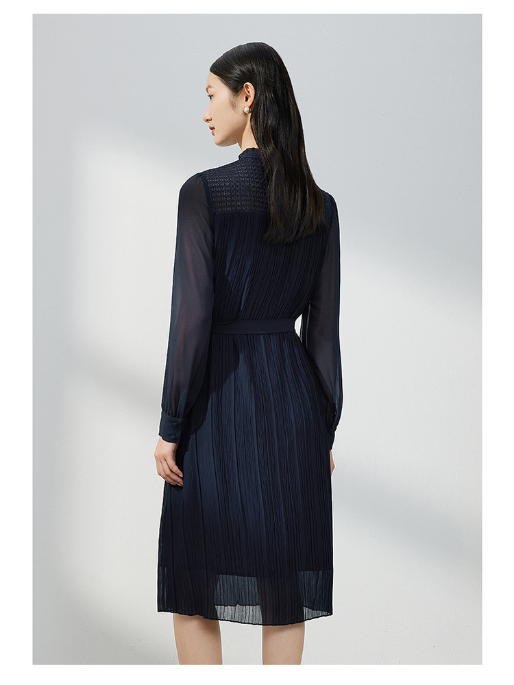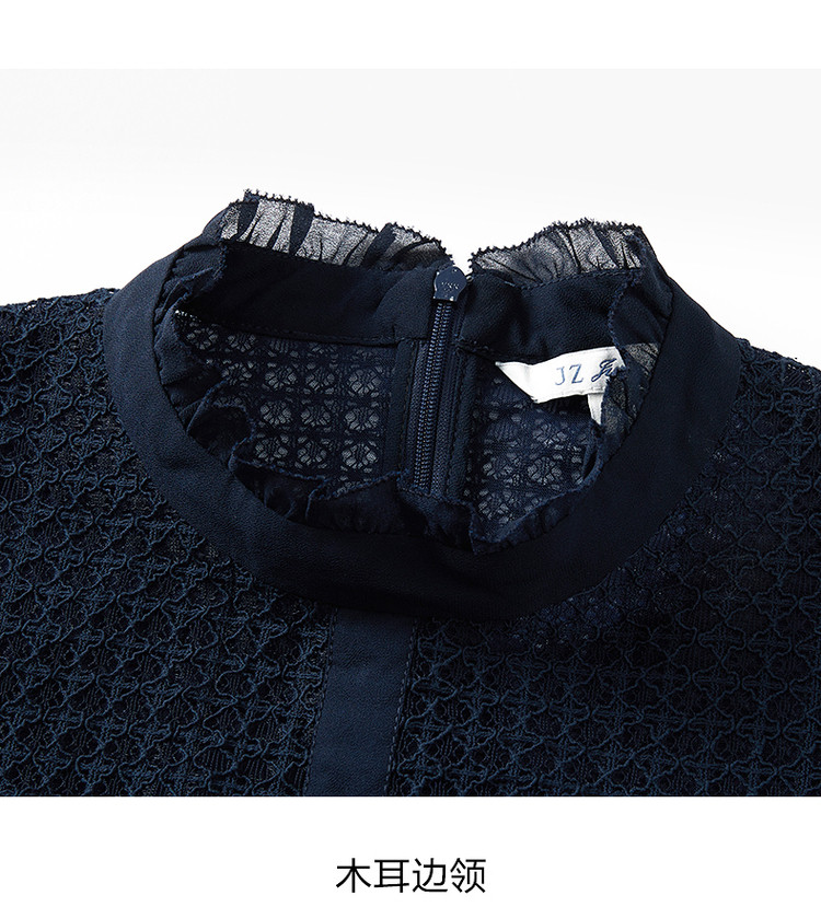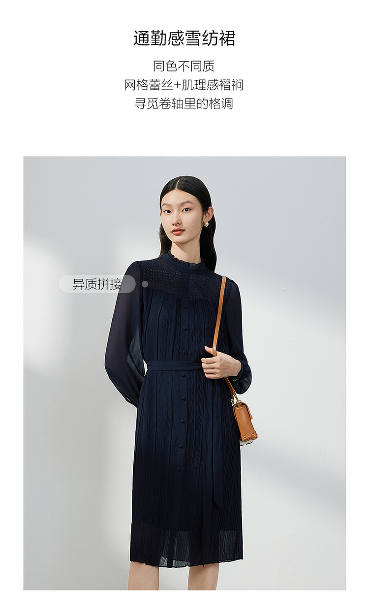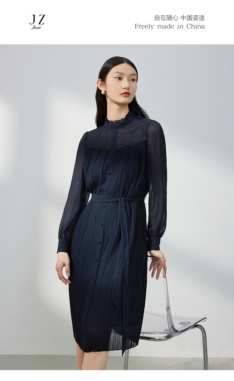商品名称:JZ玖姿蕾丝拼接雪纺连衣裙女装春季肌理裙子 767628