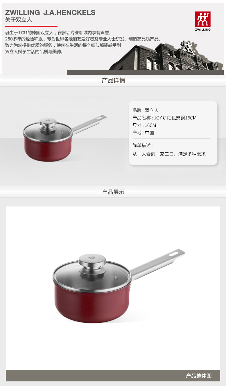 商品名称:双立人Joy C 16cm红色奶锅 66845-160-982