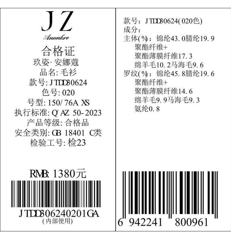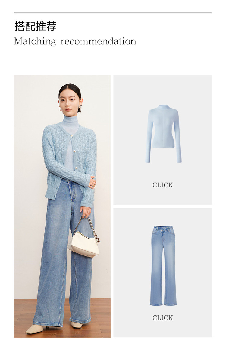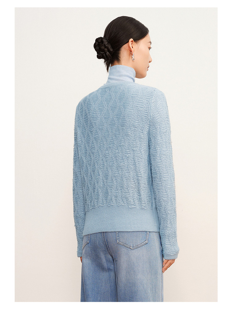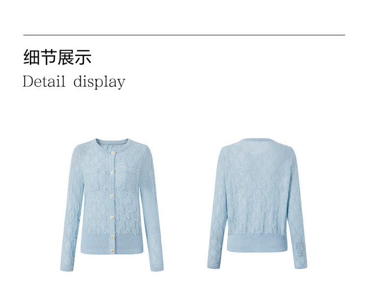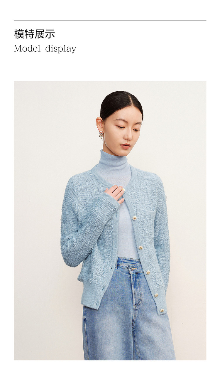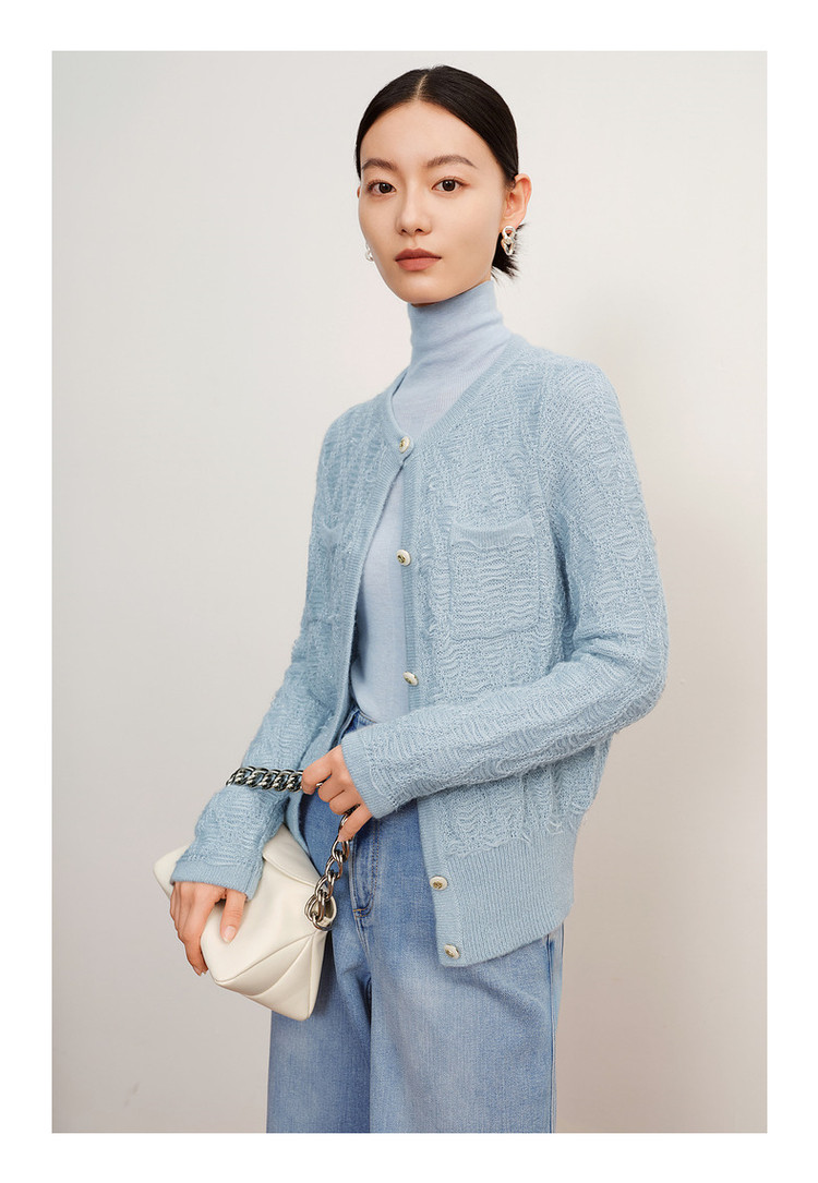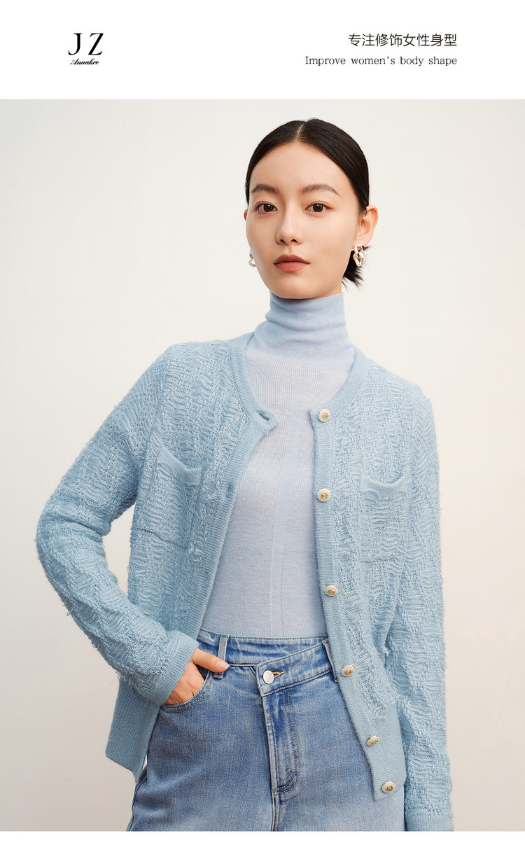 商品名称:玖姿旗下安娜蔻系列优雅圆领水波纹针织开衫毛衫外套女冬季 671116