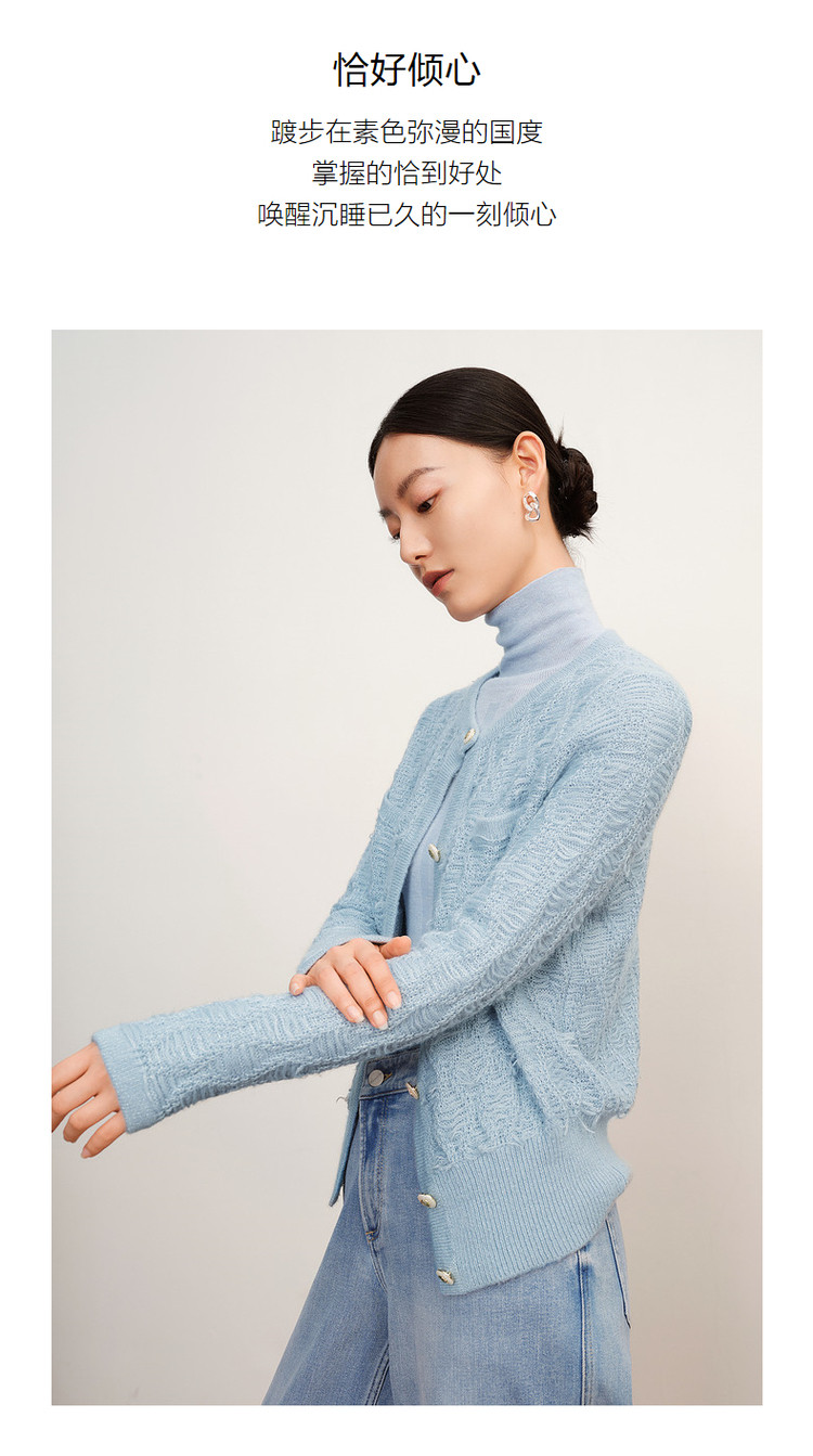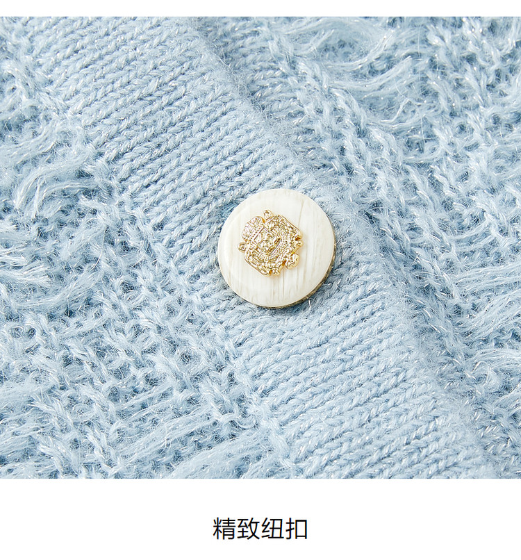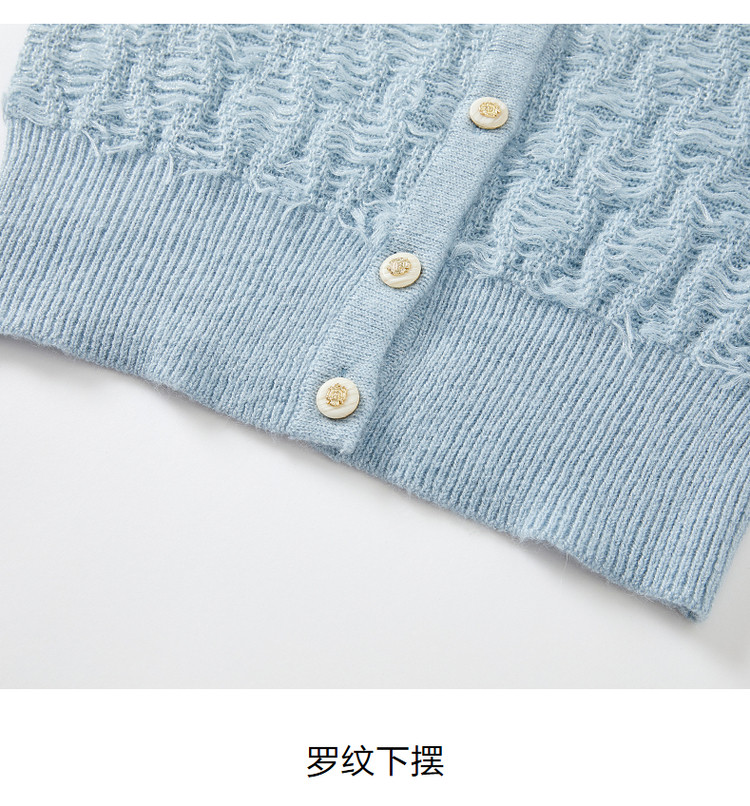 玖姿旗下安娜蔻系列优雅圆领水波纹针织开衫毛衫外套女冬季 671116