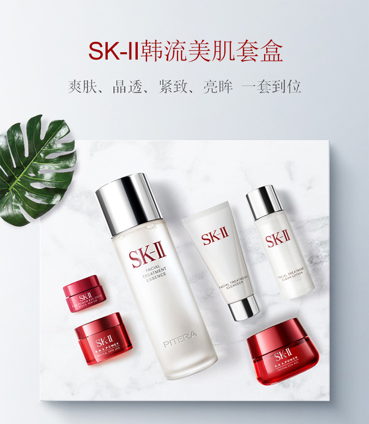 商品名称:SK-II 韩流美肌套盒 洁面霜20g+清盈露30ml+精华露230ml+精华霜15g+眼霜2.5g+精华霜80g