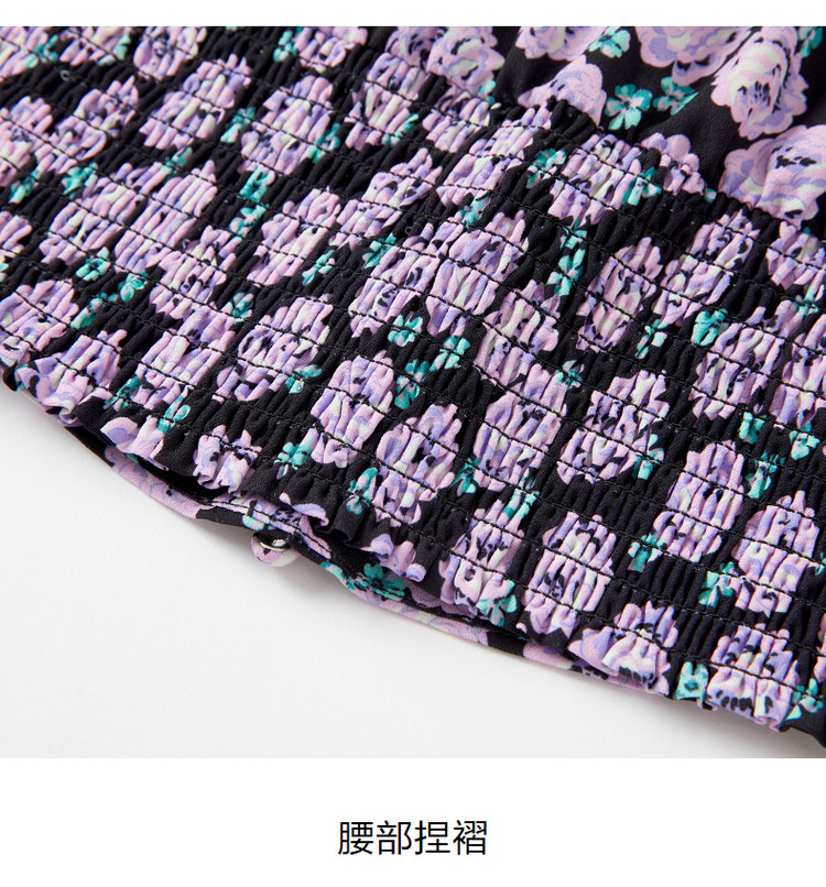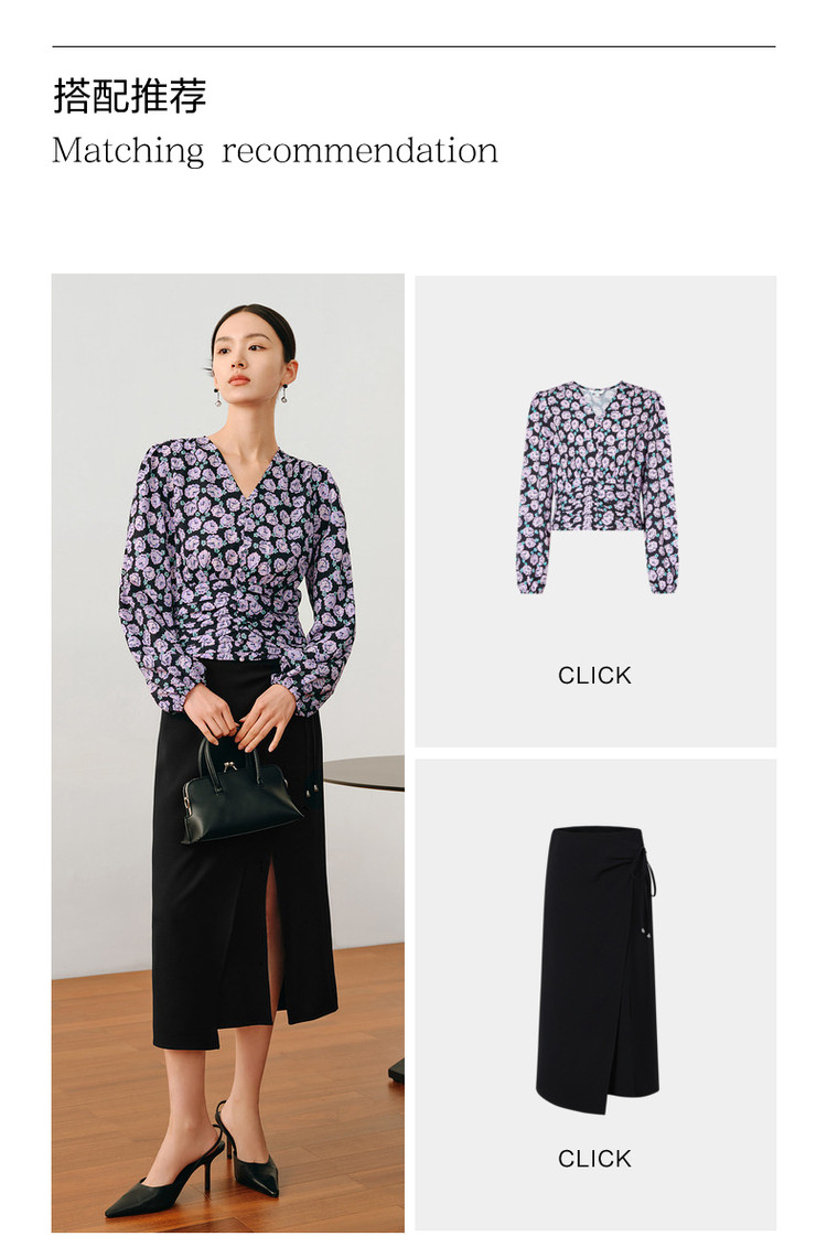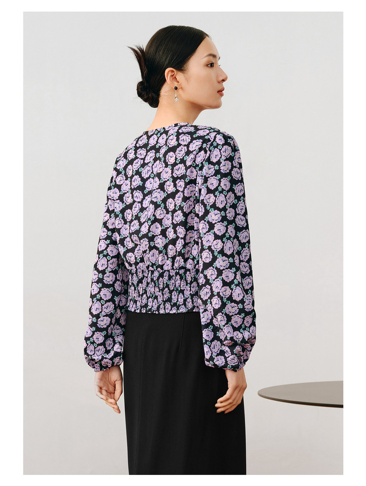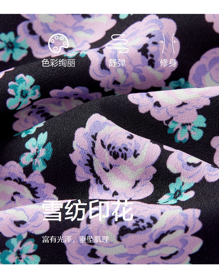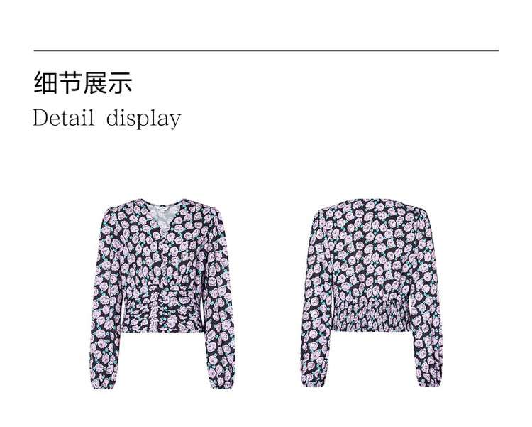 商品名称:玖姿旗下安娜蔻系列V领优雅法式复古X型雪纺印花长袖上衣女秋季 906892