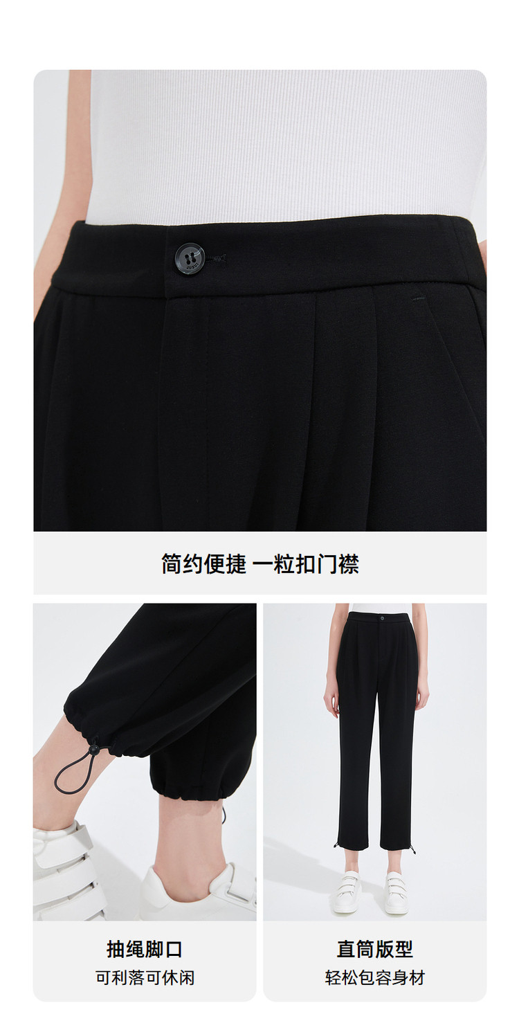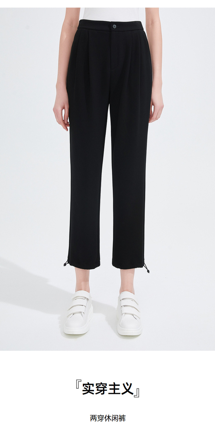 商品名称:玖姿夏季简约时尚抽绳脚口两穿女式休闲裤 083084