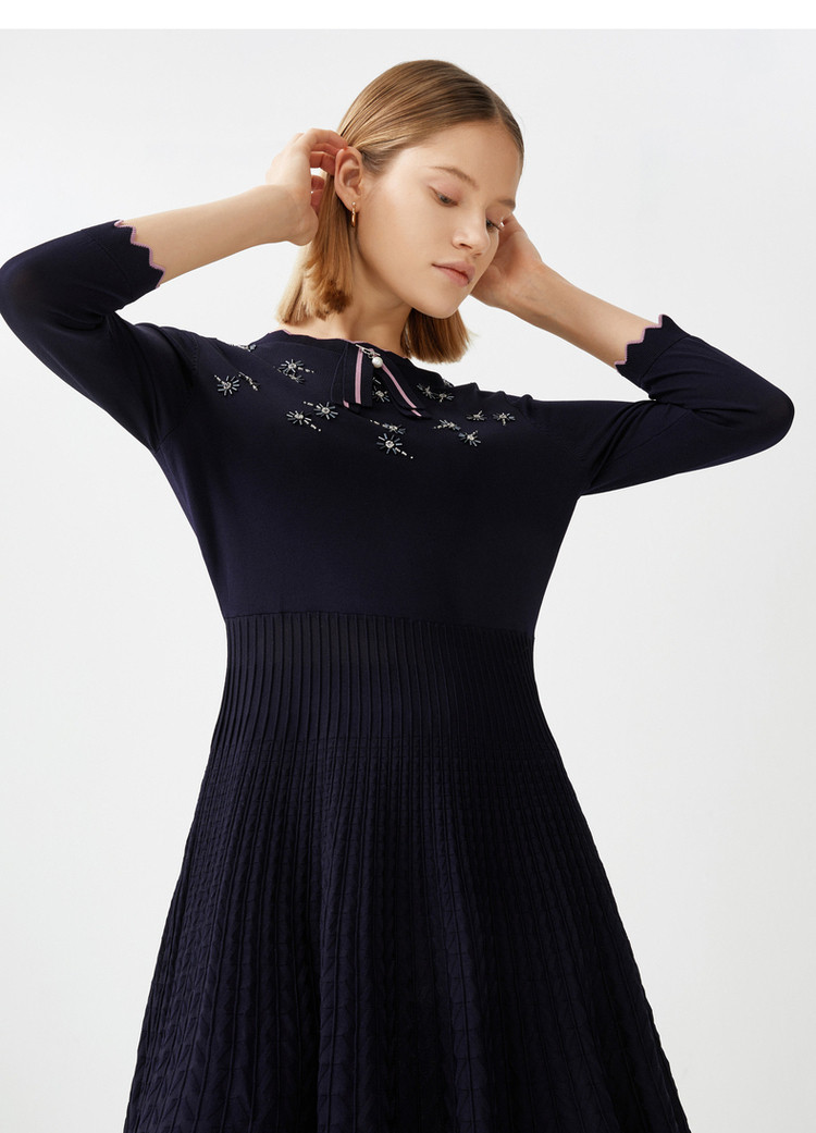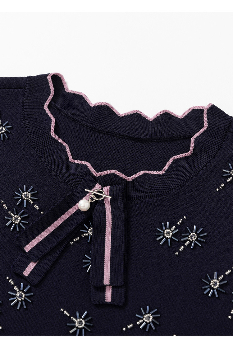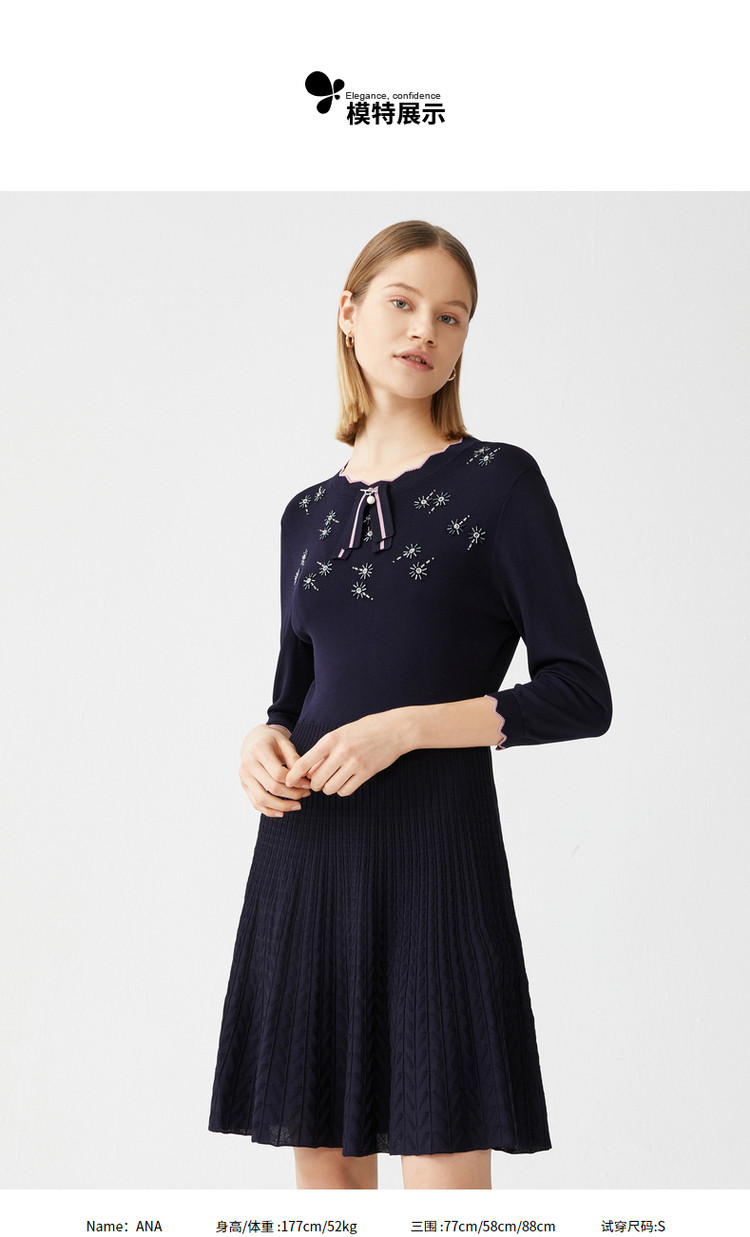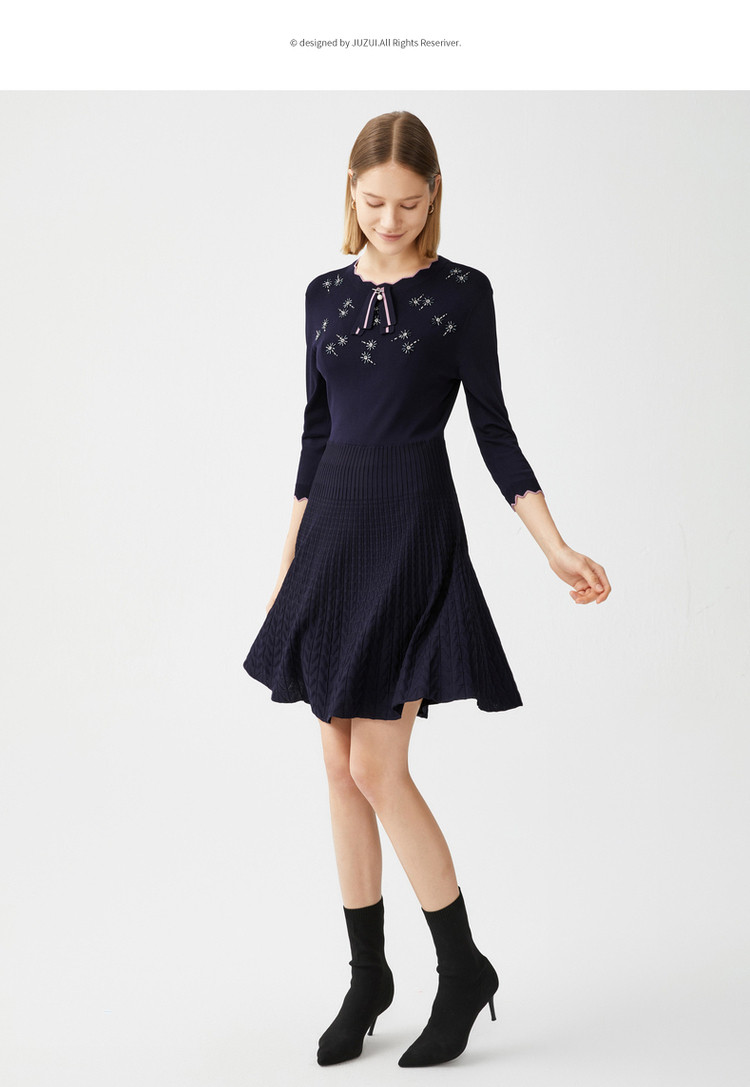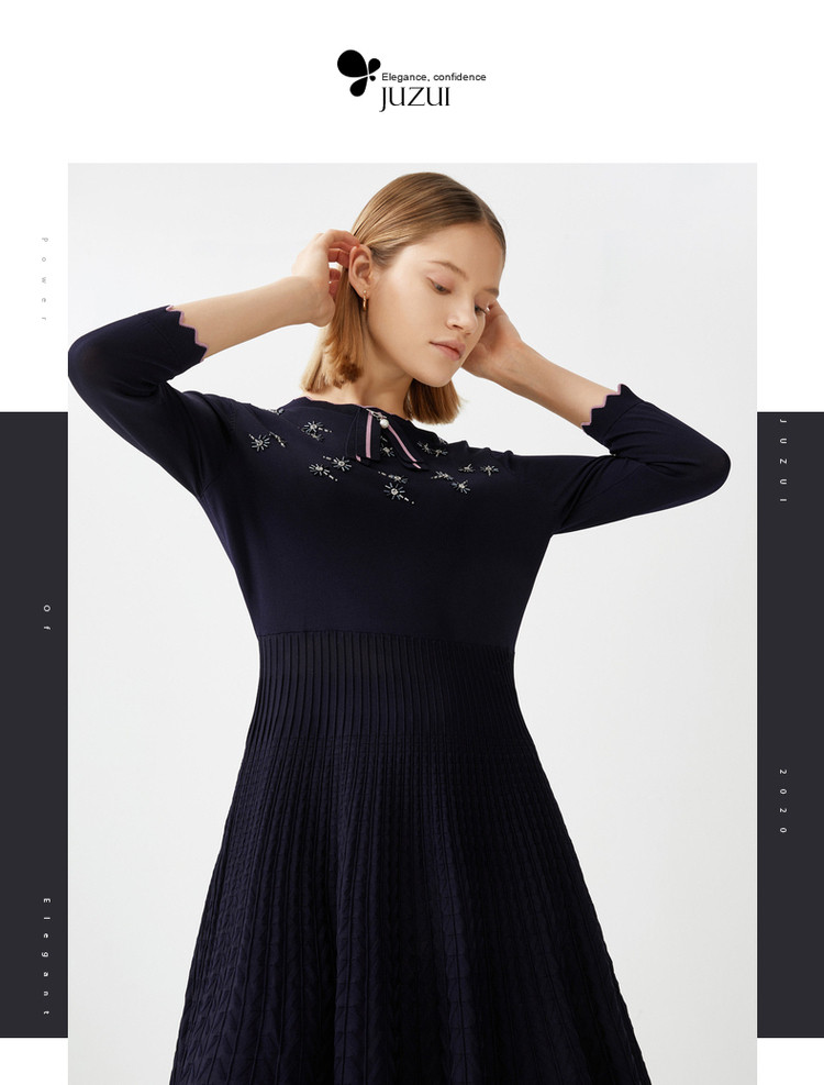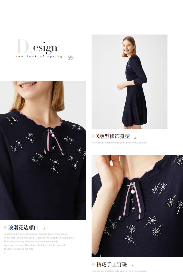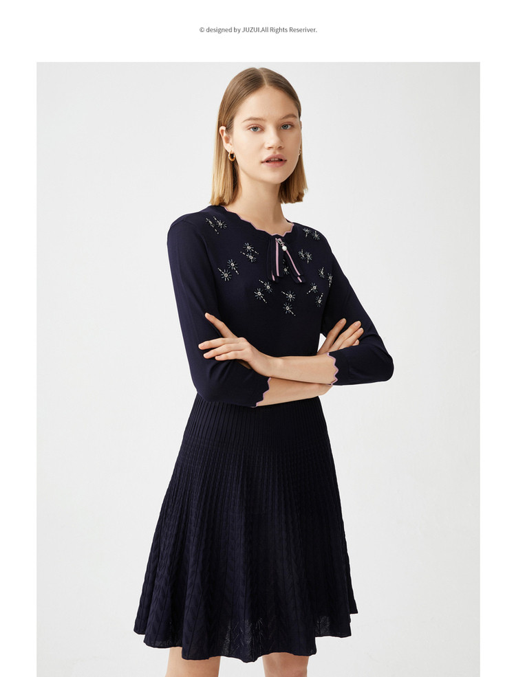 商品名称:玖姿商场同款春季花边领口修身中长女式针织衫 460044