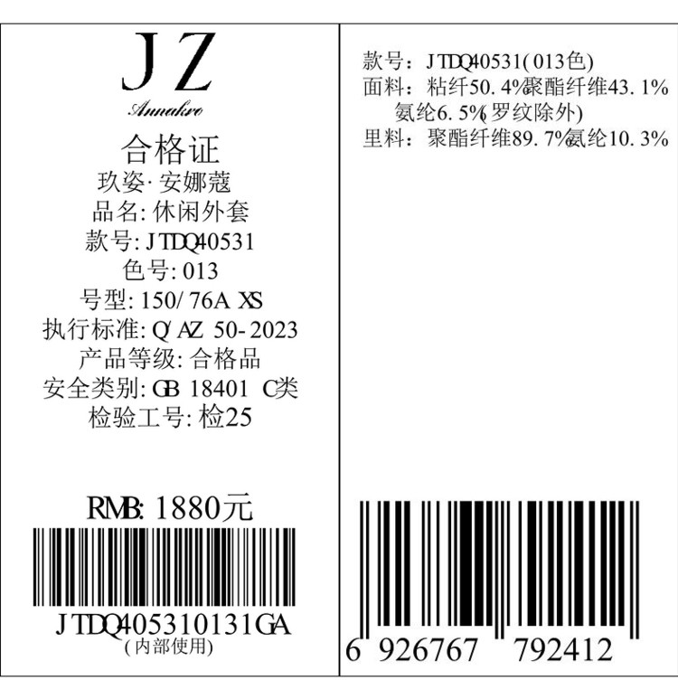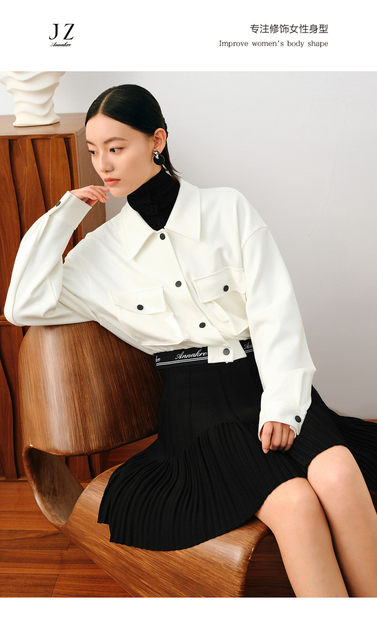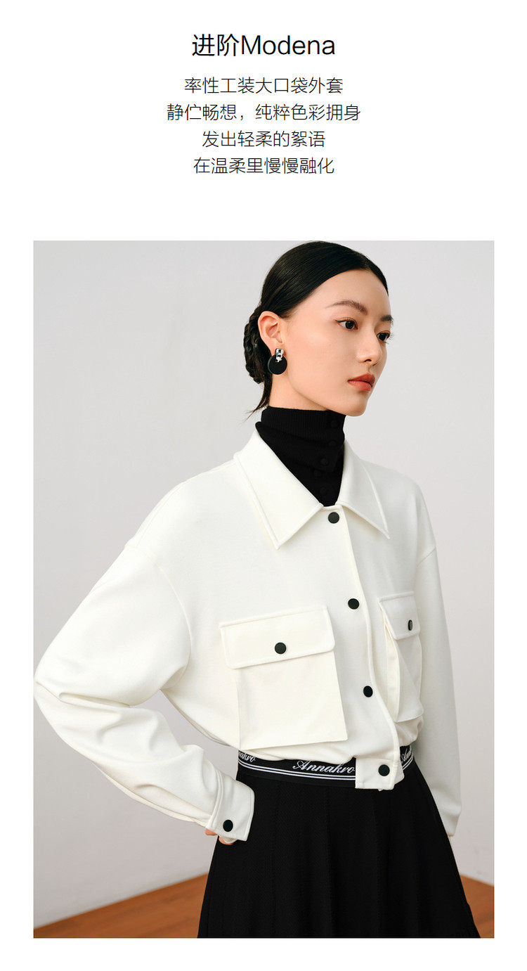 商品名称:玖姿旗下安娜蔻系列洋气日常休闲工装风立体口袋H型TR外套女秋季 866572