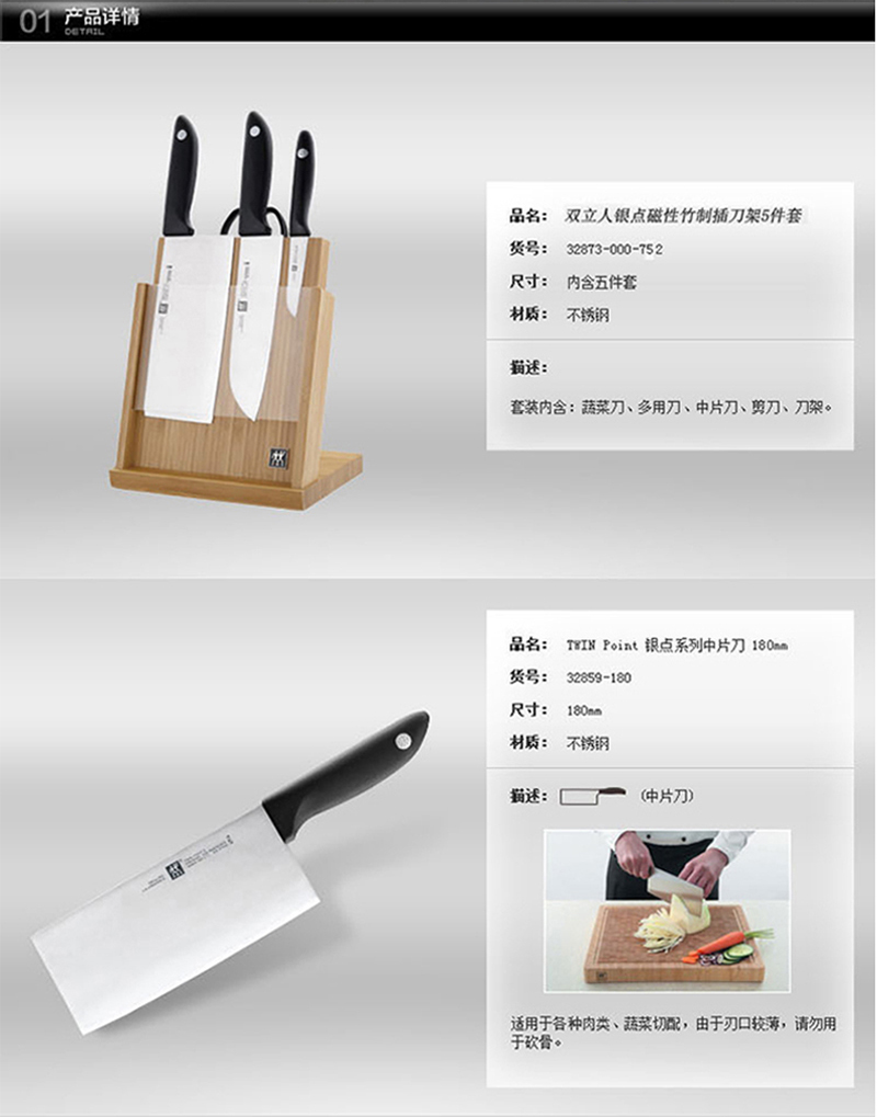 商品名称:双立人TWIN Point S磁性竹制插刀架五件套 32873-000-752