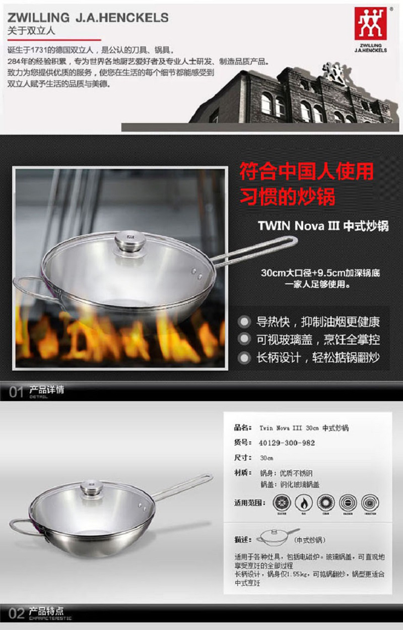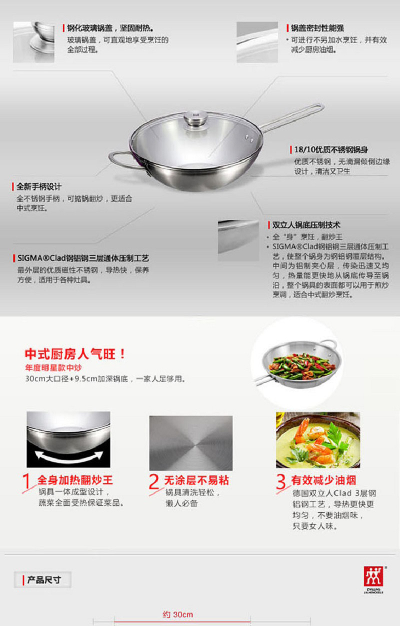 商品名称:双立人TWIN Nova Ⅲ 30cm中式炒锅 40129-300-982