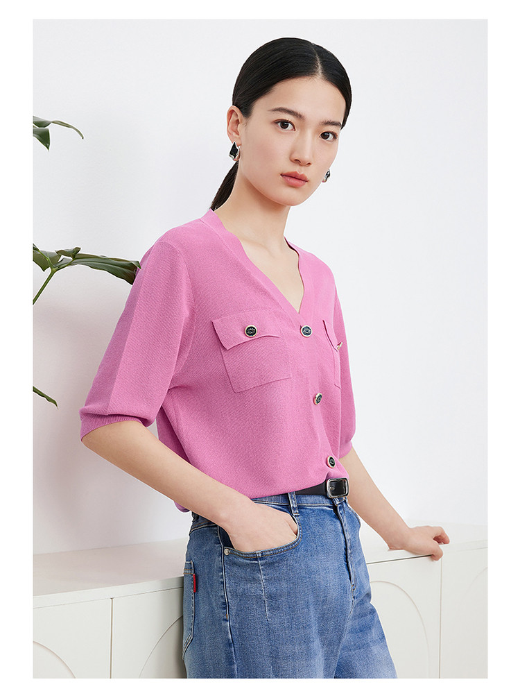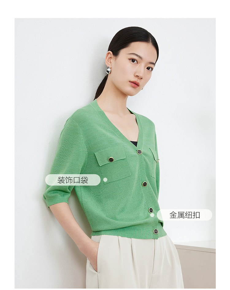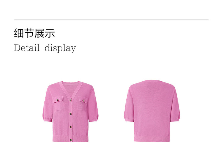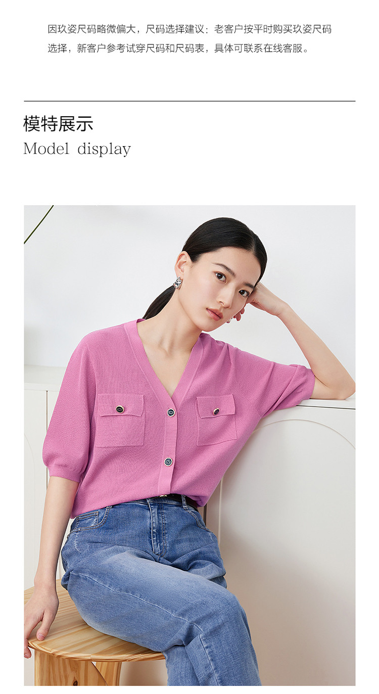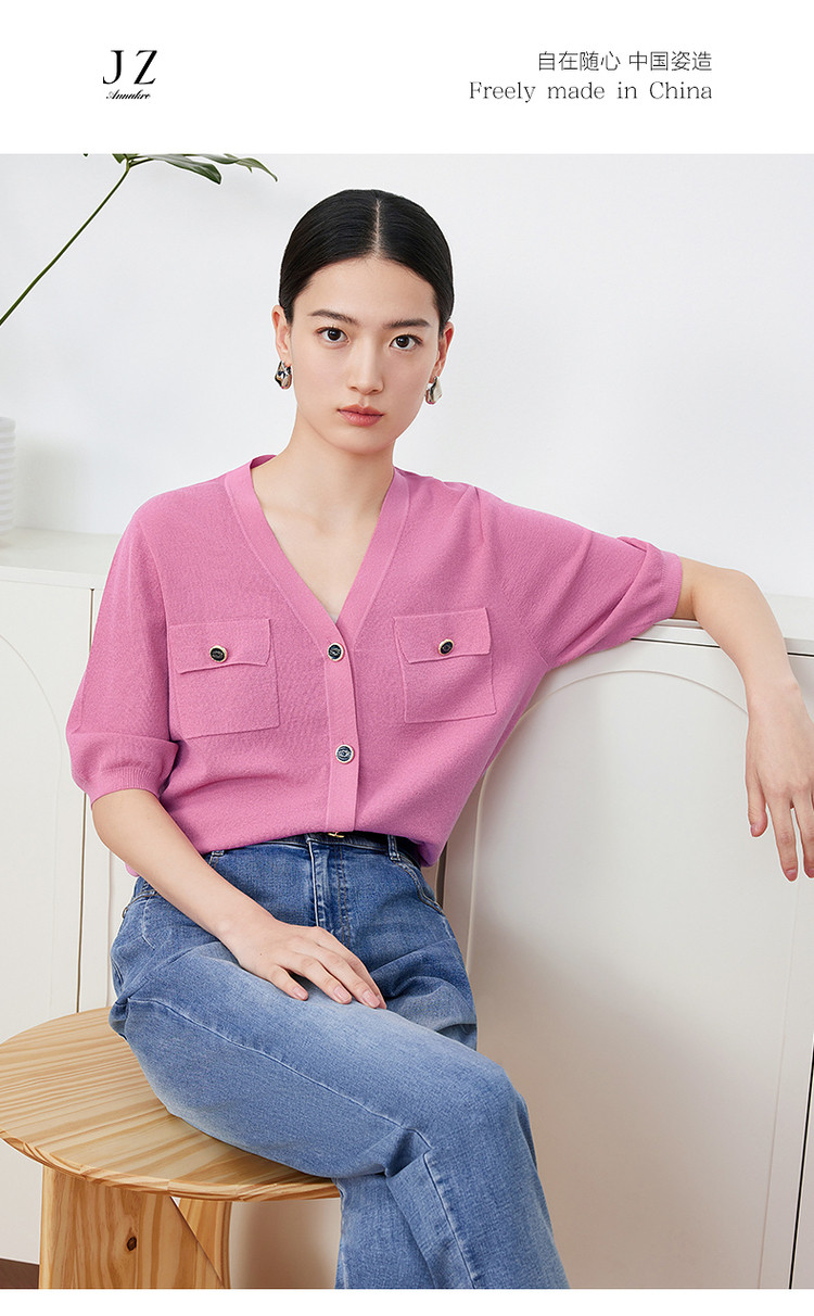 商品名称:玖姿旗下安娜蔻系列短袖针织衫女装夏季女人味V领开衫洋气上衣 850060