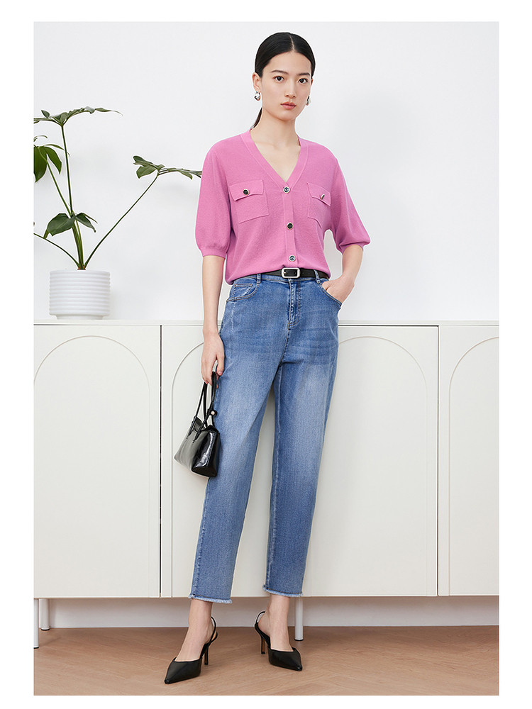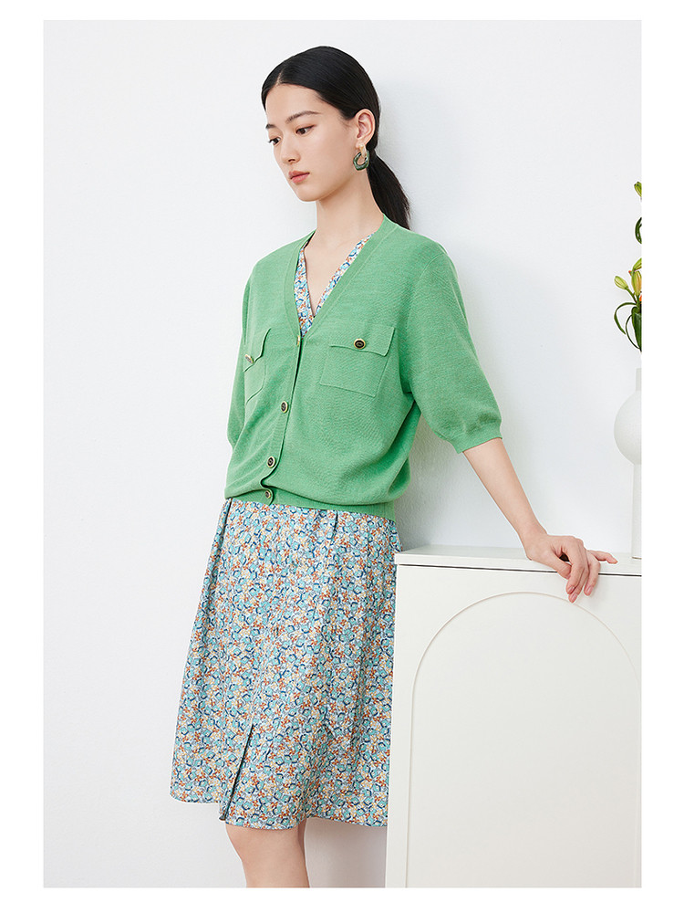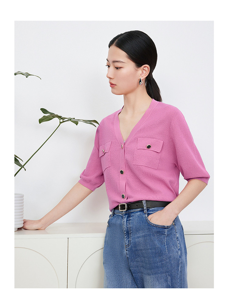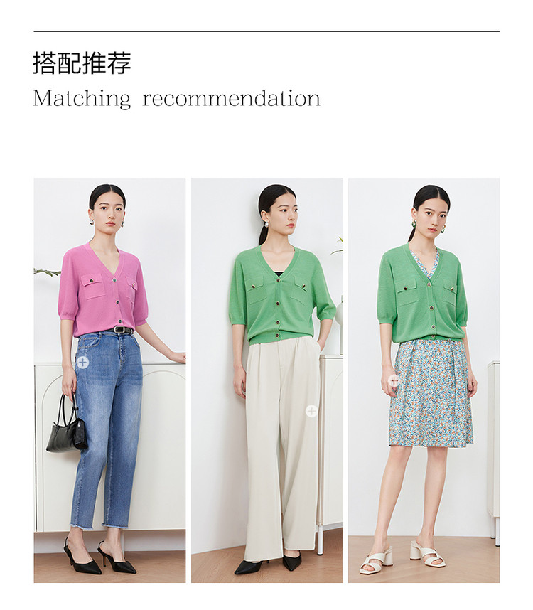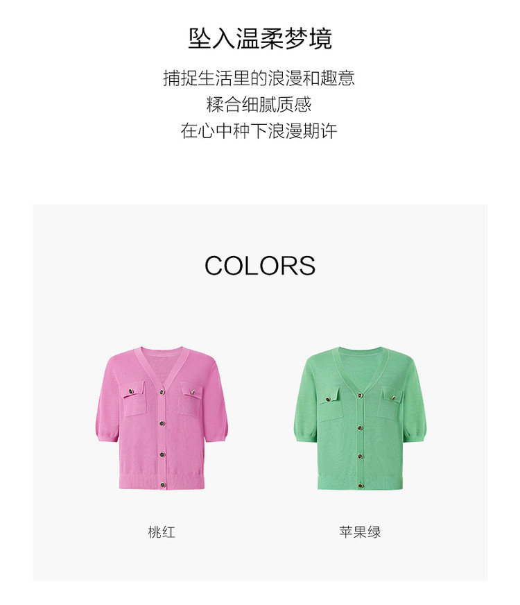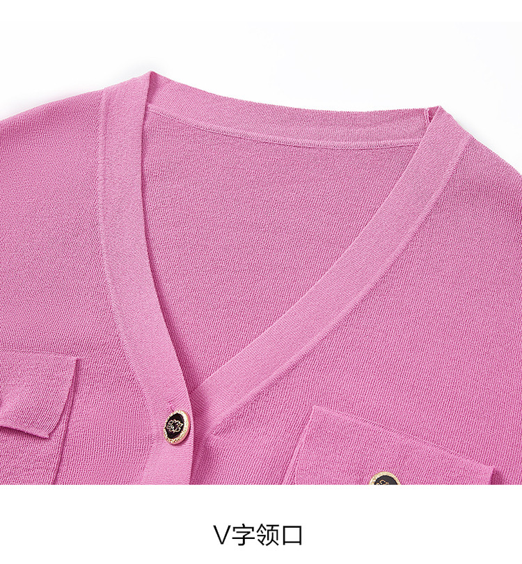 商品名称:玖姿旗下安娜蔻系列短袖针织衫女装夏季女人味V领开衫洋气上衣 850060