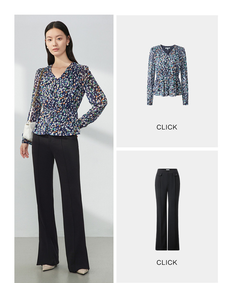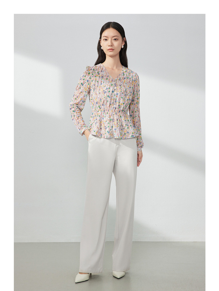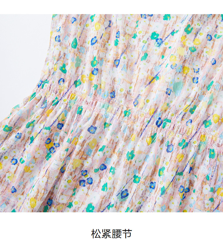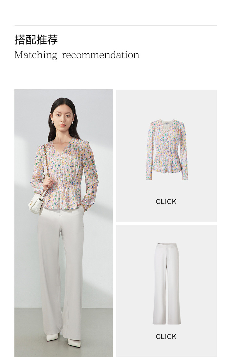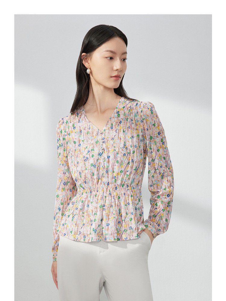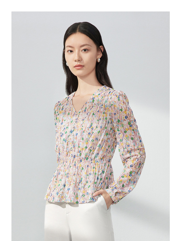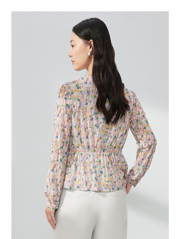 商品名称:JZ玖姿度假风碎花女装春季法式V领网纱套头衫 082956