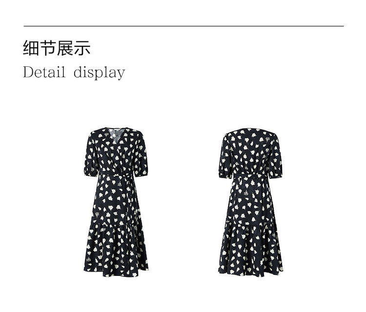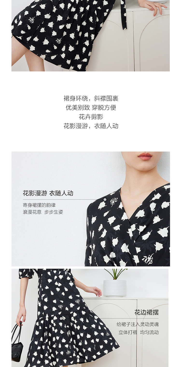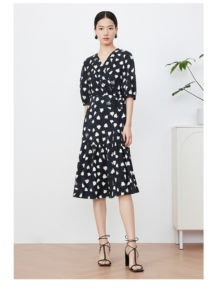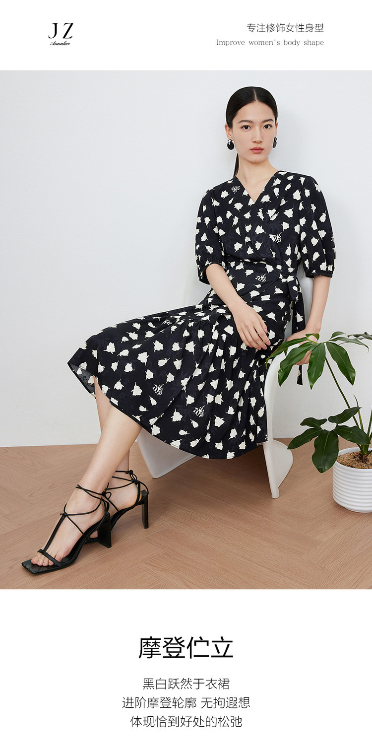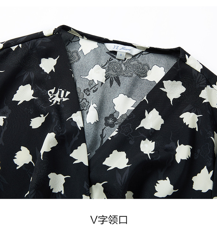 商品名称:玖姿旗下安娜蔻系列提花连衣裙女装夏季优雅V领抽褶连衣裙 026188