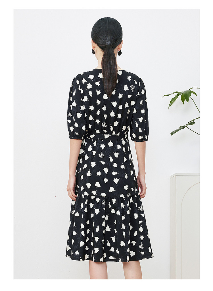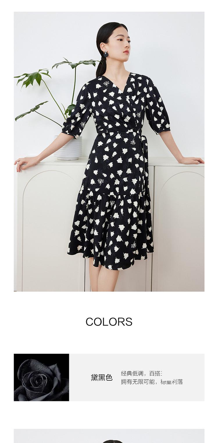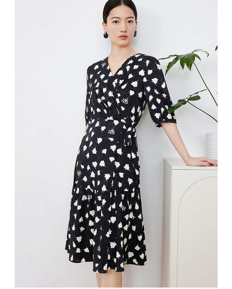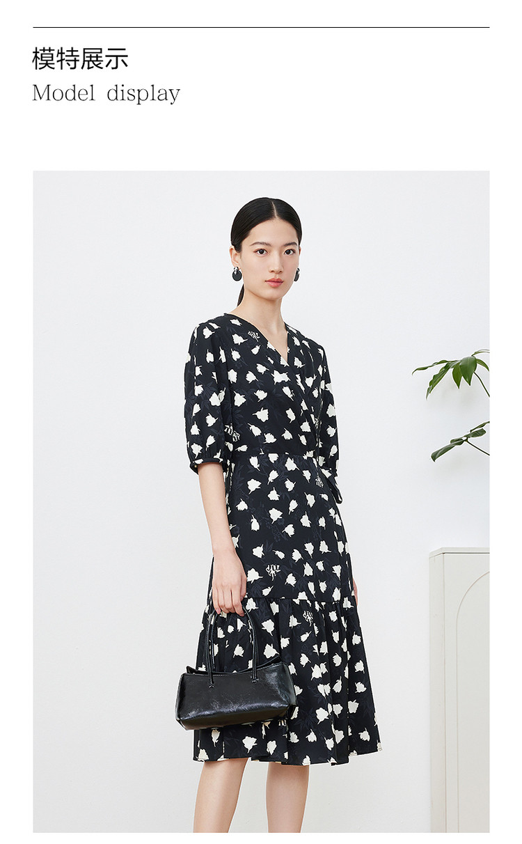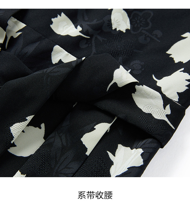 商品名称:玖姿旗下安娜蔻系列提花连衣裙女装夏季优雅V领抽褶连衣裙 026188