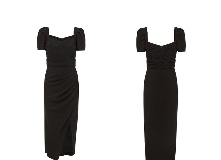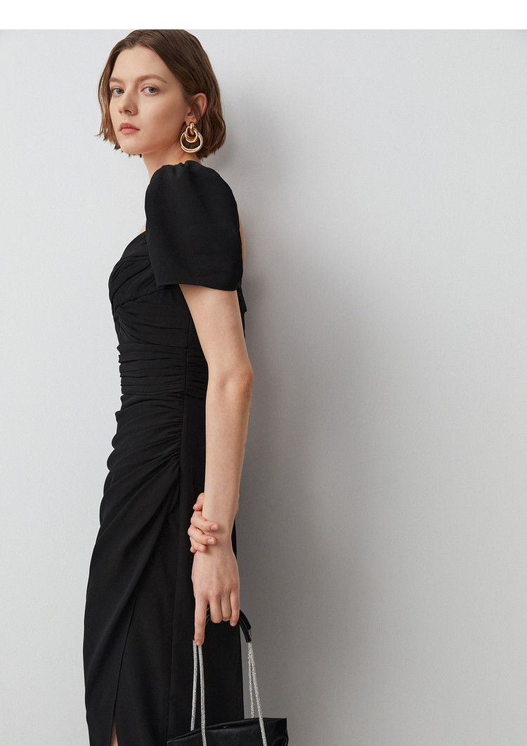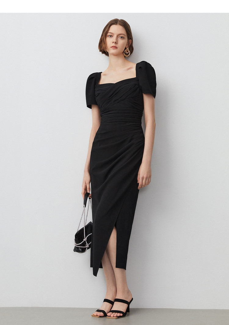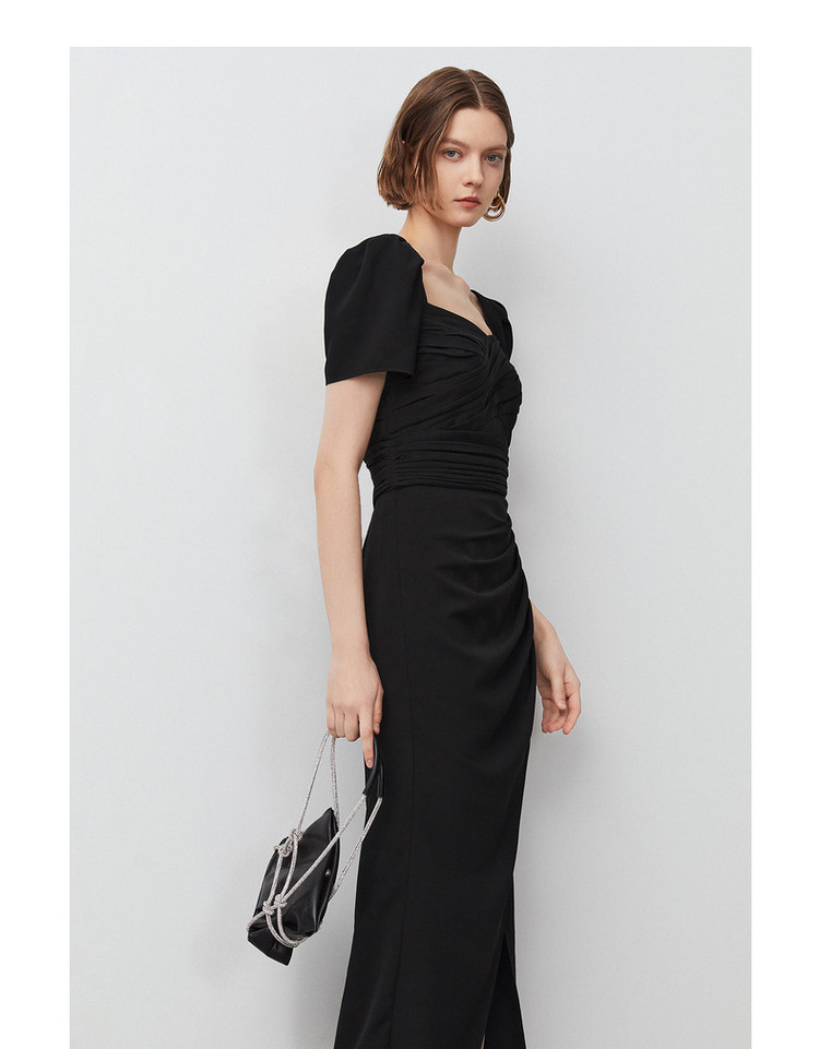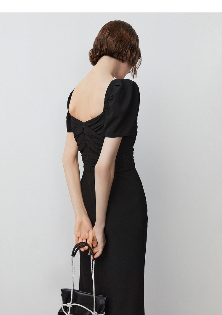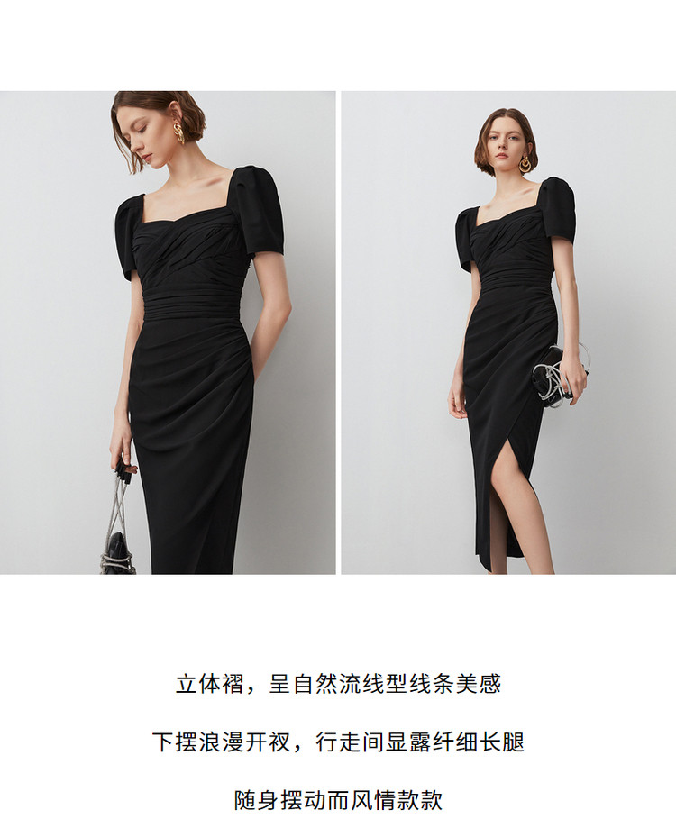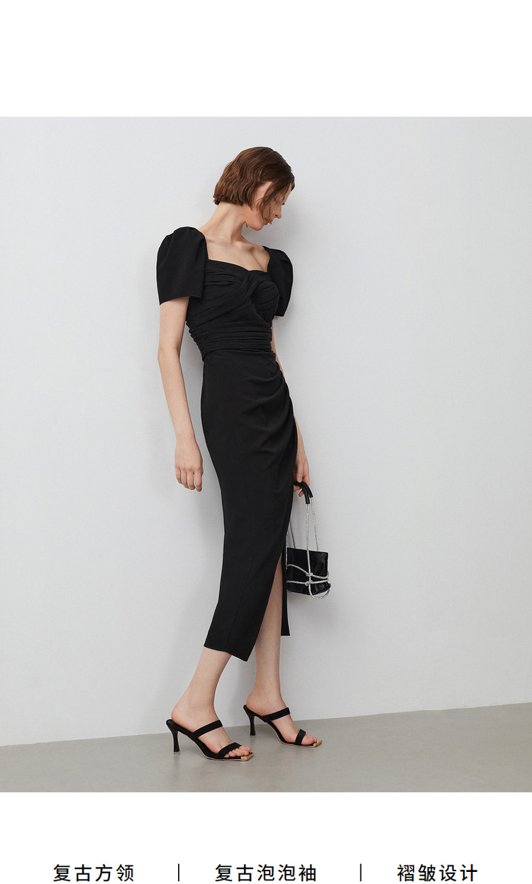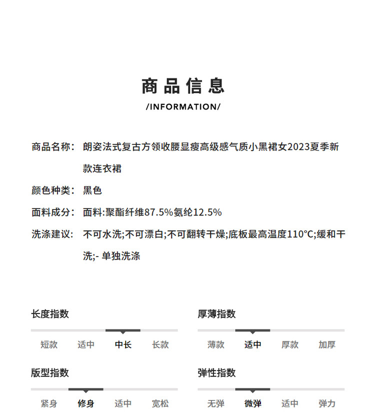 商品名称:法式复古方领收腰显瘦高级感气质小黑裙夏季短袖连衣裙朗姿集团 240409