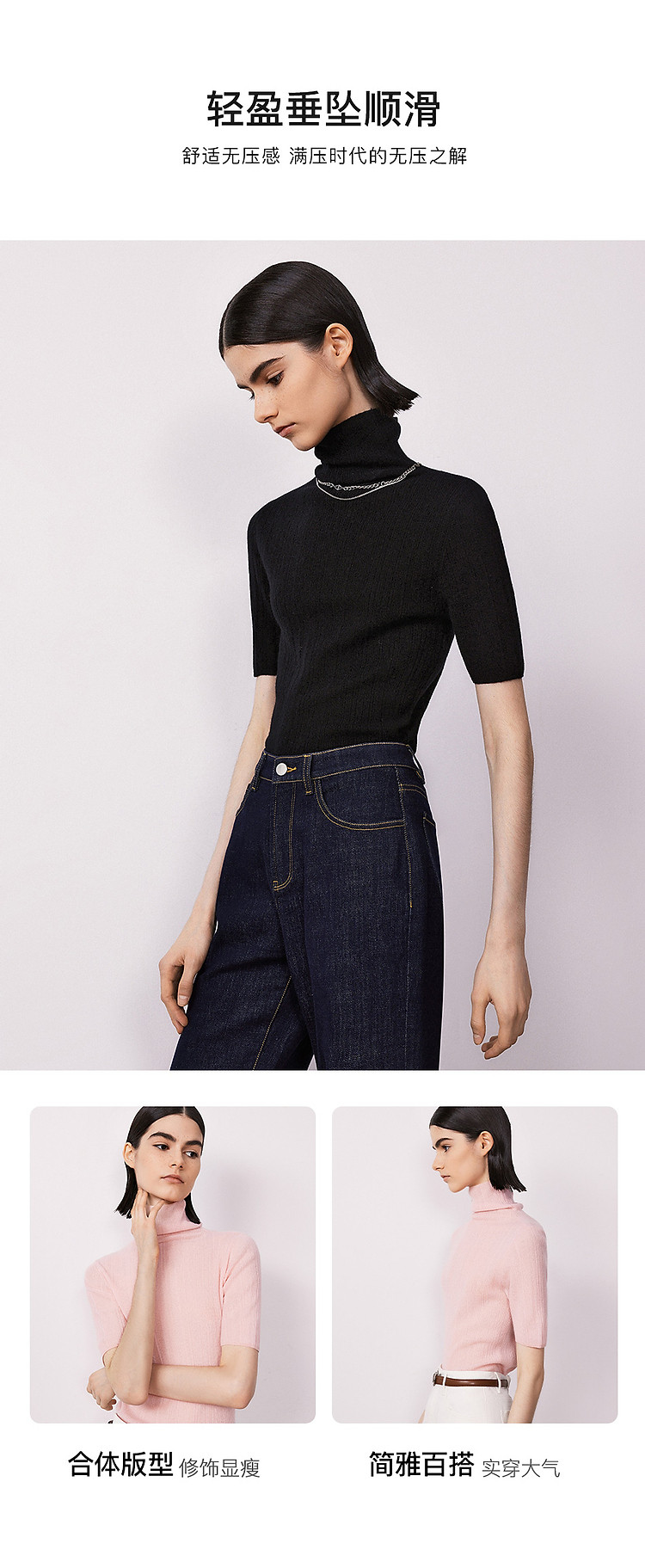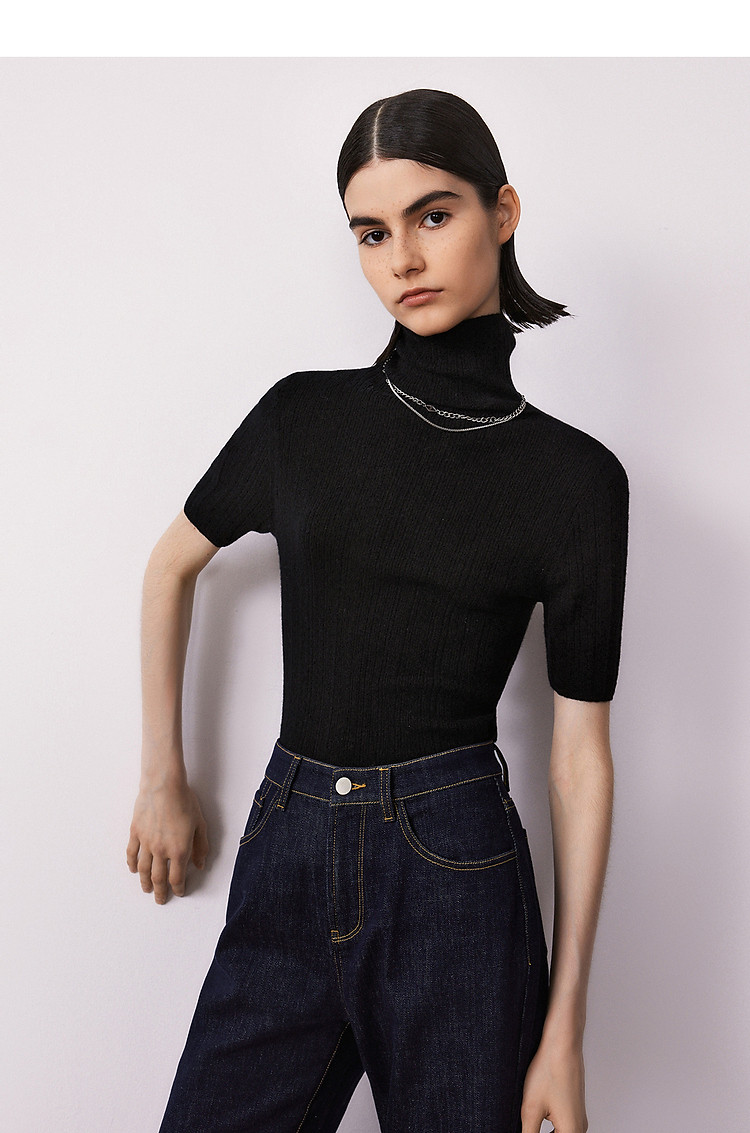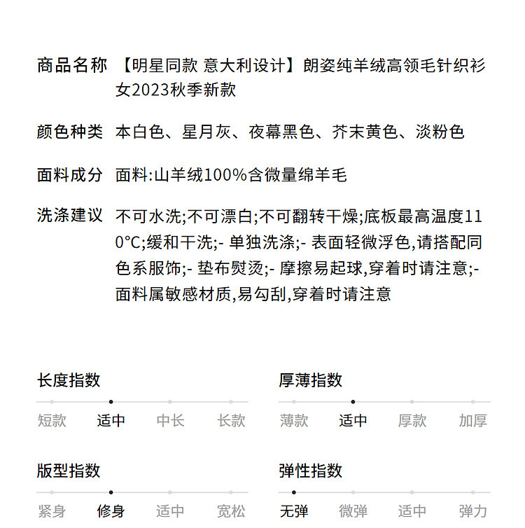 商品名称:集团旗下欧洲EiLEEN ELITEE款纯羊绒高领毛针织衫 701977