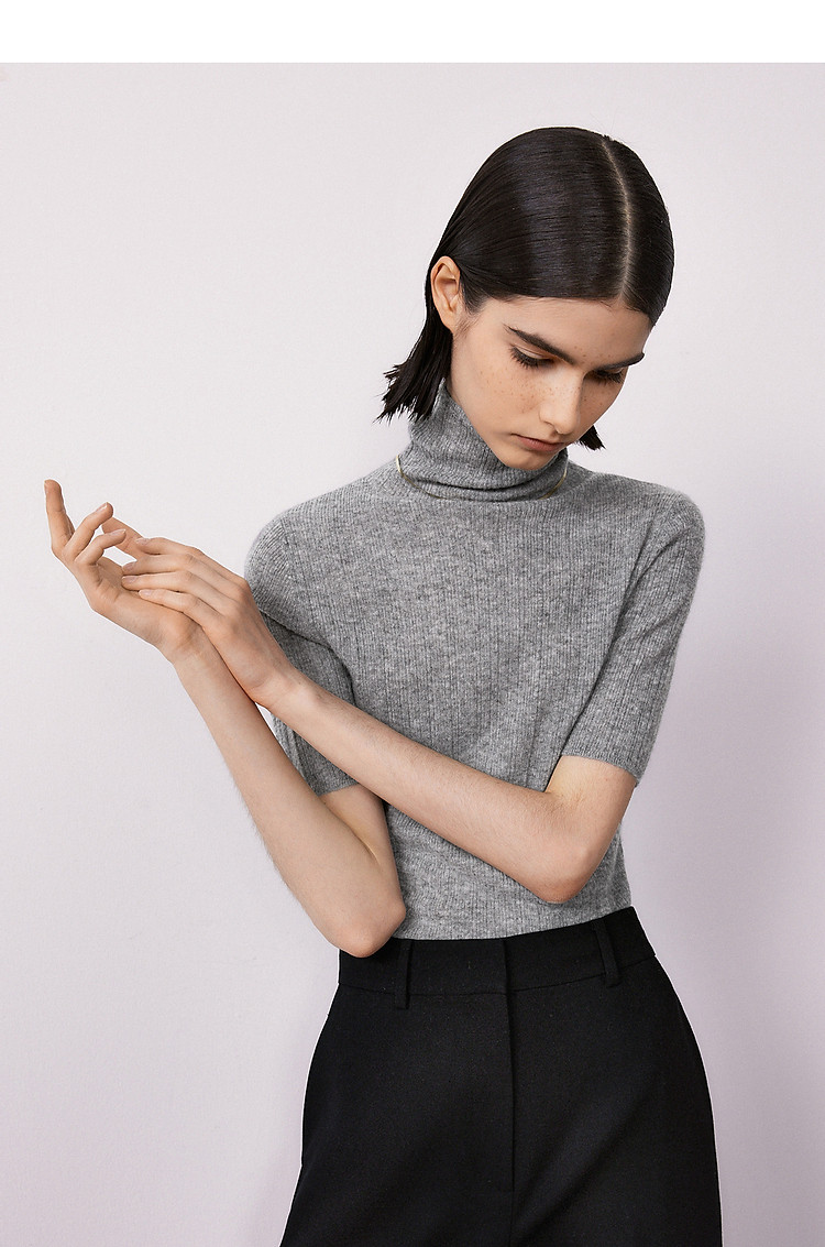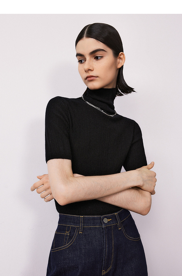 集团旗下欧洲EiLEEN ELITEE款纯羊绒高领毛针织衫 701977