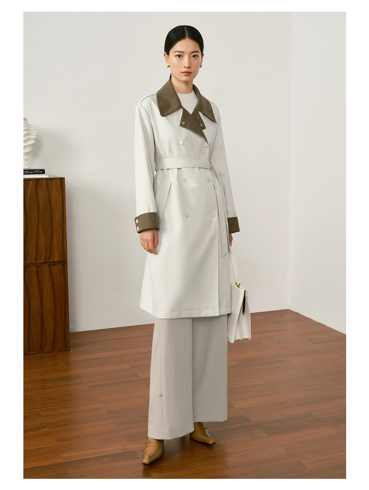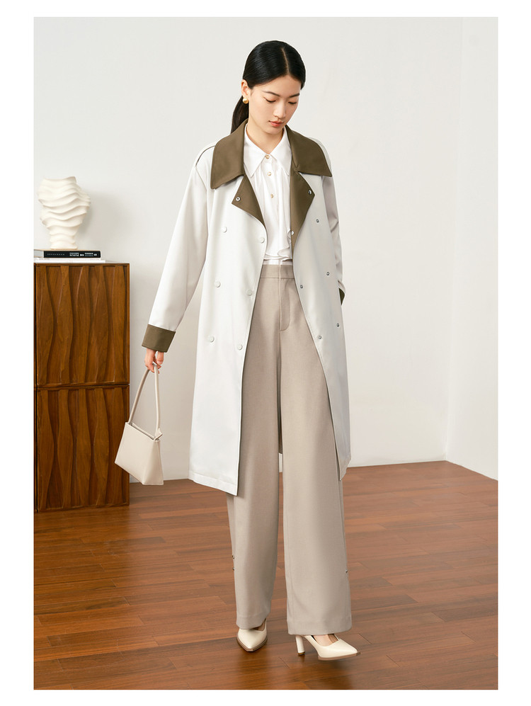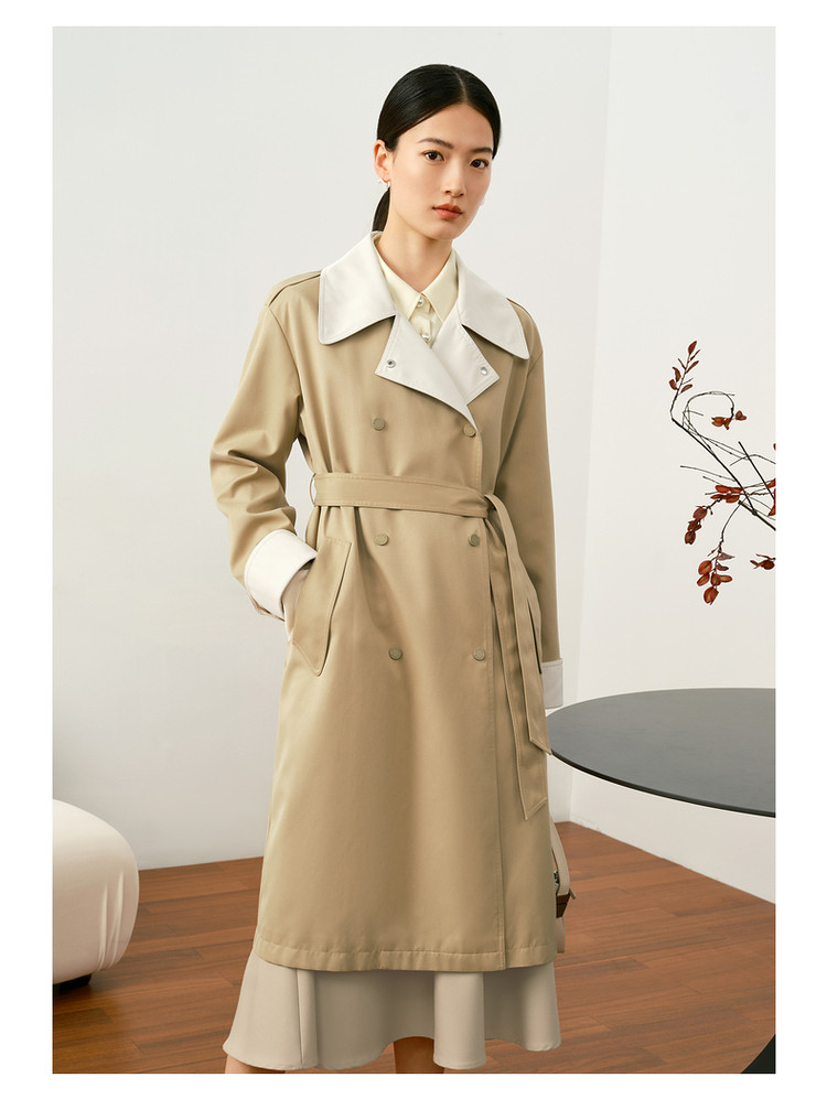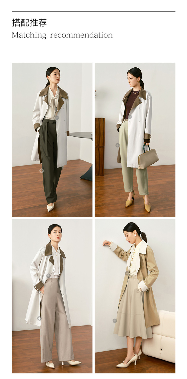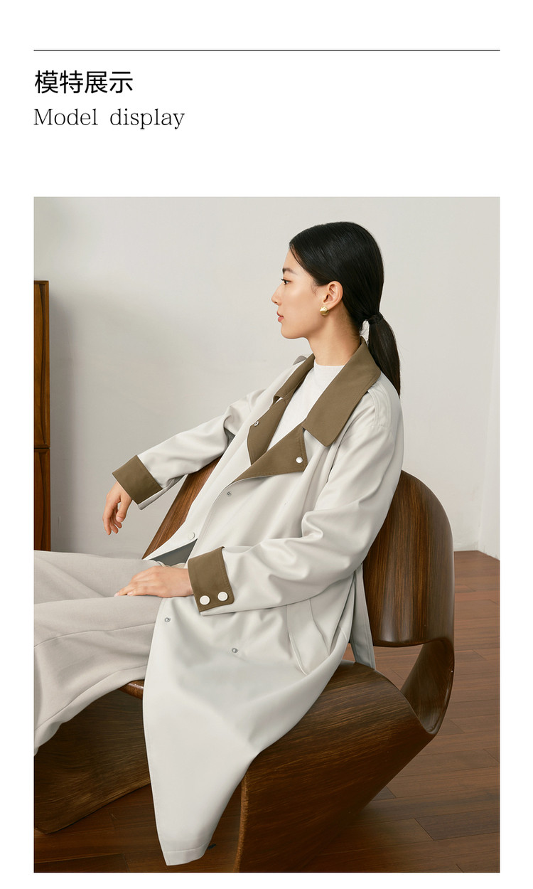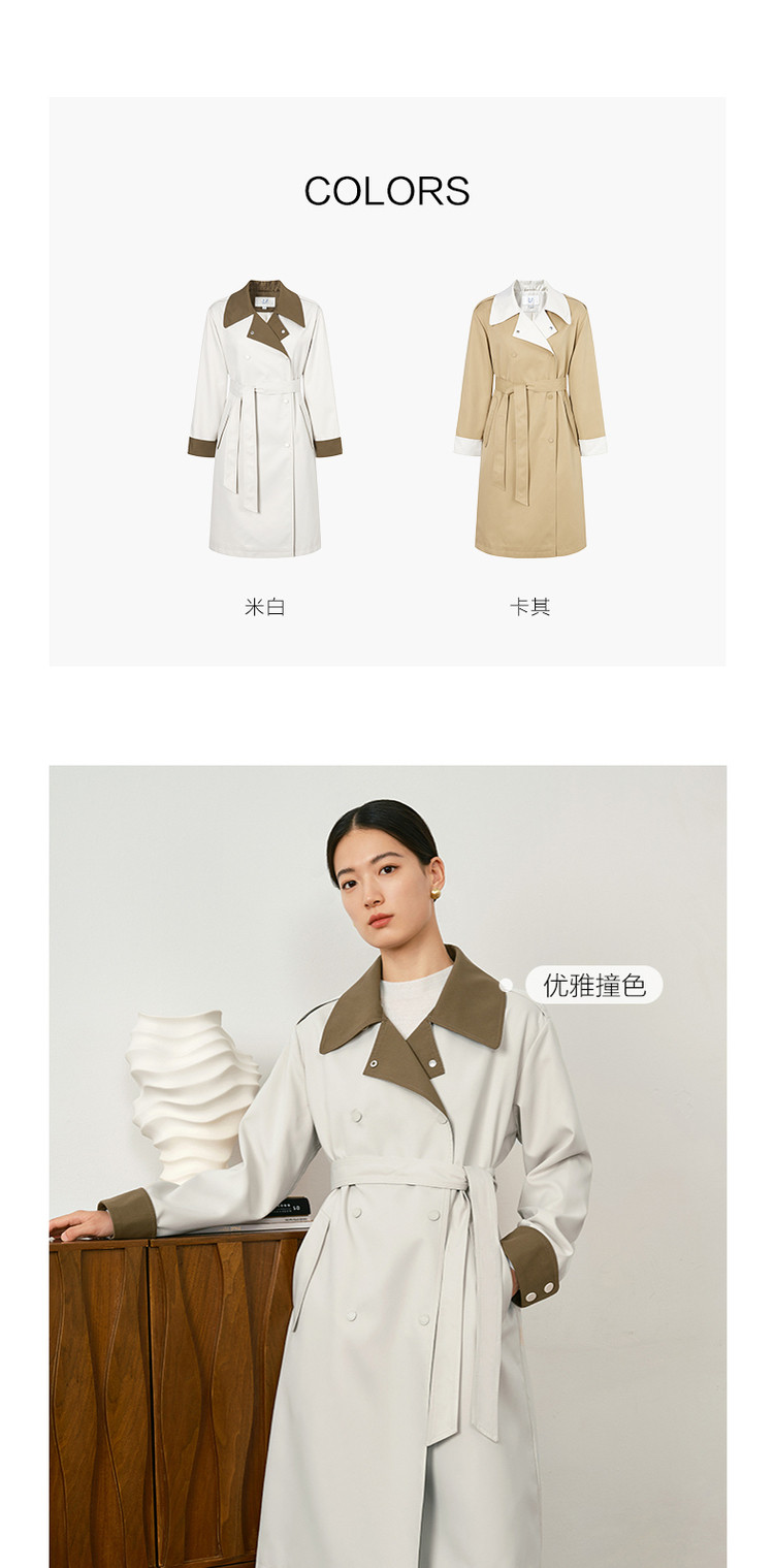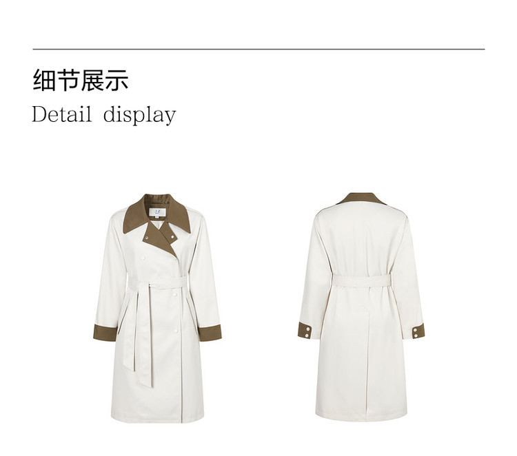 商品名称:玖姿旗下安娜蔻系列商务通勤OL撞色H型设计感长款风衣外套女秋季 253132