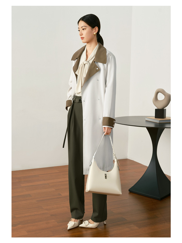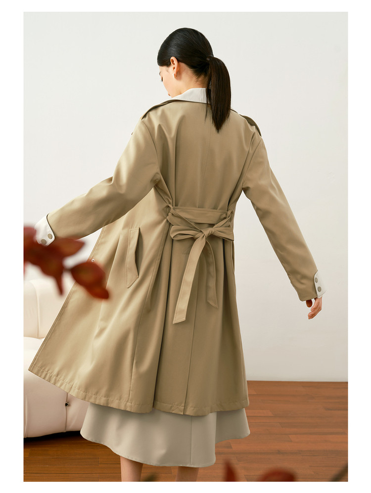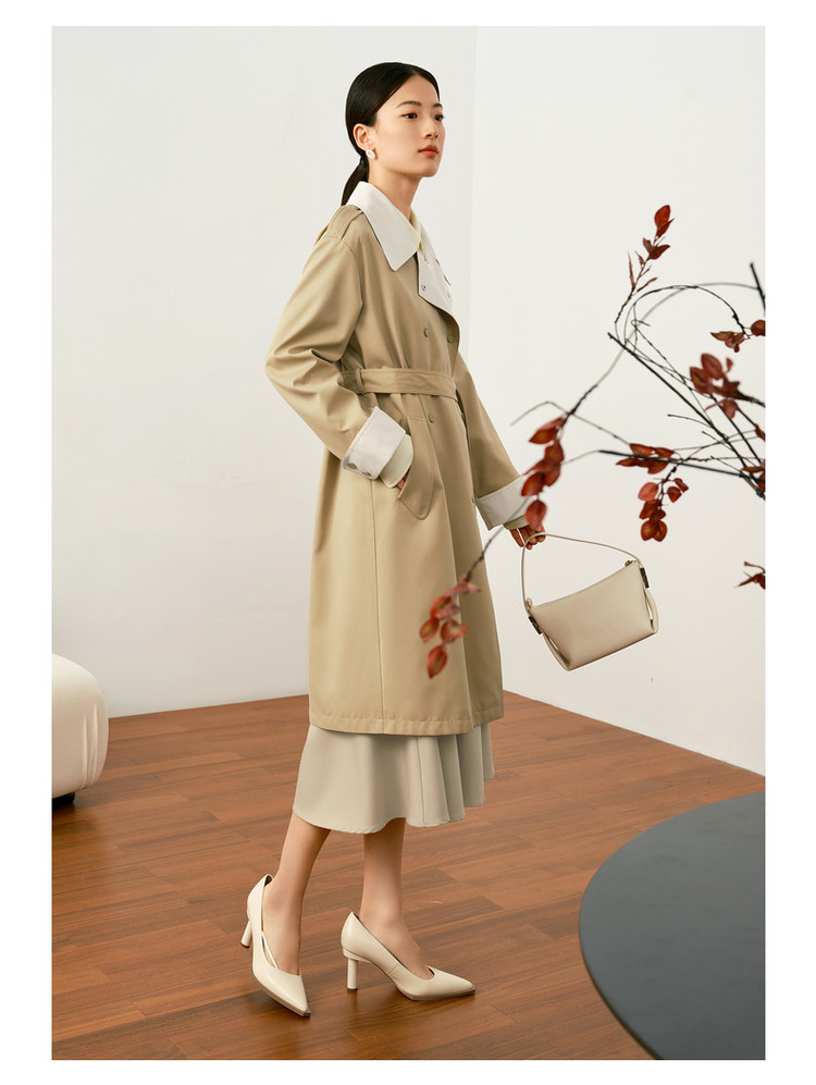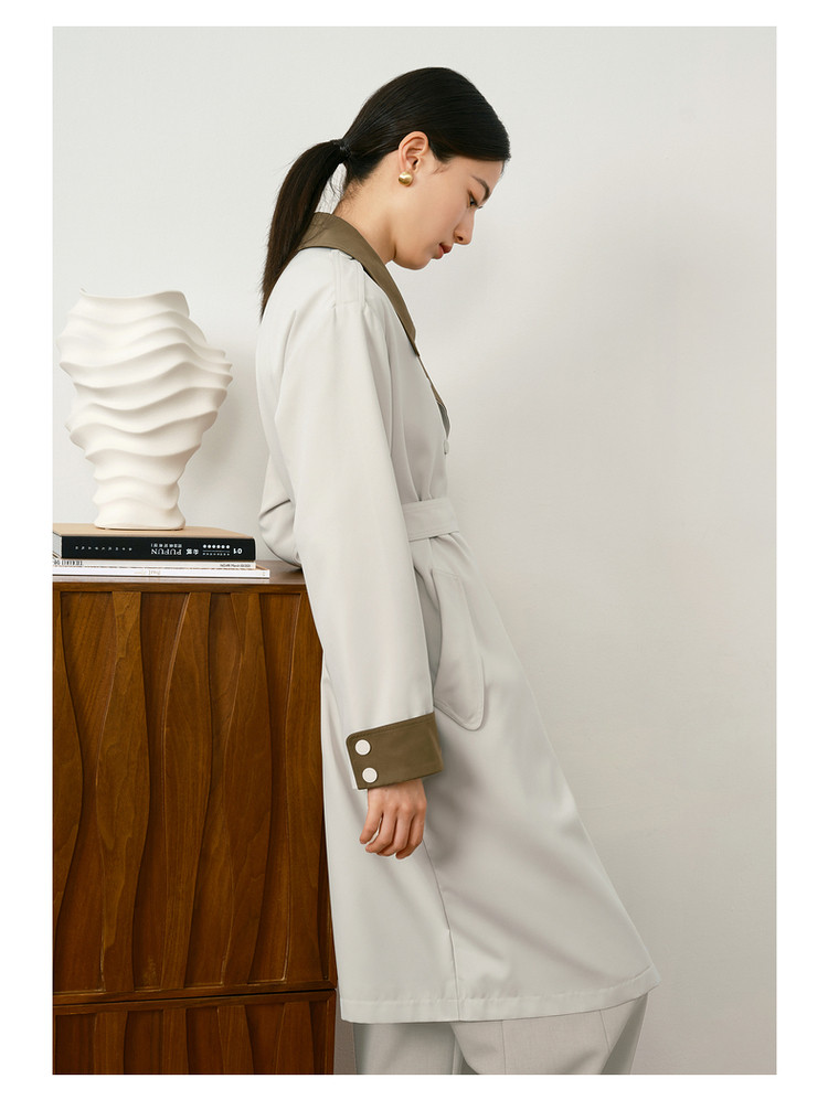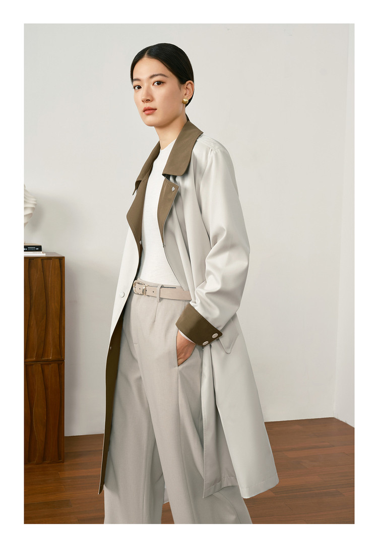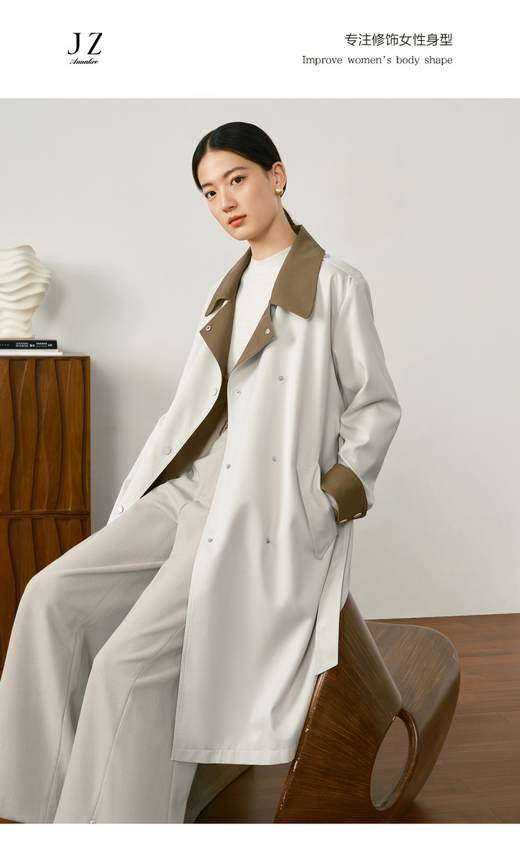 玖姿旗下安娜蔻系列商务通勤OL撞色H型设计感长款风衣外套女秋季 253132