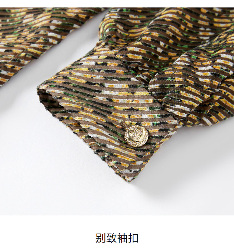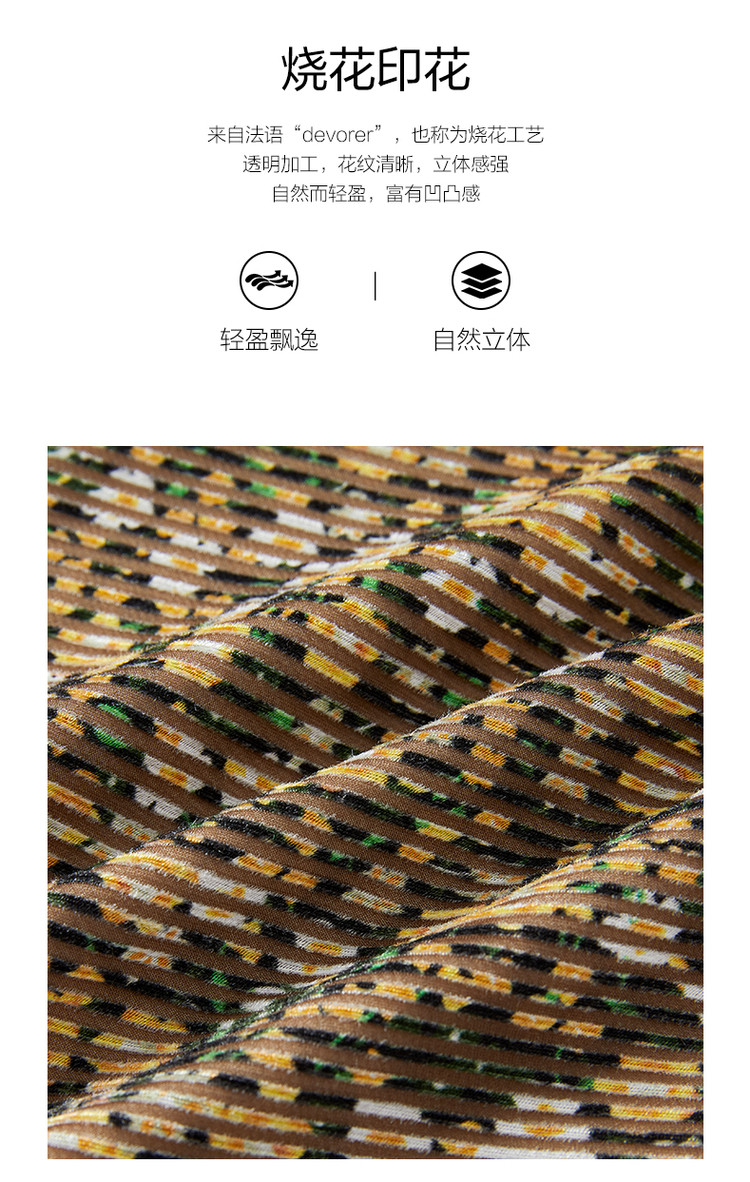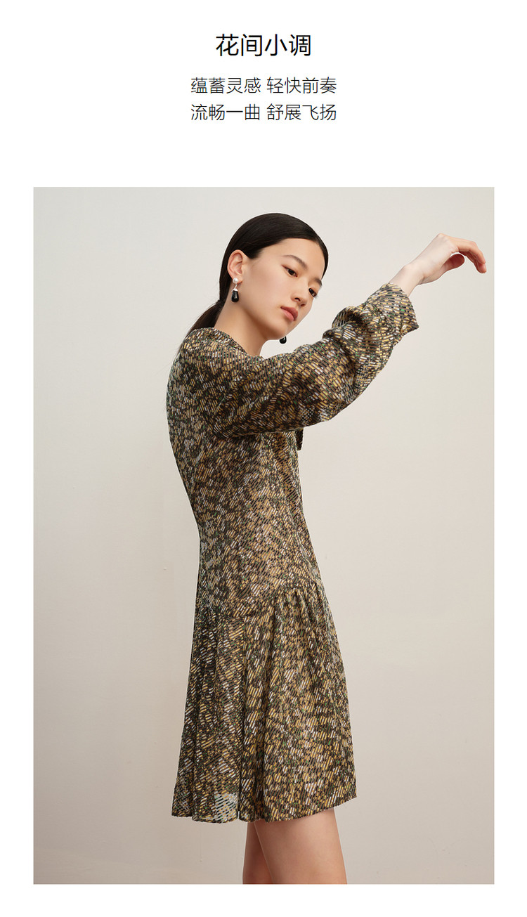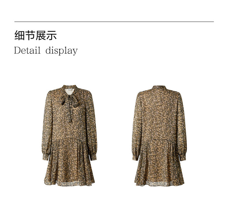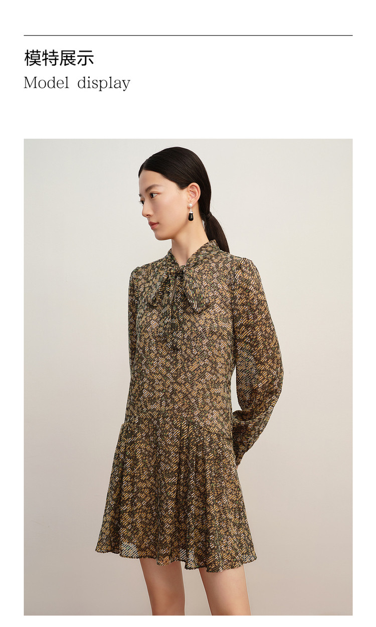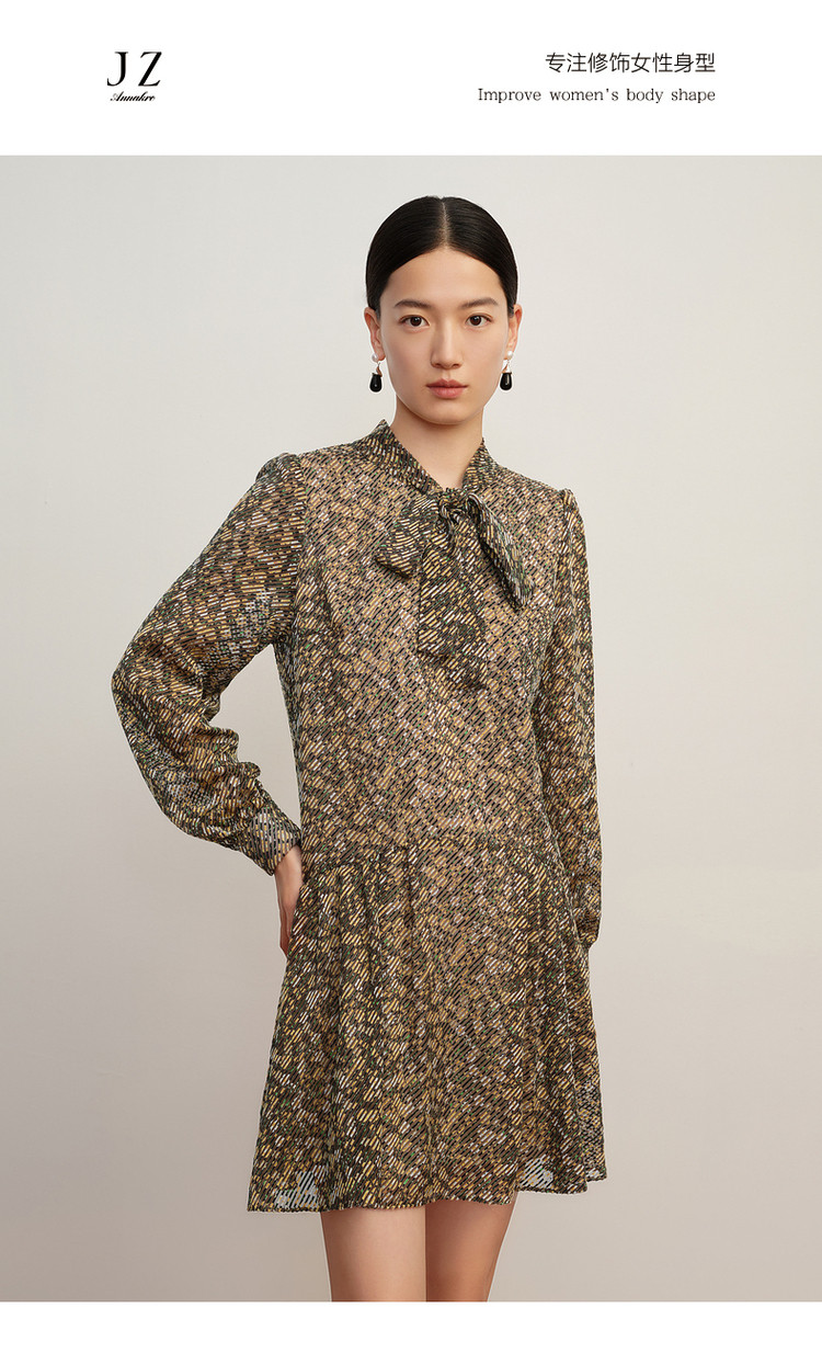 商品名称:玖姿旗下安娜蔻系列宽松休闲碎花飘带领蝴蝶结烧花连衣裙女秋 265996