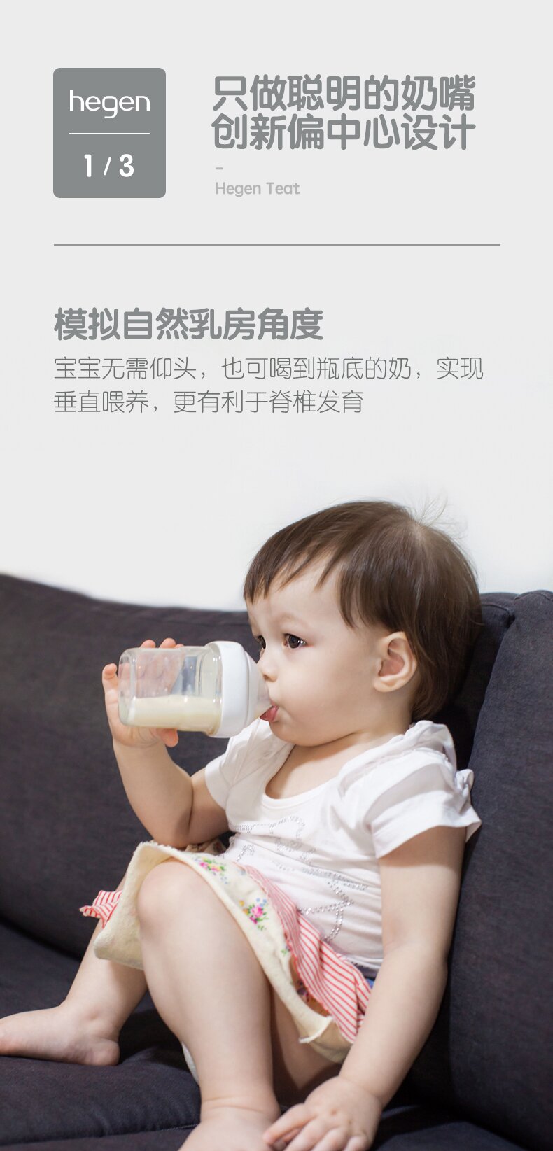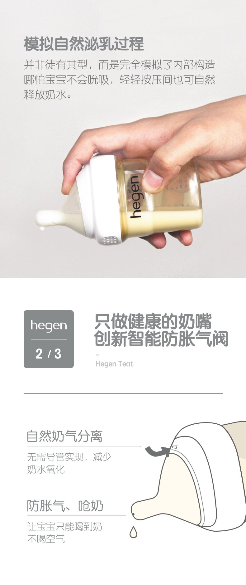 商品名称:hegen 宽口径防呛防胀气智能硅胶奶嘴