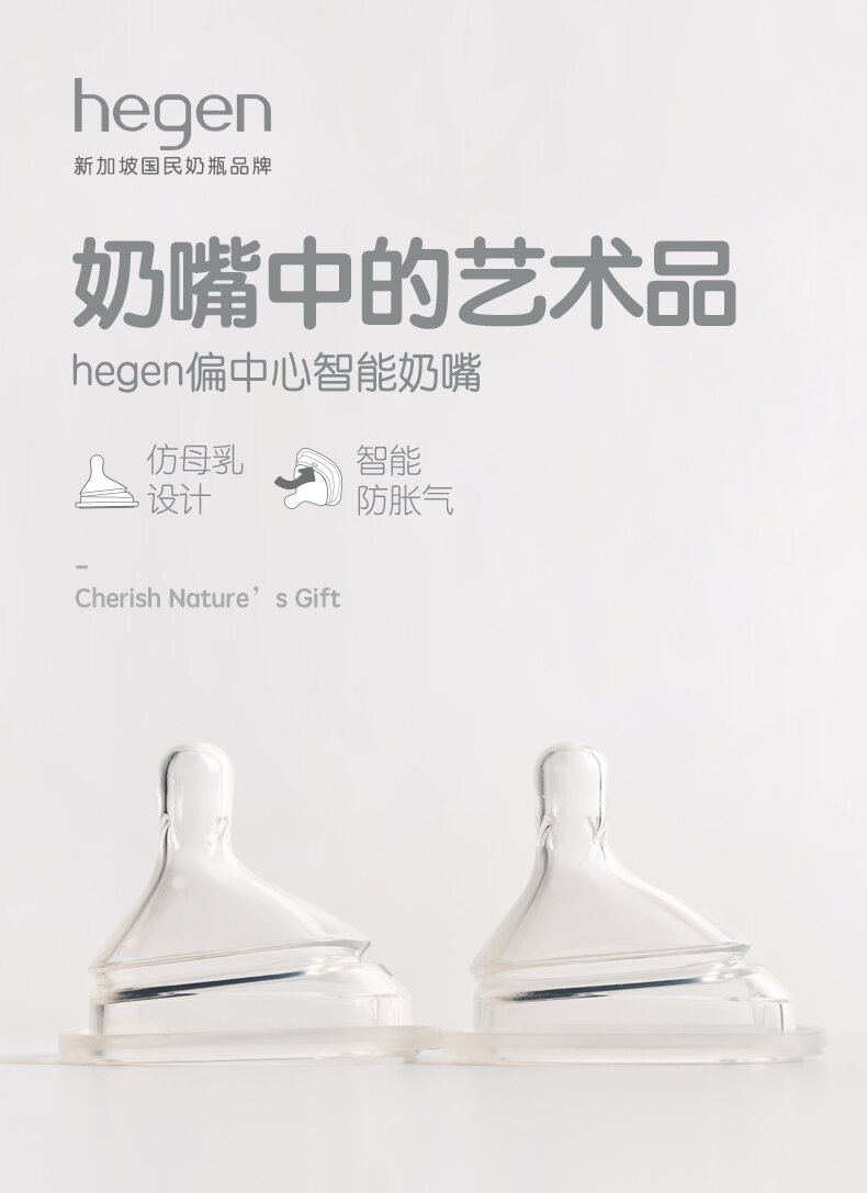 hegen 宽口径防呛防胀气智能硅胶奶嘴