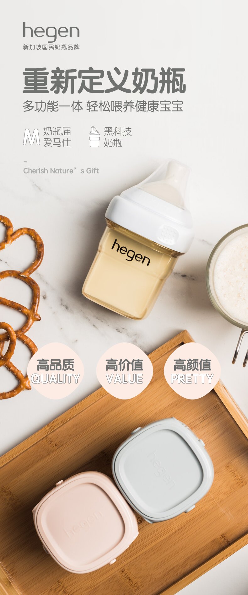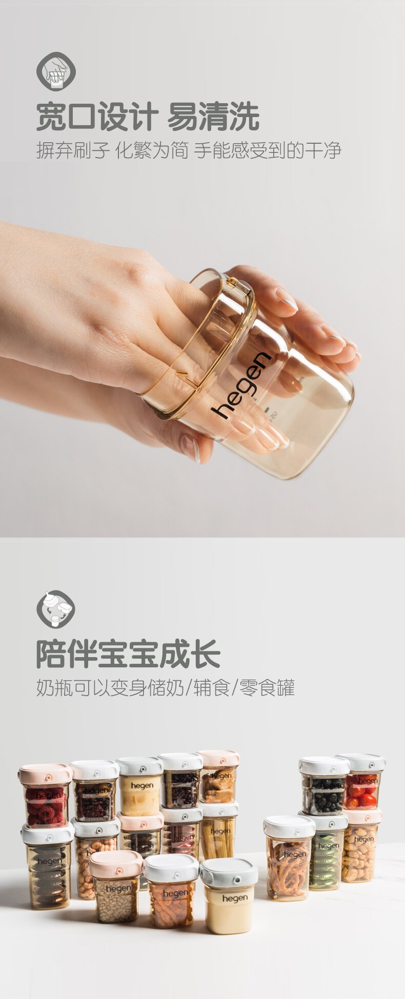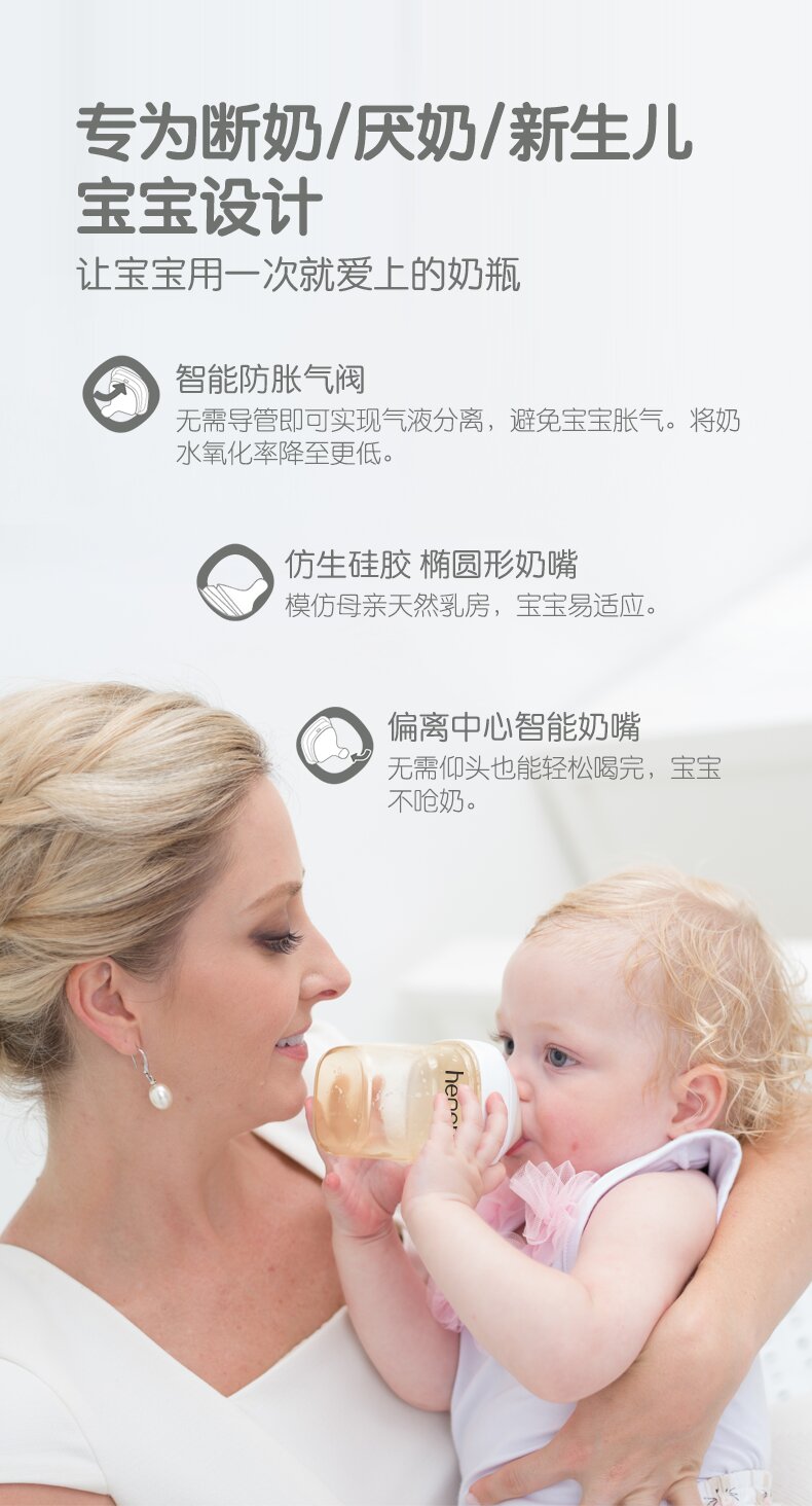 商品名称:hegen新加坡进口婴儿宽口径防胀气防呛多功能奶瓶 150ml(自带1段奶嘴,适合1-3个月宝宝)