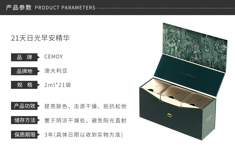 商品名称:澳大利亚CEMOY 21天日光早安精华(2ml*21片)